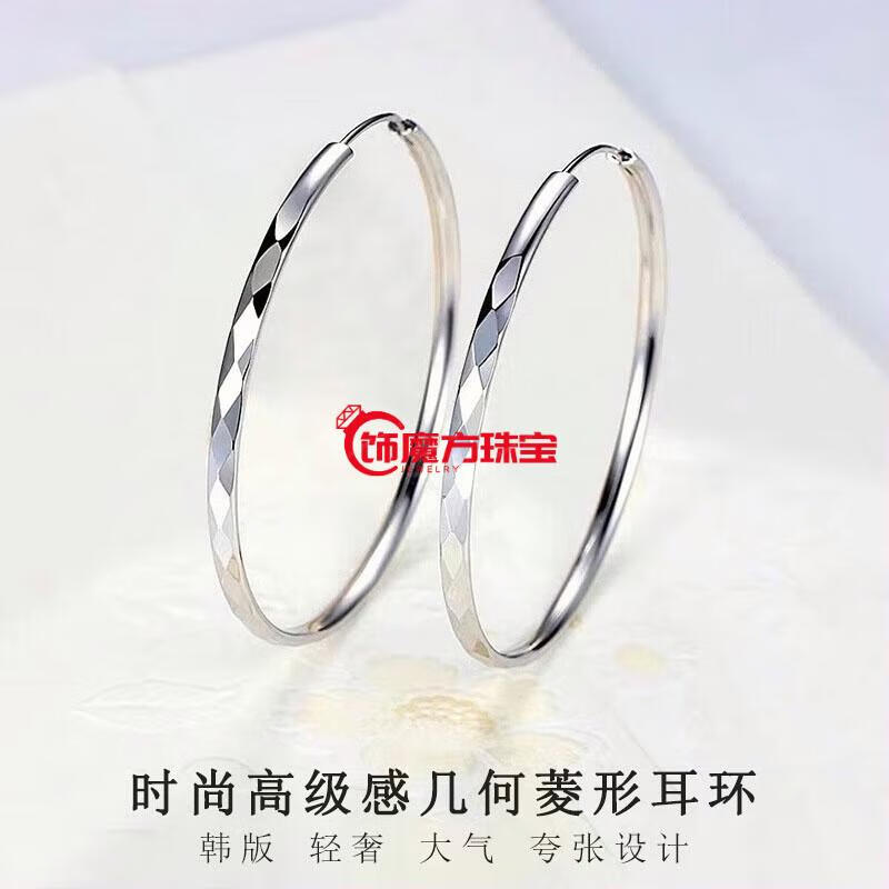 Guanpu Pavilion Fat Donglai's same style pt950 platinum earrings large hoop PT950 large hoop for women, plain hoops, light luxury platinum, diamond-shaped large earrings (30mm)