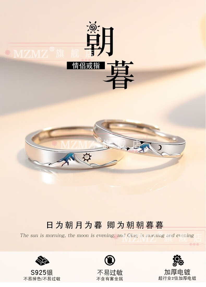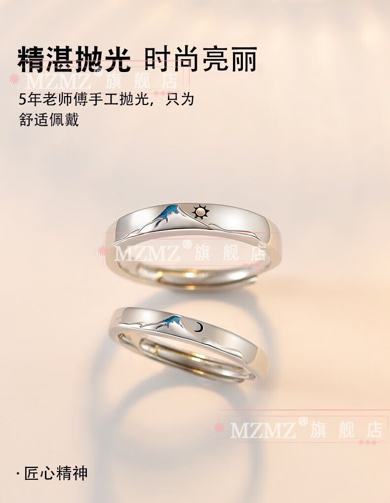 MZMZ Morning and Evening Couple Ring PT950 Platinum Pair Adjustable Luxury Proposal Ring Birthday Gift for Girlfriend Platinum Ring Customized in 7 working days