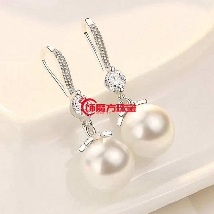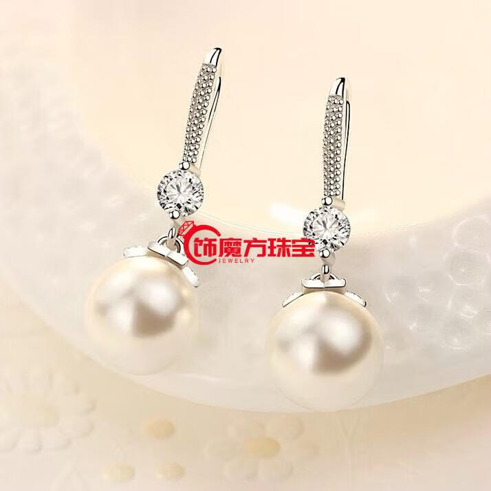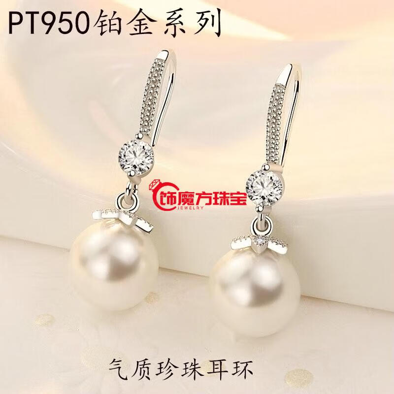 Guanpuge Fat Donglai same style pt950 platinum pearl earrings PT950 natural earrings for women 2024 new niche design pearl earrings shell beads (perfect round 9-10mm)