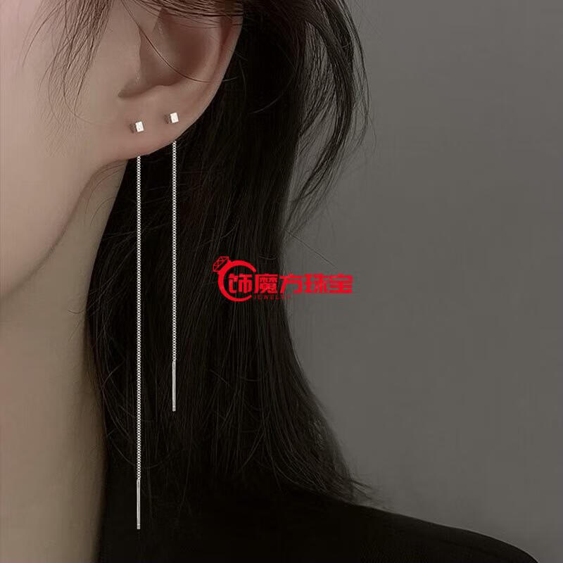 Guanpuge Fat Donglai same style pt950 platinum ear wire PT950 square women's long niche earrings earrings new trendy ear square ear wire