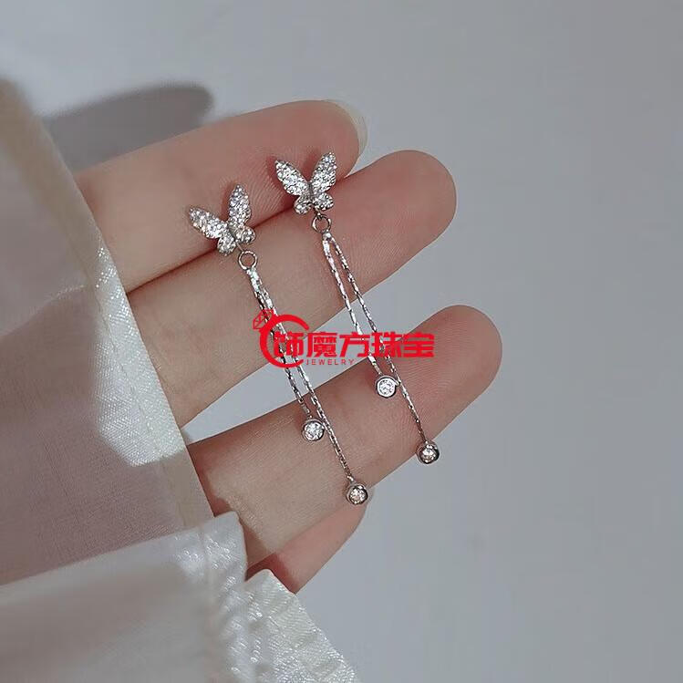 Guanpuge Fat Donglai same style pt950 platinum ear wire PT950 butterfly tassel earrings for women platinum earrings 2024 new platinum full diamond butterfly earrings
