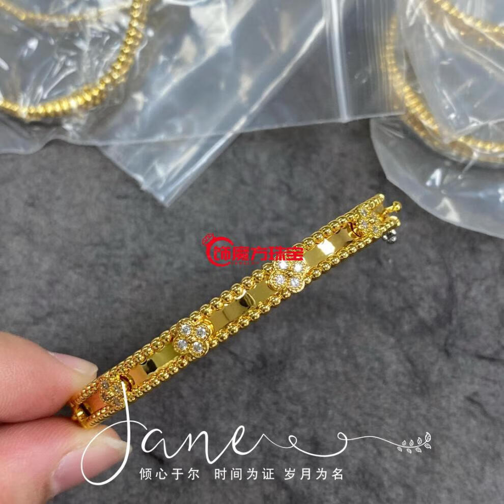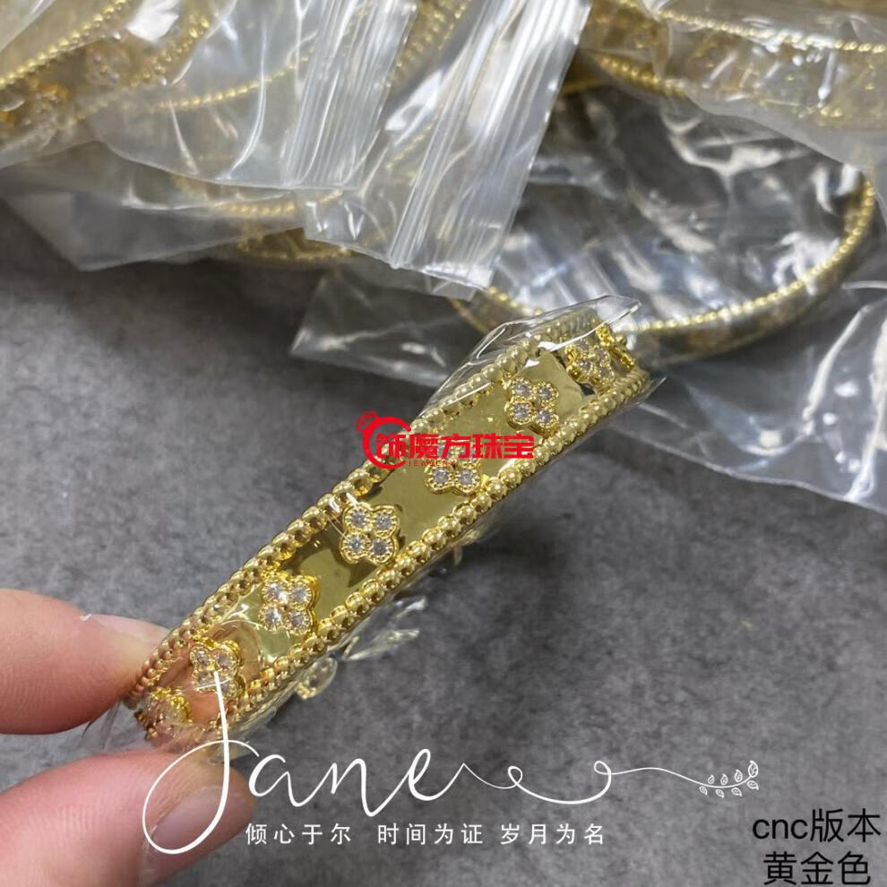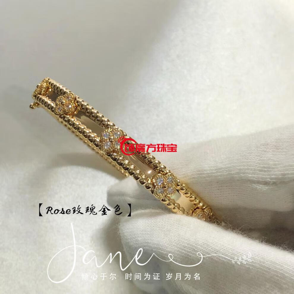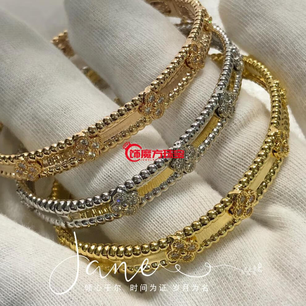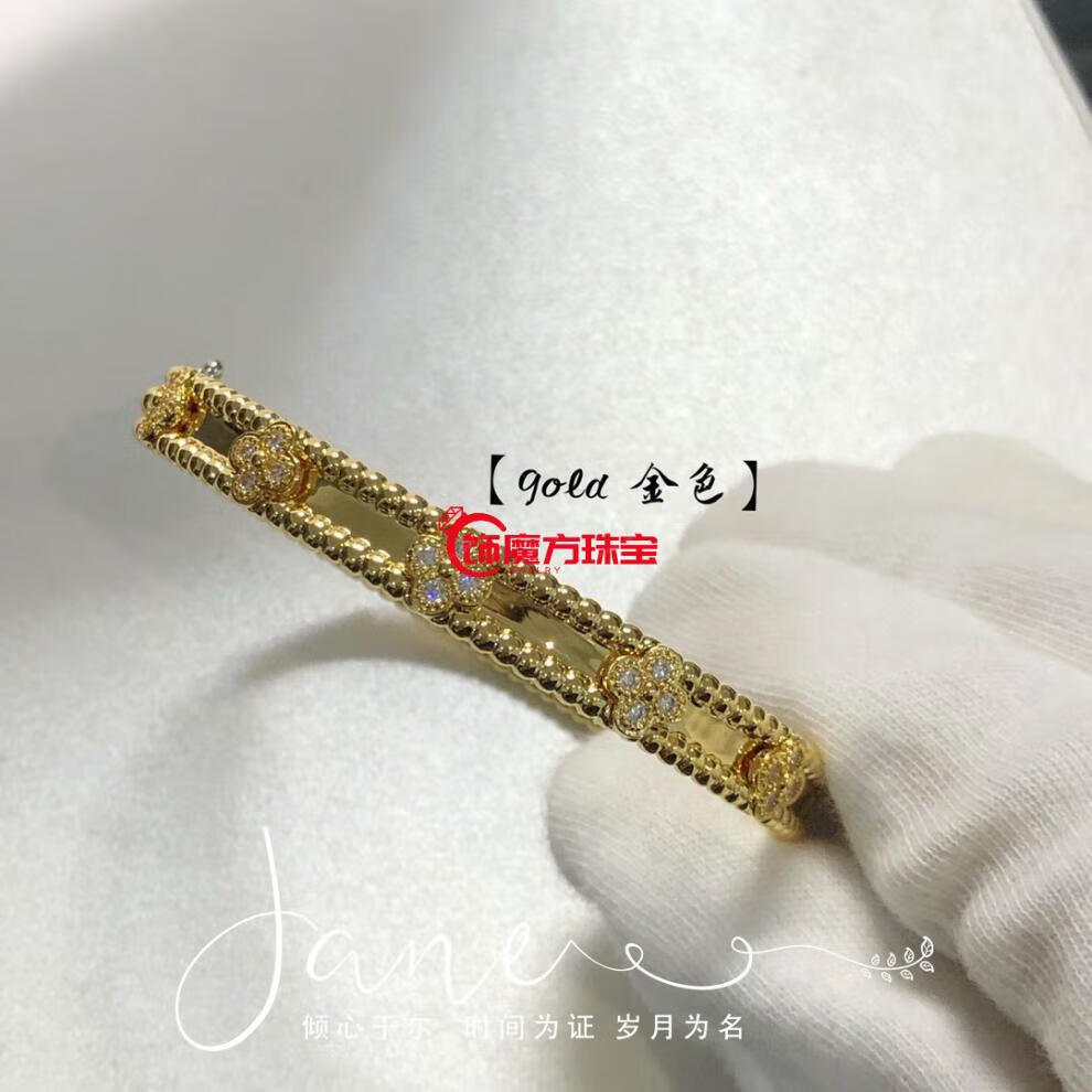 Guanpu Pavilion Fat Donglai's same style pt950 platinum bracelet kaleidoscope gold-plated gold narrow version women's wide version four-leaf clover flower ring narrow version - rose gold