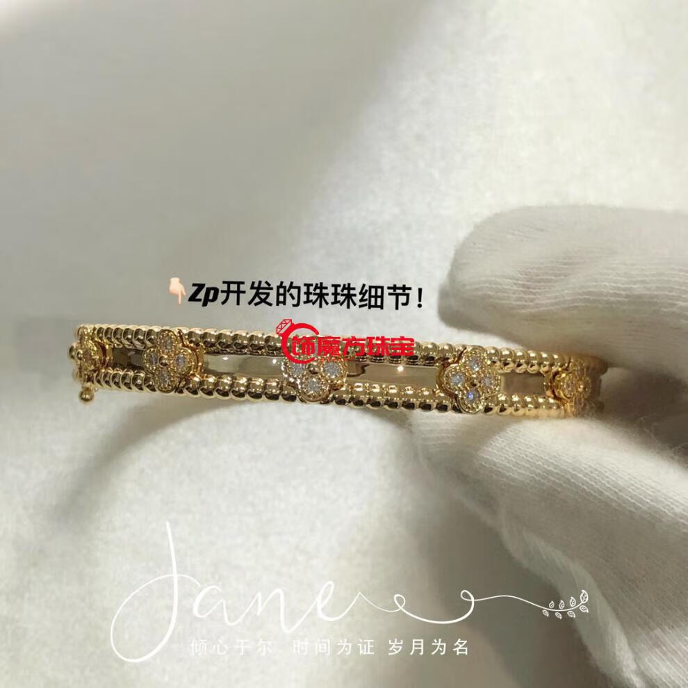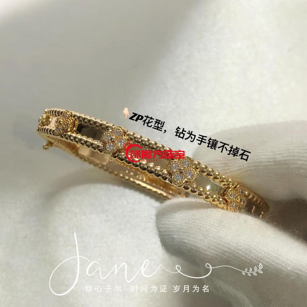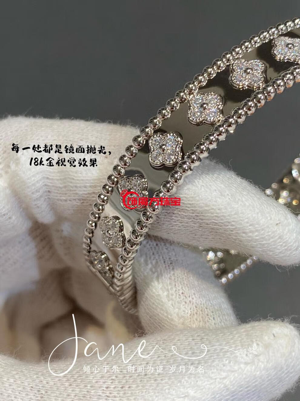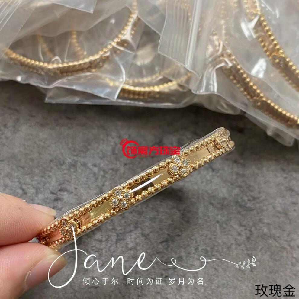 Guanpu Pavilion Fat Donglai's same style pt950 platinum bracelet kaleidoscope gold-plated gold narrow version women's wide version four-leaf clover flower ring narrow version - rose gold