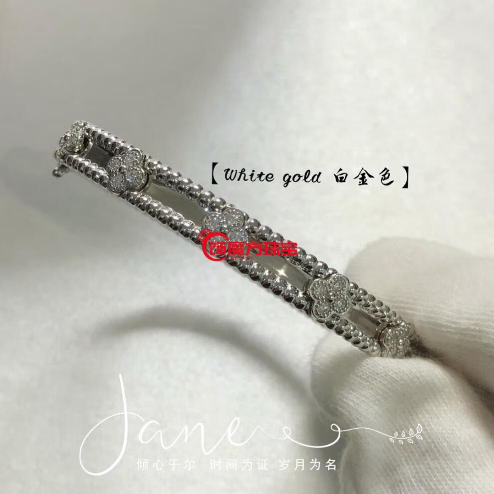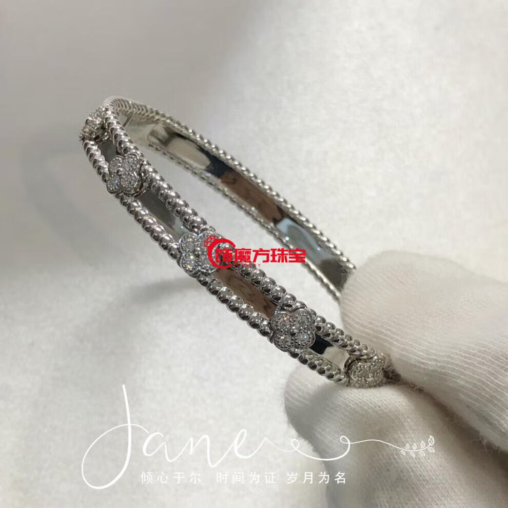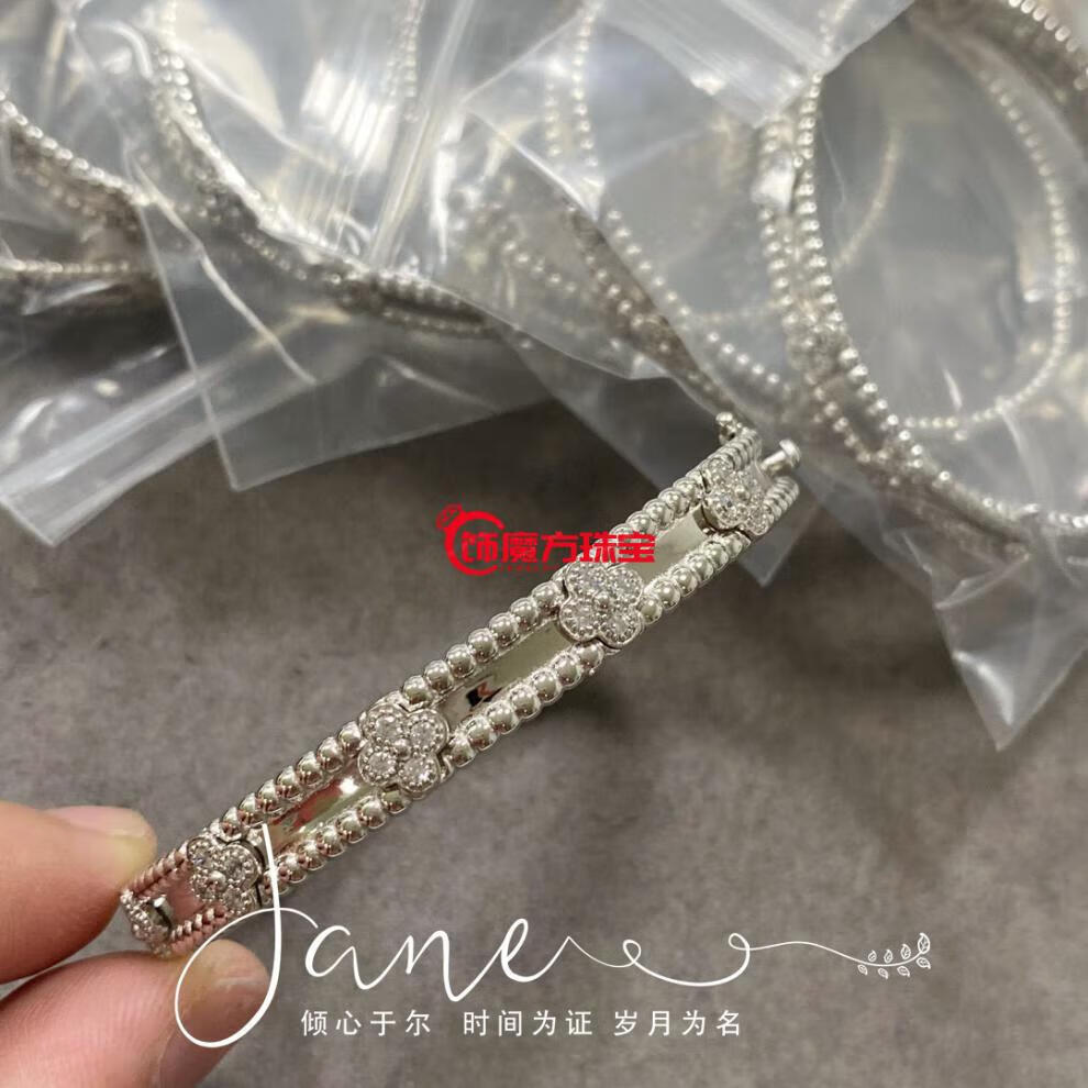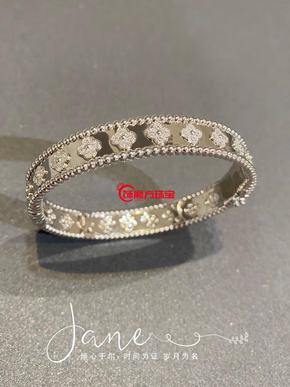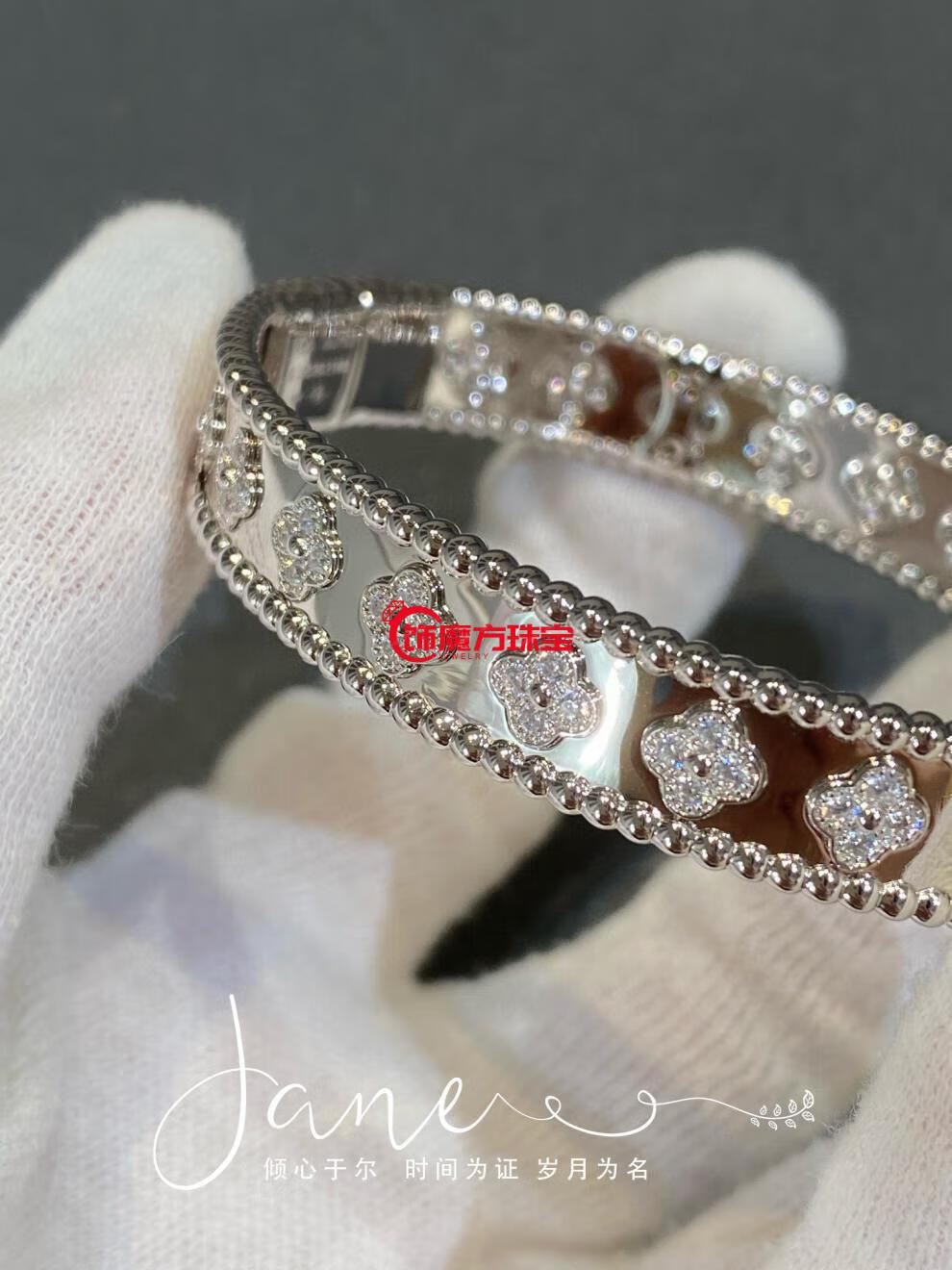 Guanpu Pavilion Fat Donglai's same style pt950 platinum bracelet kaleidoscope gold-plated gold narrow version women's wide version four-leaf clover flower ring narrow version - rose gold