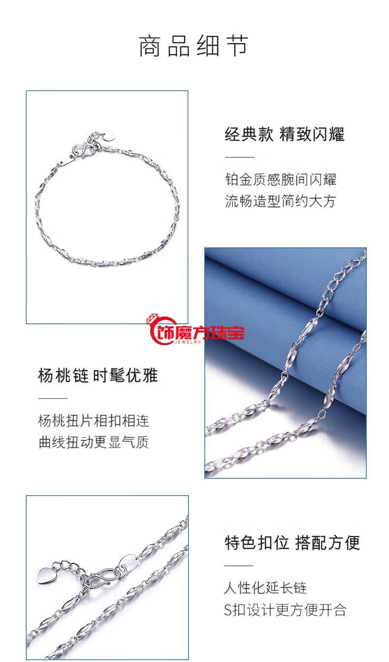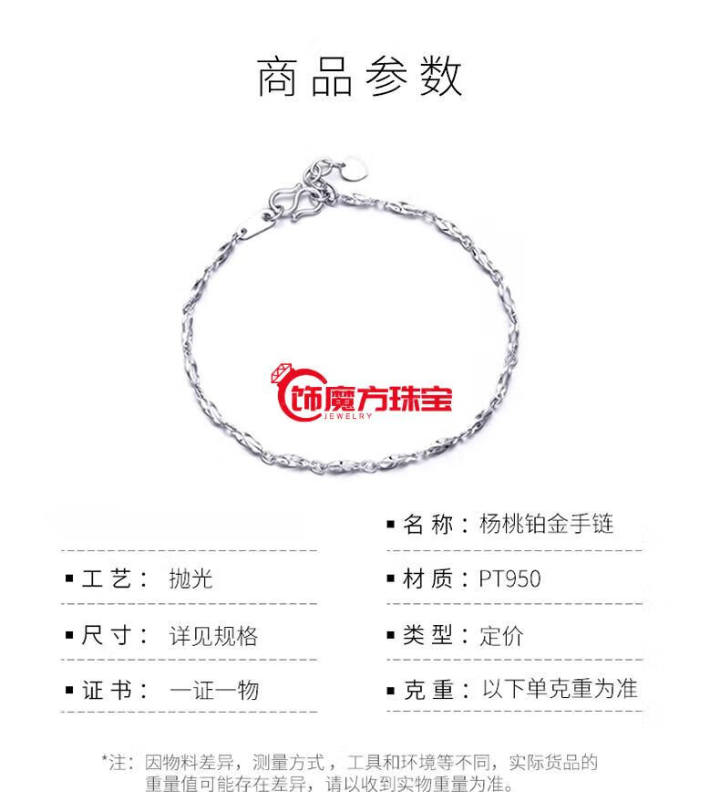 Guanpuge Fat Donglai same style pt950 platinum anklet Pt950 bracelet women's star fruit platinum bracelet bracelet birthday star fruit bracelet length about 16+1.5CM gold weight about 1