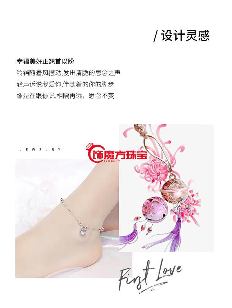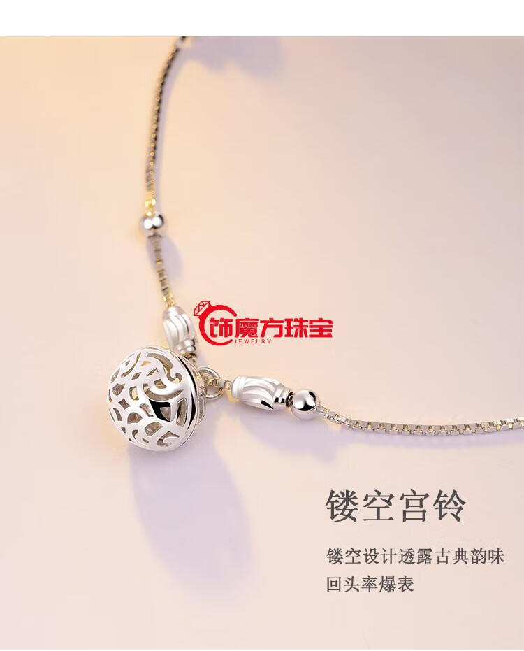 Guanpu Pavilion Fat Donglai's same style pt950 platinum anklet PT950 palace bell female retro internet celebrity gift girlfriend 520 Chinese Valentine's Day birthday bell platinum palace bell anklet + certificate + engraving