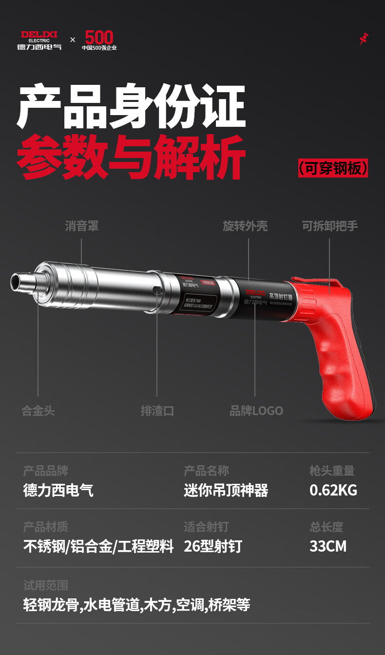 Delixi Electric Cannon Nail Gun Integrated Nail Gun Mini New Silenced Decoration Special Pneumatic Topping Ceiling Device Special for Concrete Mini Nail Gun Decoration Model +100 Round Nails