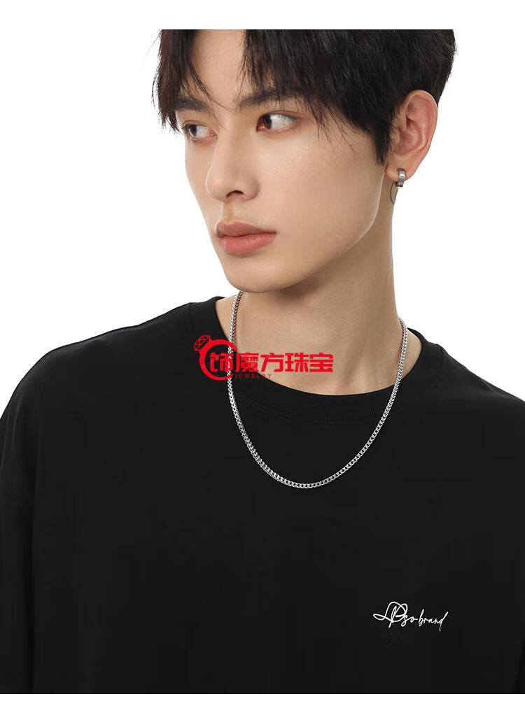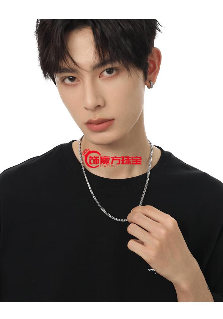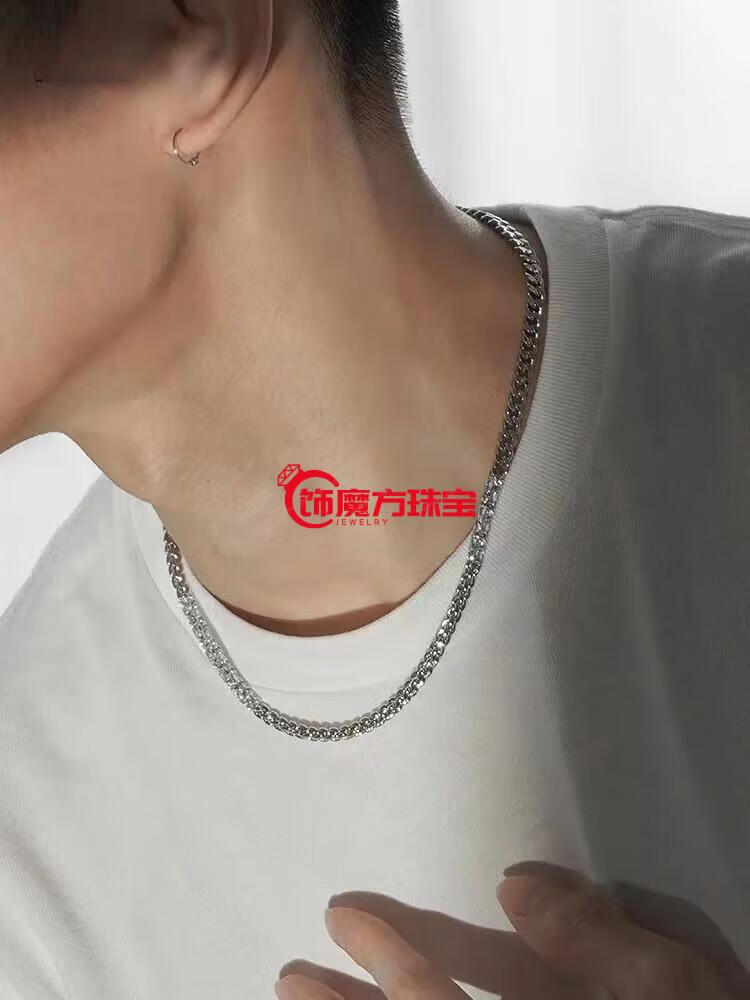 Guanpu Pavilion Fat Donglai's same style pt950 platinum Cuban chain new boys platinum keel necklace men's trendy brand versatile platinum width 3mm length 45cm