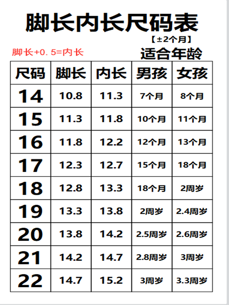 Length (cm) 22.8 23.1 23.5 24.1 24.5 25.1 25.7 26 26.7 27.3 27.9 28.6 29.2