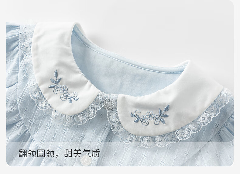 DAVE&BELLA children's shirt pure cotton baby girl spring top new children's shirt sweet girl's clothes children's clothing cream blue ready stock 120 cm (recommended height 110-120cm)