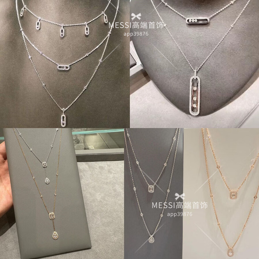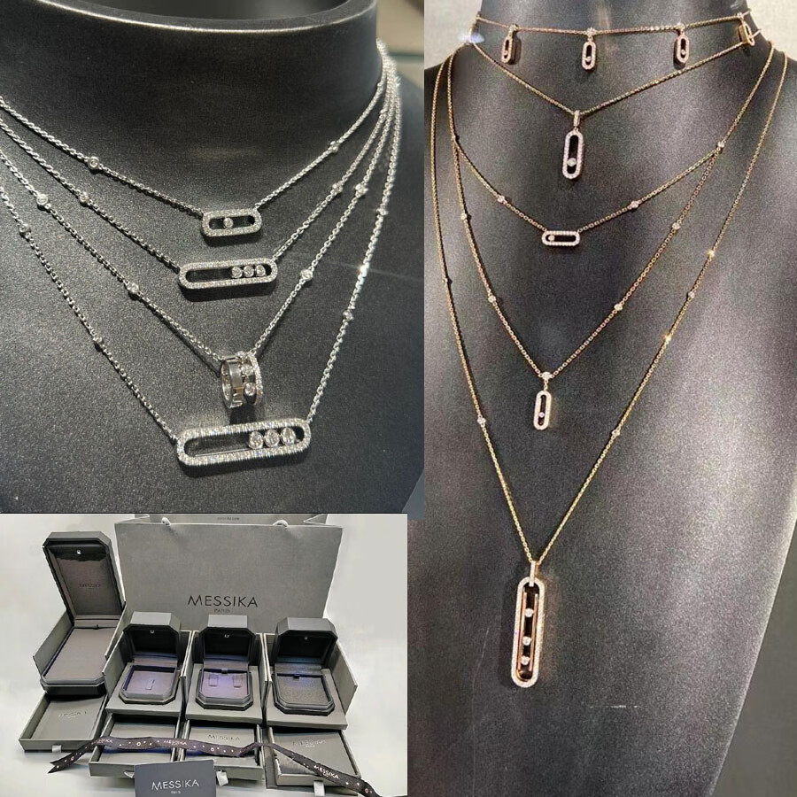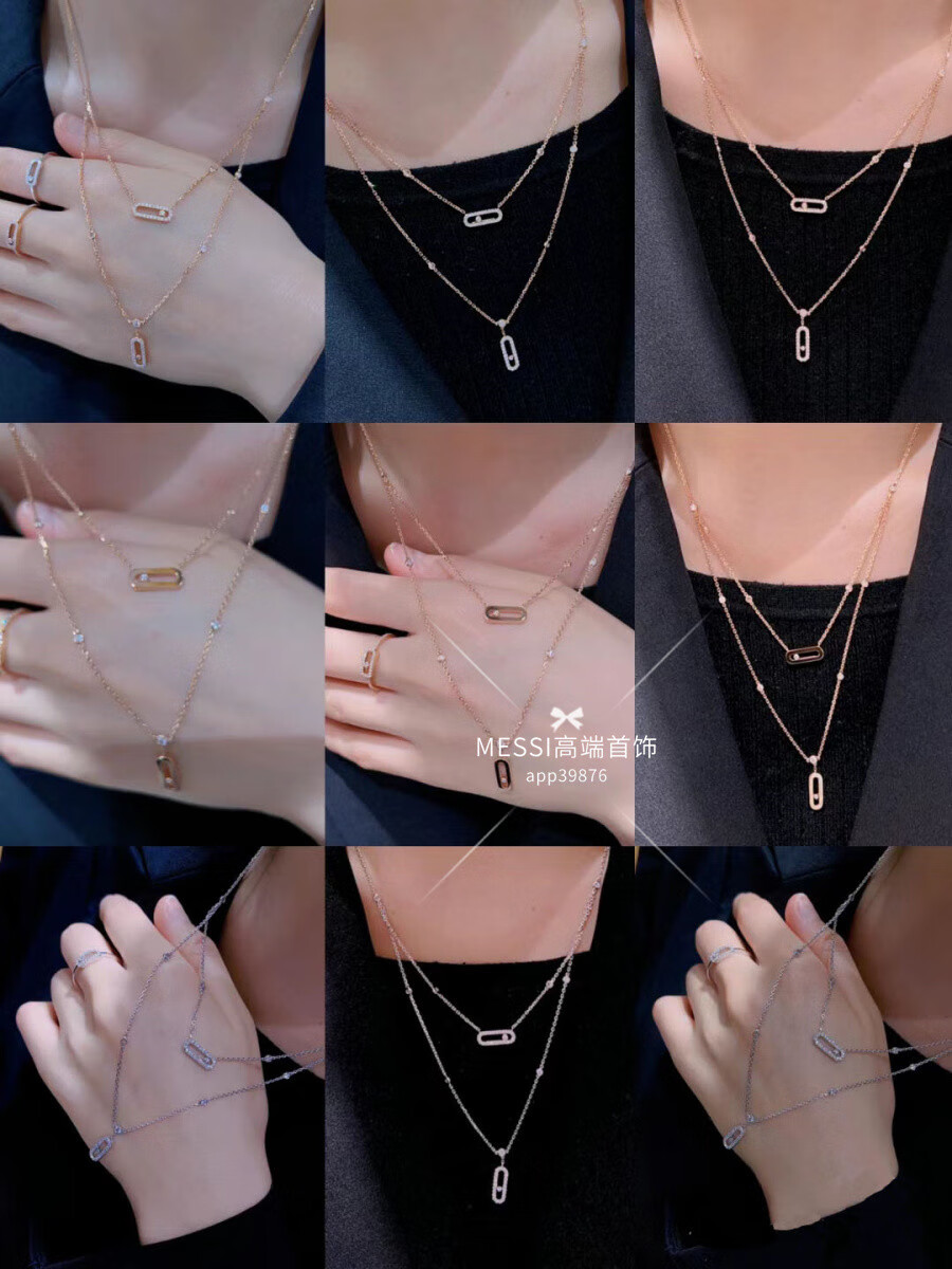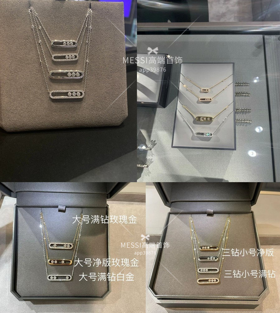 DYN Necklace BabyMove Three Diamond Full Diamond Platinum Necklace for Men and Women 18k Rose Gold Pendant Clavicle Chain Medium Full Diamond Three Diamond Gold with Counter Packaging