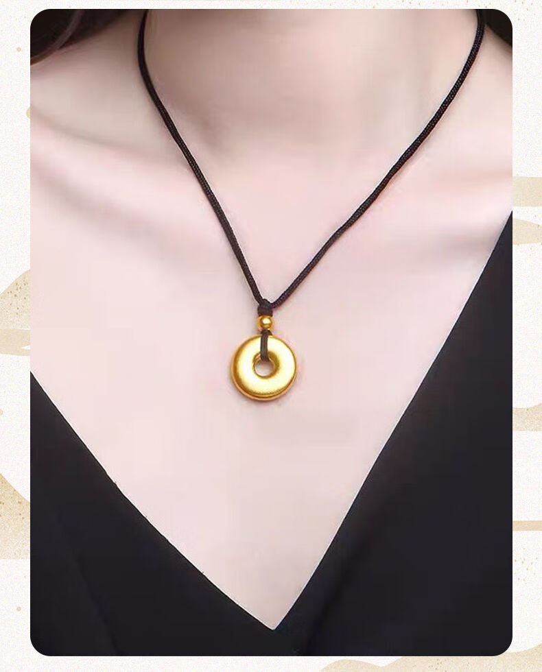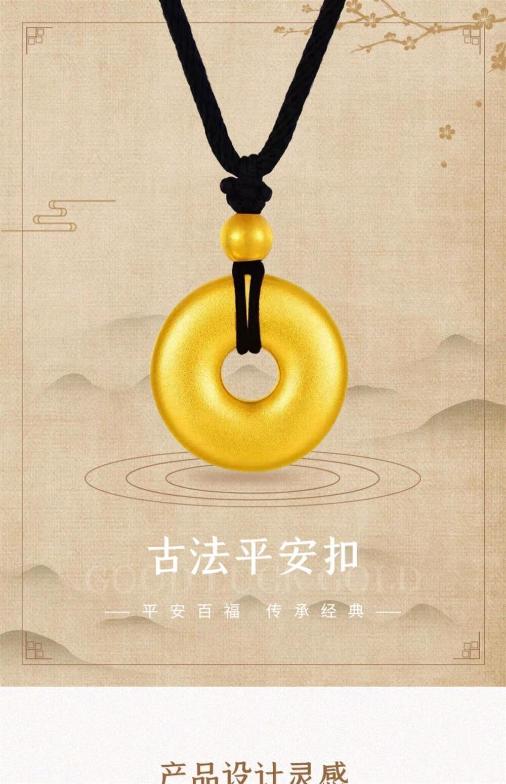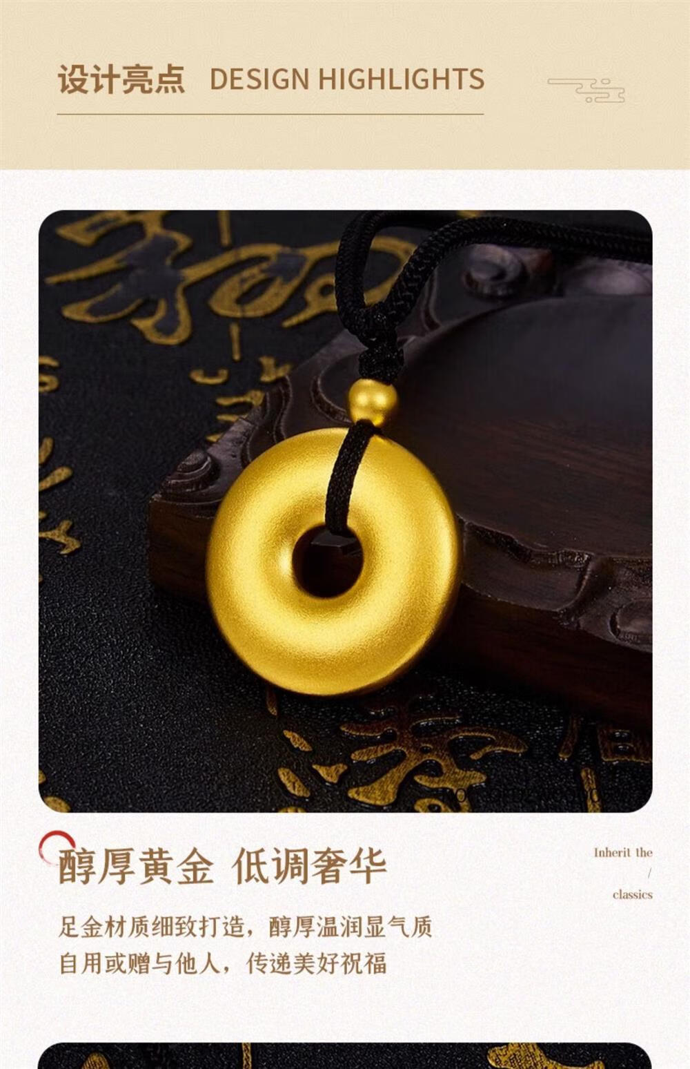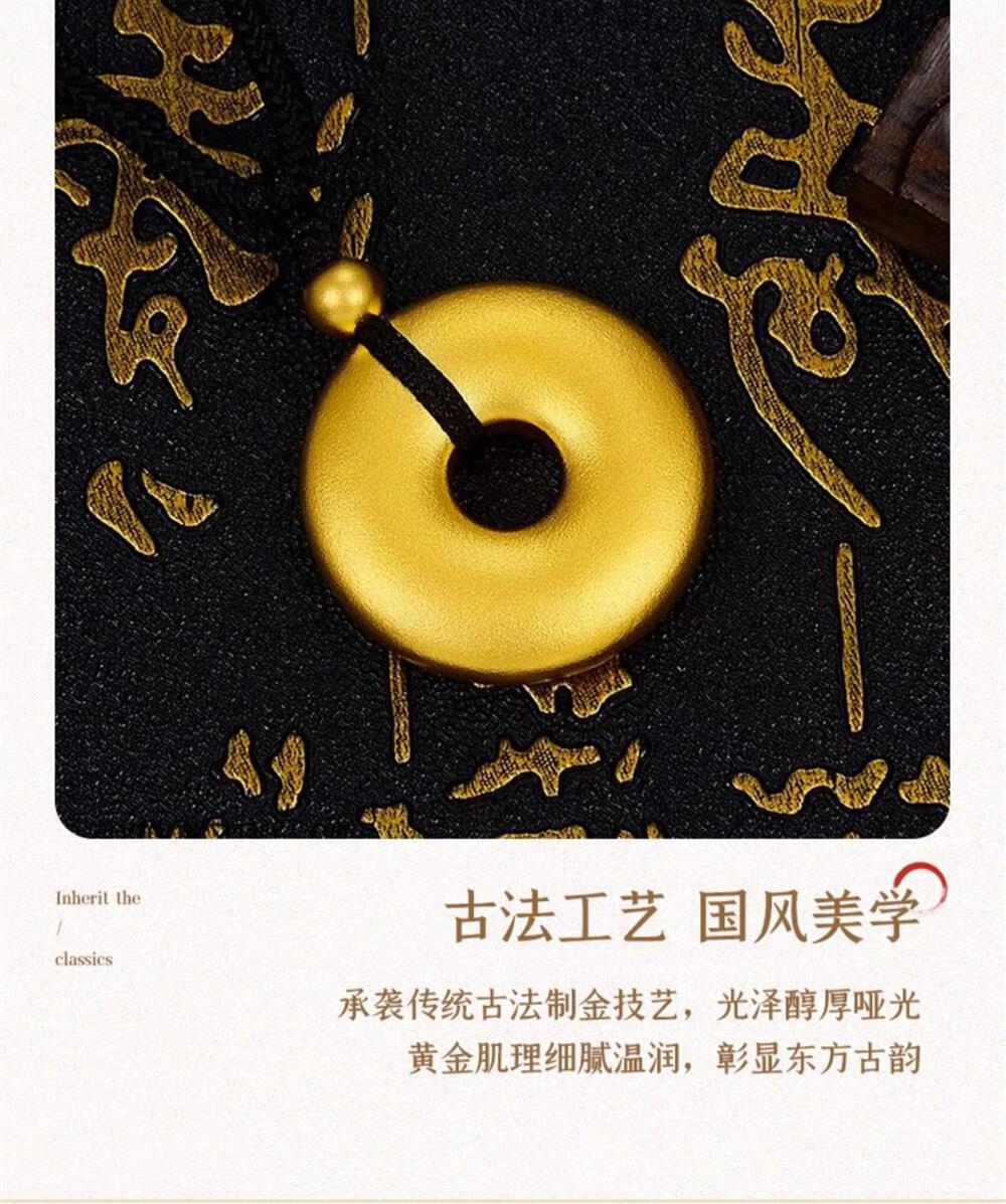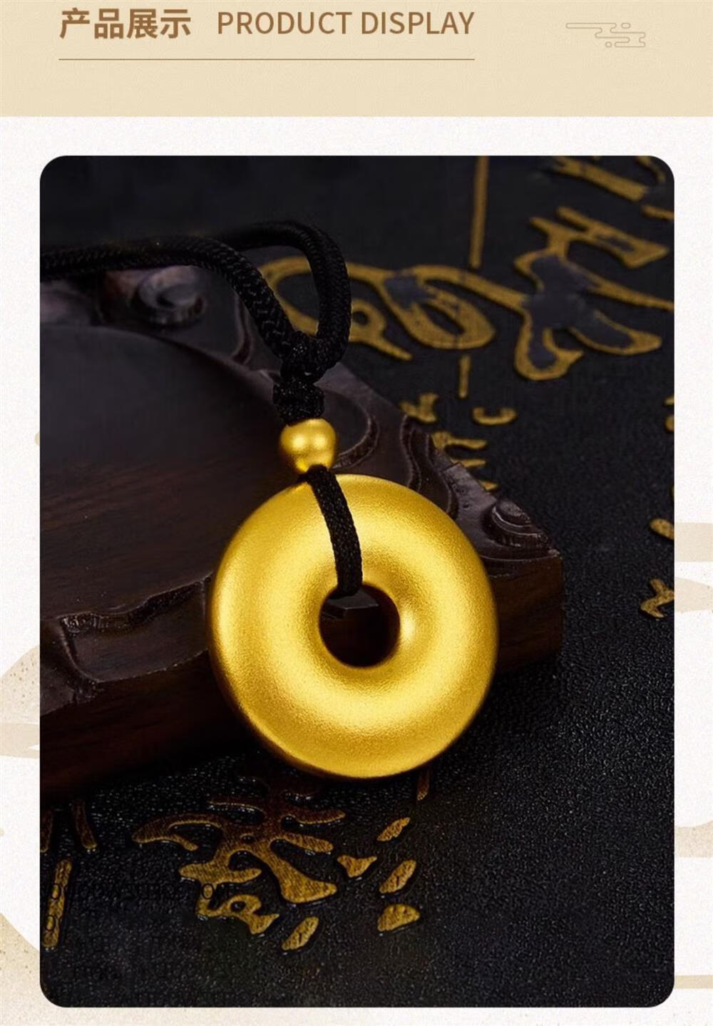 Canxian Shenzhen Shuibei Gold Store Ancient Method Ping An Buckle Pendant Gold-coated Silver Transfer Bead Necklace Braided Pendant for Men and Women Couples Ping An Buckle + 1 Gold Bead Black Rope 1 Gram of Gold