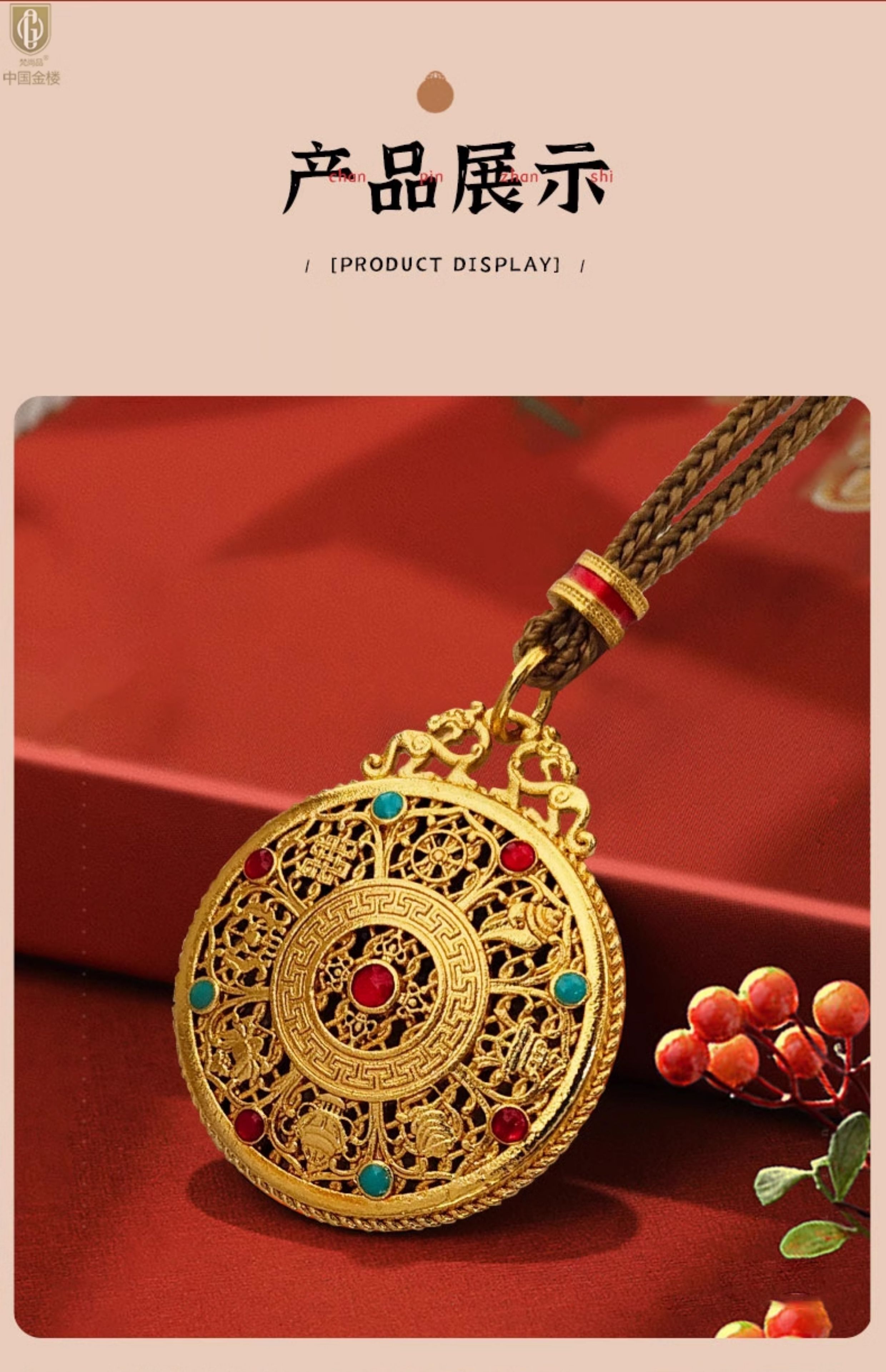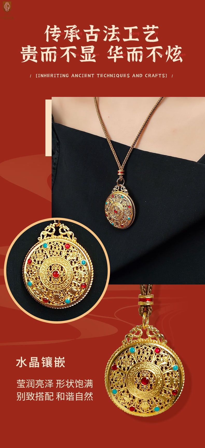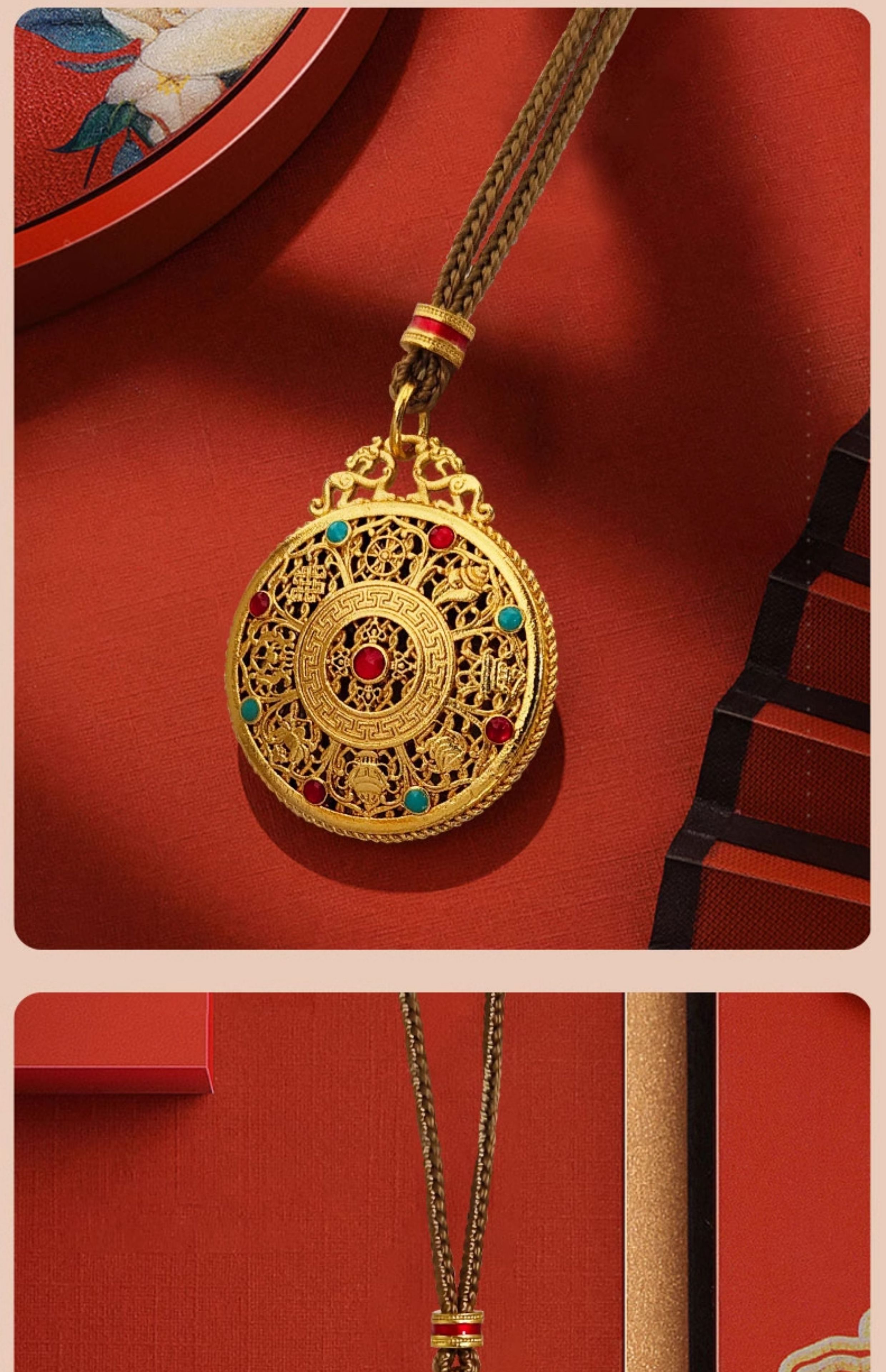 Canxian Ancient Golden Eight Treasures Compass Pendant Palace Enamel Filigree Hollow Clavicle Chain Braided Rope Long Sweater Chain Yellow