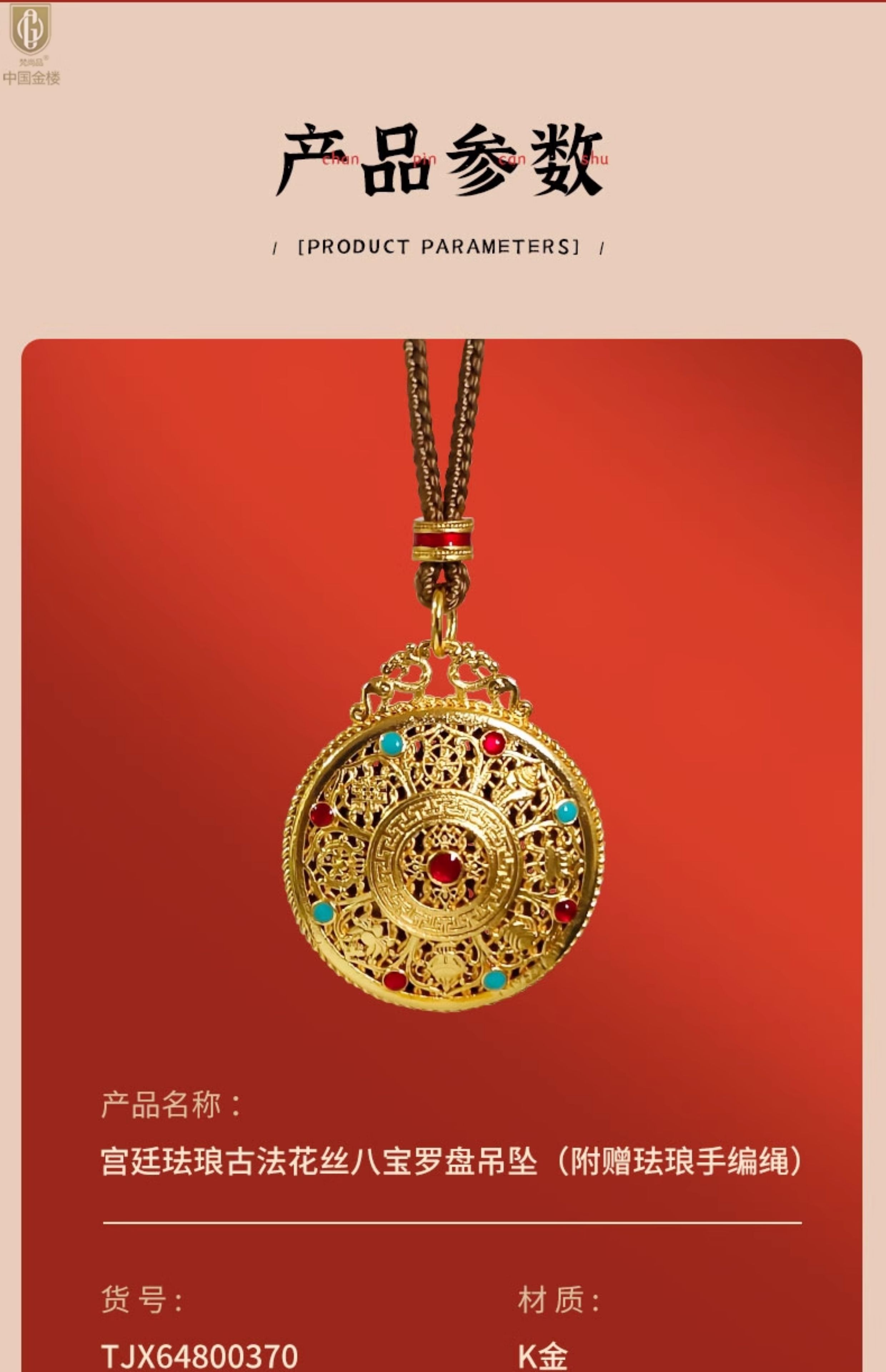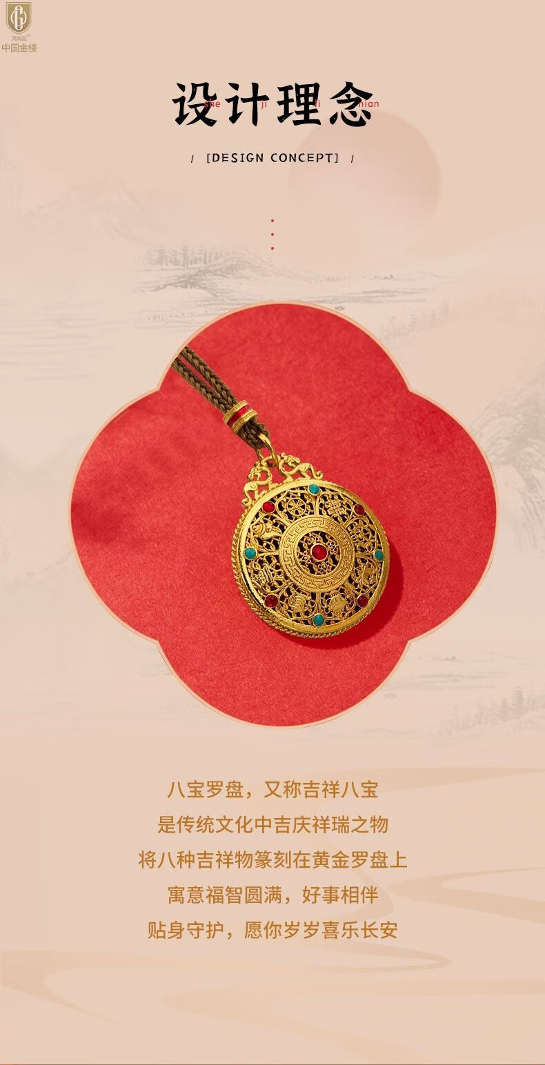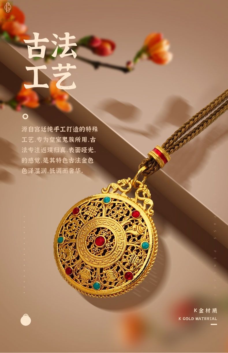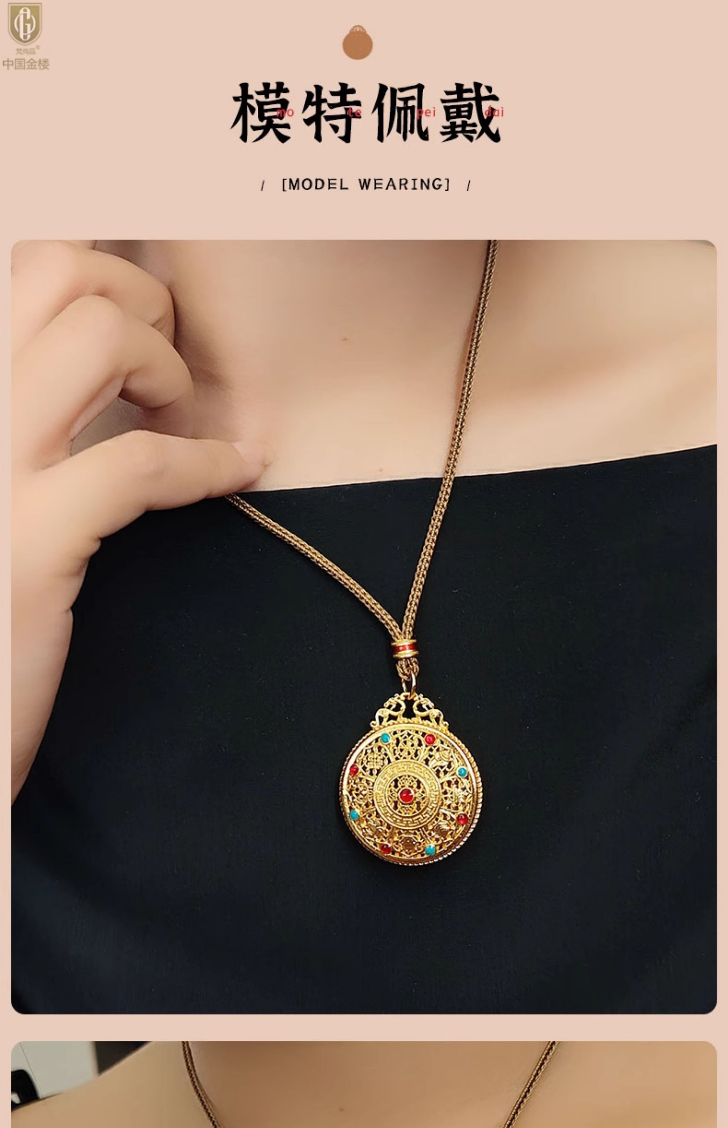Canxian Ancient Golden Eight Treasures Compass Pendant Palace Enamel Filigree Hollow Clavicle Chain Braided Rope Long Sweater Chain Yellow