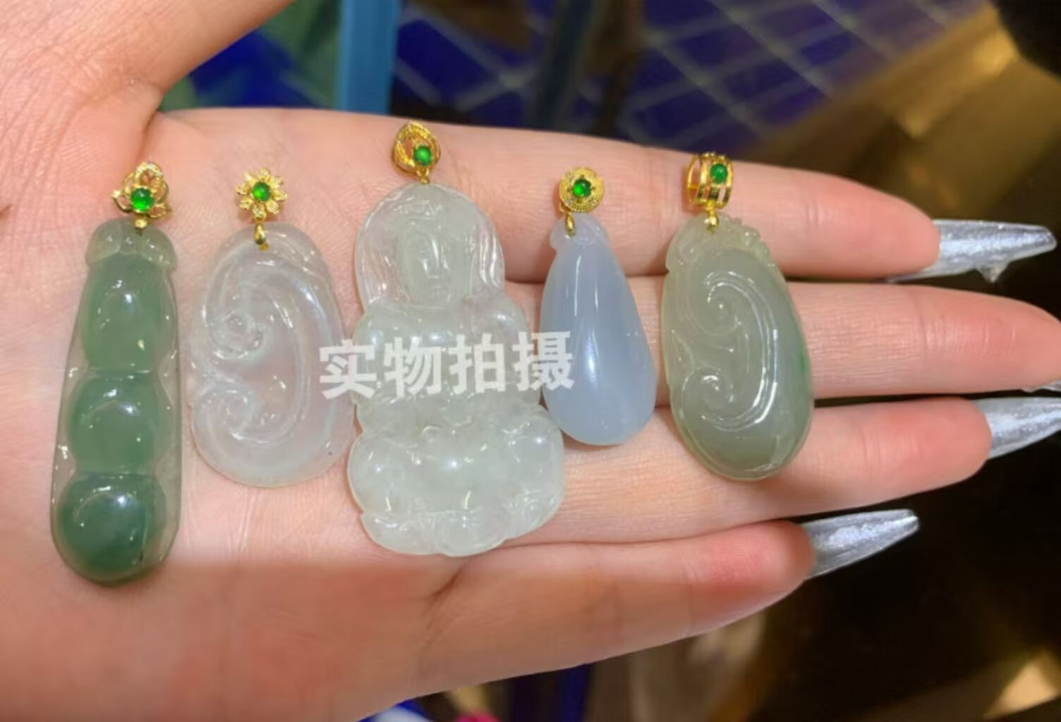 Time Bird 18K gold buckle head emerald top bead and jade pendant enlarged diamond melon seed buckle Guanyin Buddha pendant gold oblique hole clip buckle No. 3 gold straight hole