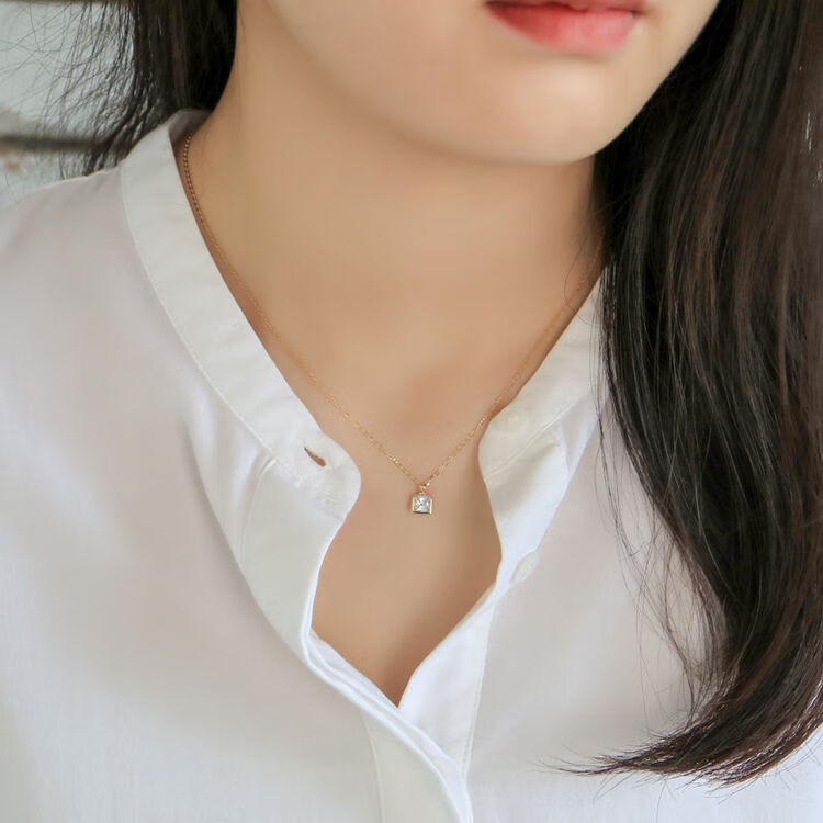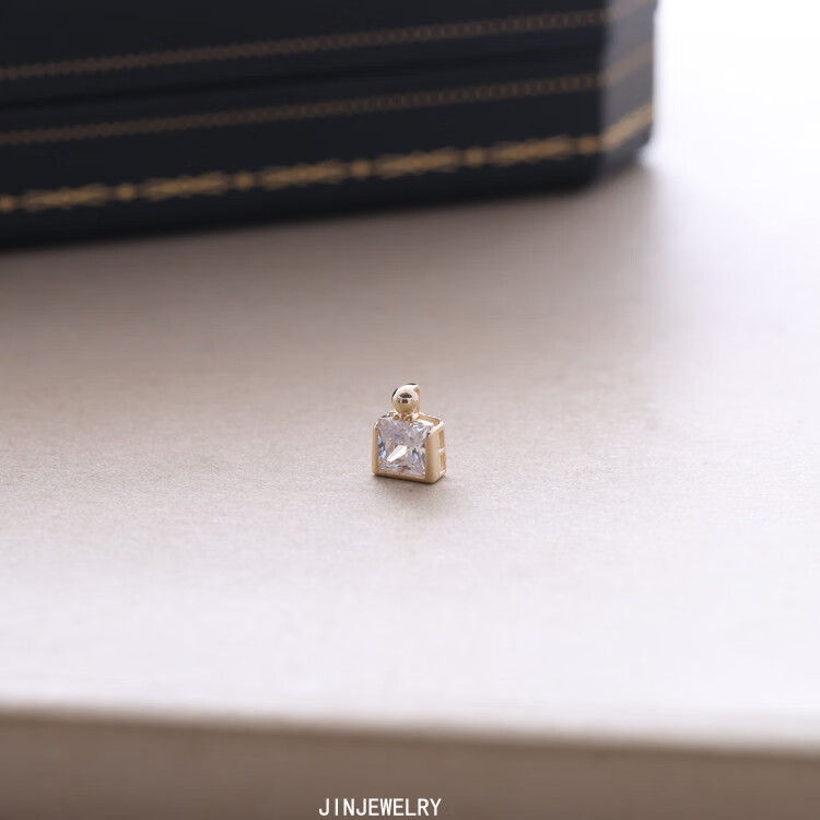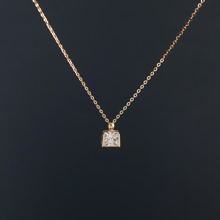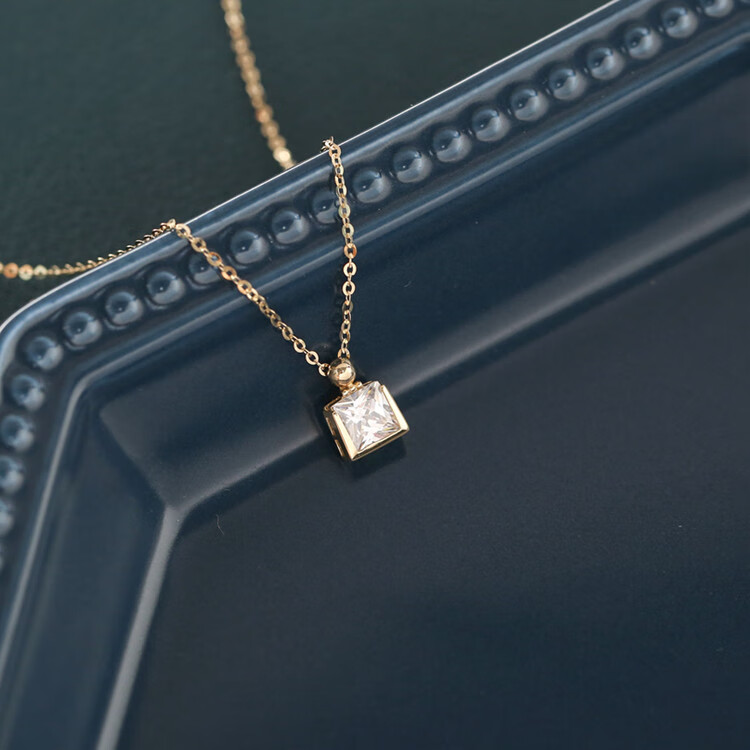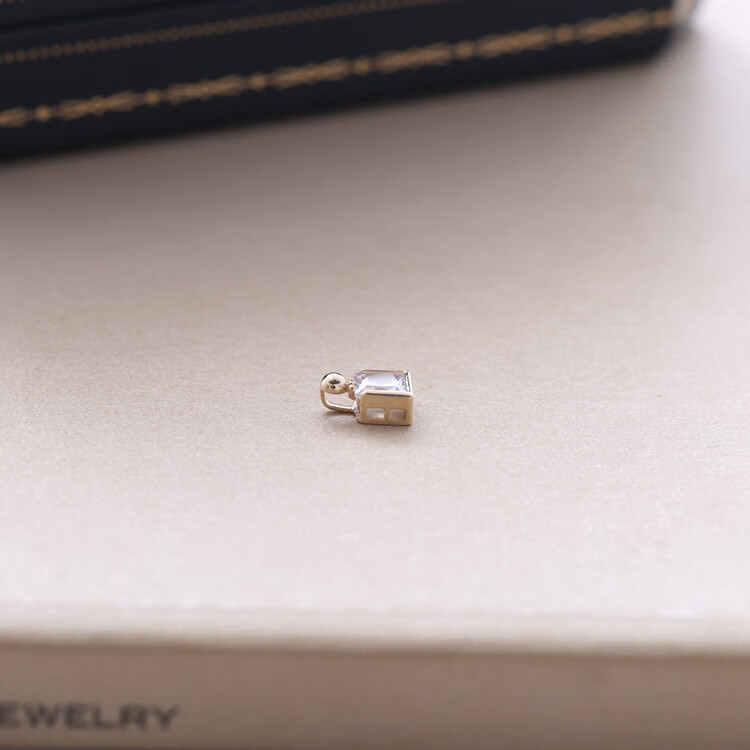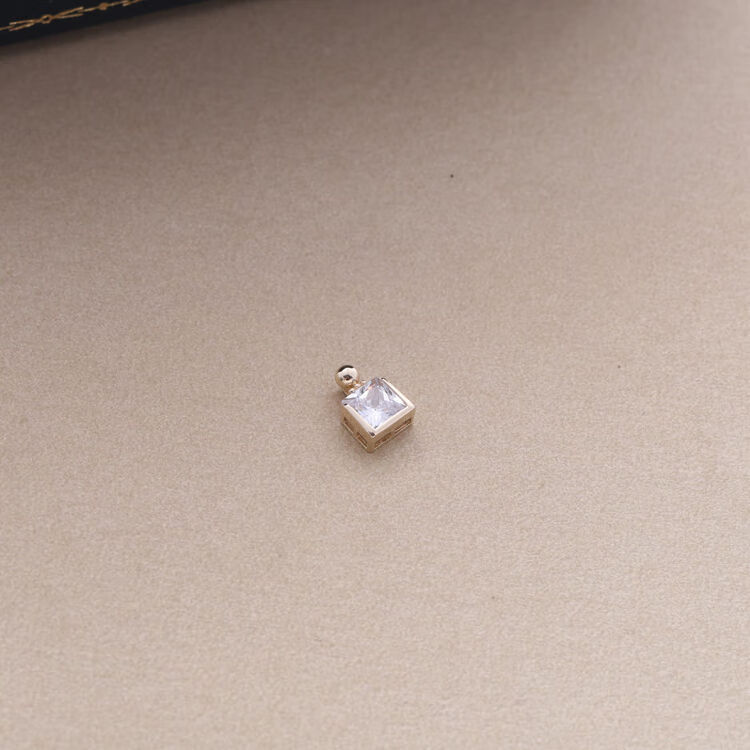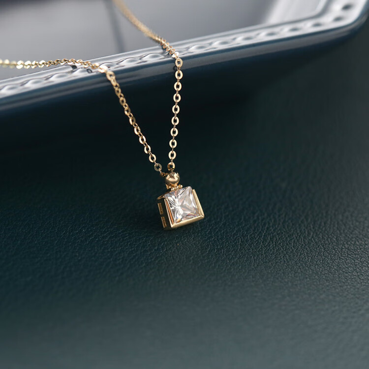 Changju JIN pure 14K gold pendant, small and elegant perfume bottle necklace, women's shiny square zirconium clavicle chain, 14K gold pendant, chain not included