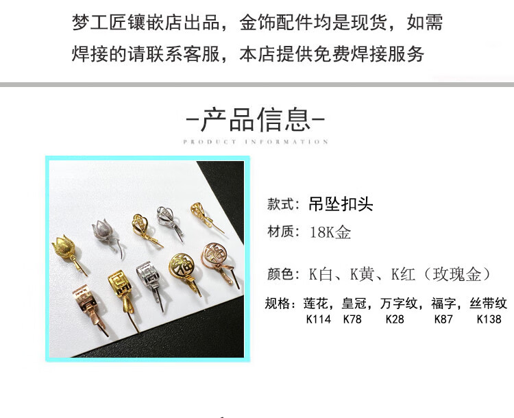 Time Bird 18k gold buckle jade pendant melon seed buckle beeswax pendant clip accessories jade clip button Buddha Goddess of Mercy A A1 K white (thick version)