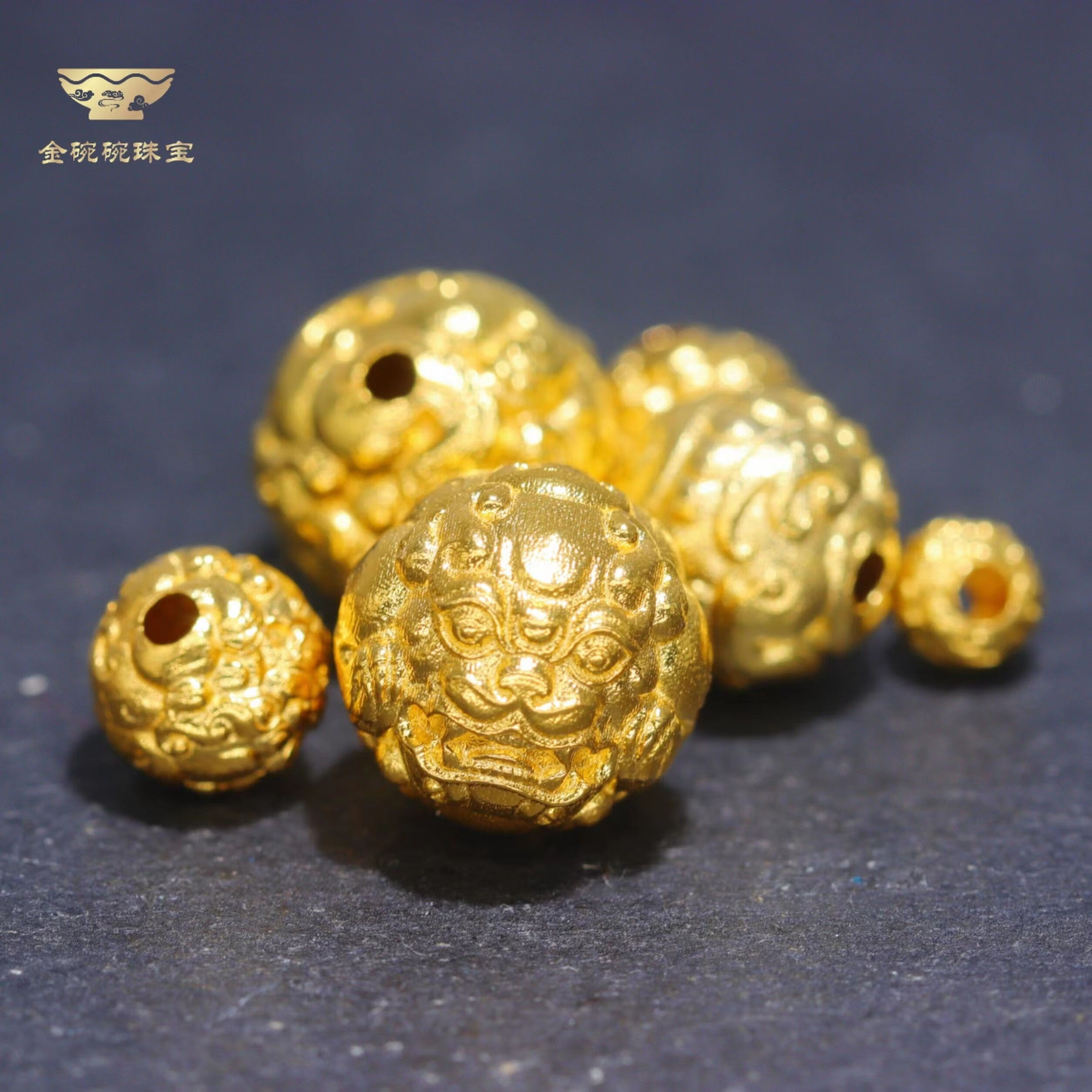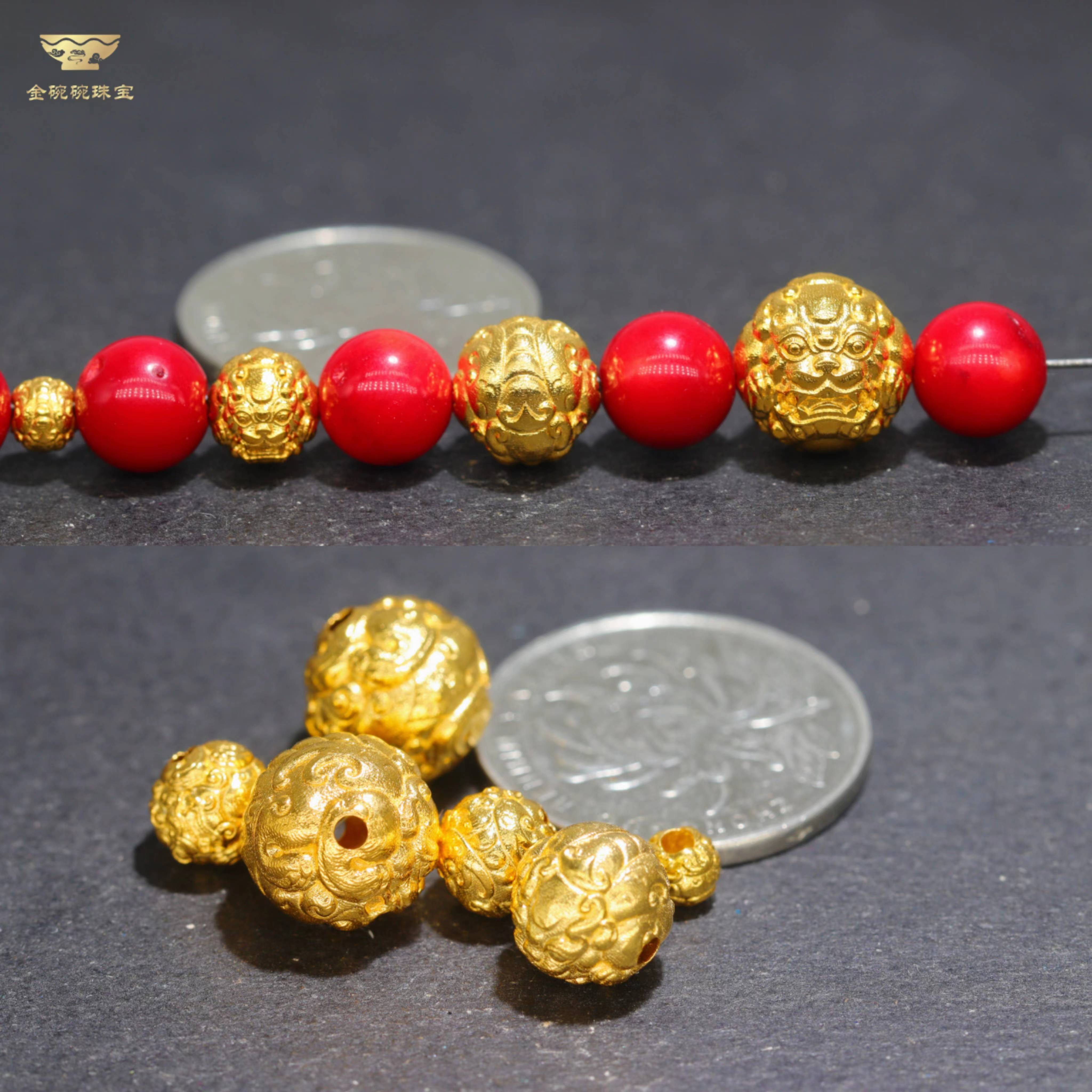 Changju 18k gold accessories diy Pixiu beads round beads auspicious animal main beads separated beads loose beads beaded rope ancient gold mini diameter 4.8mm weight 0.19g