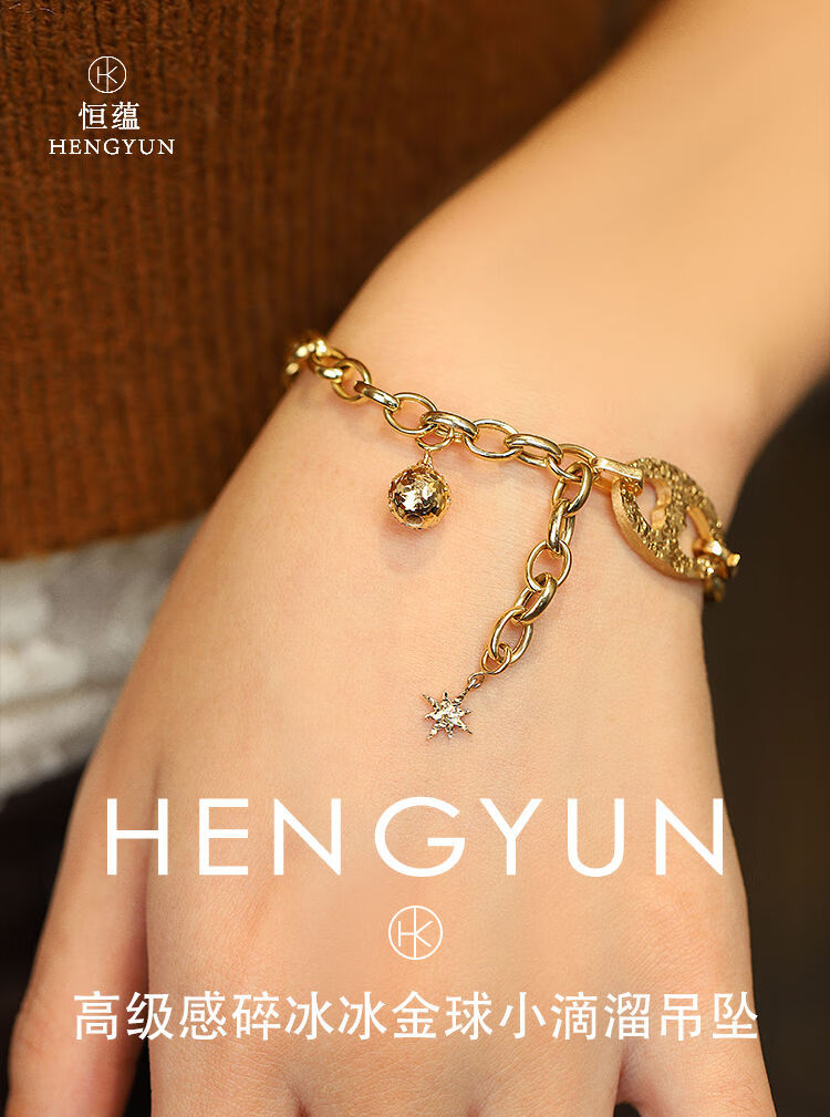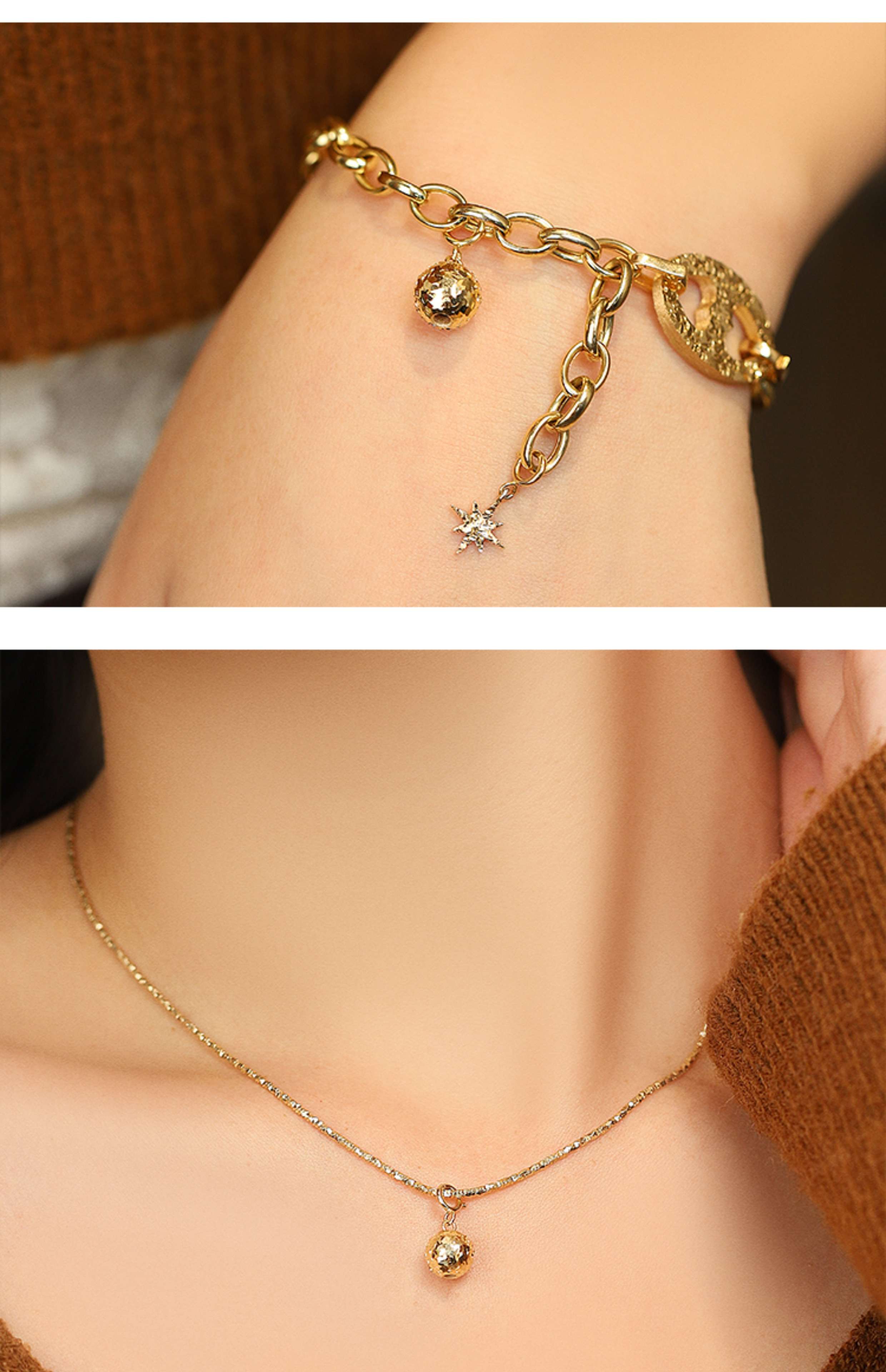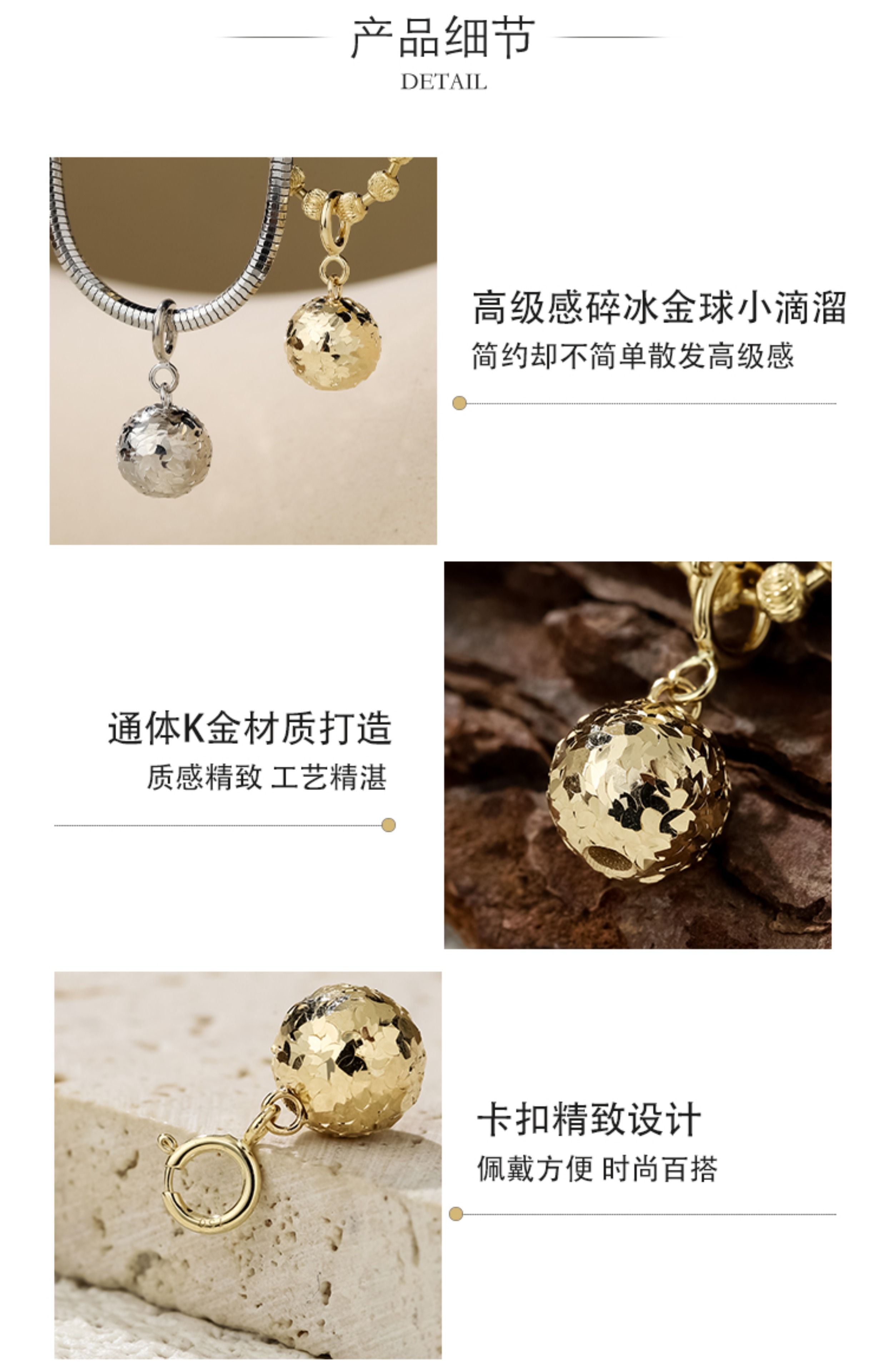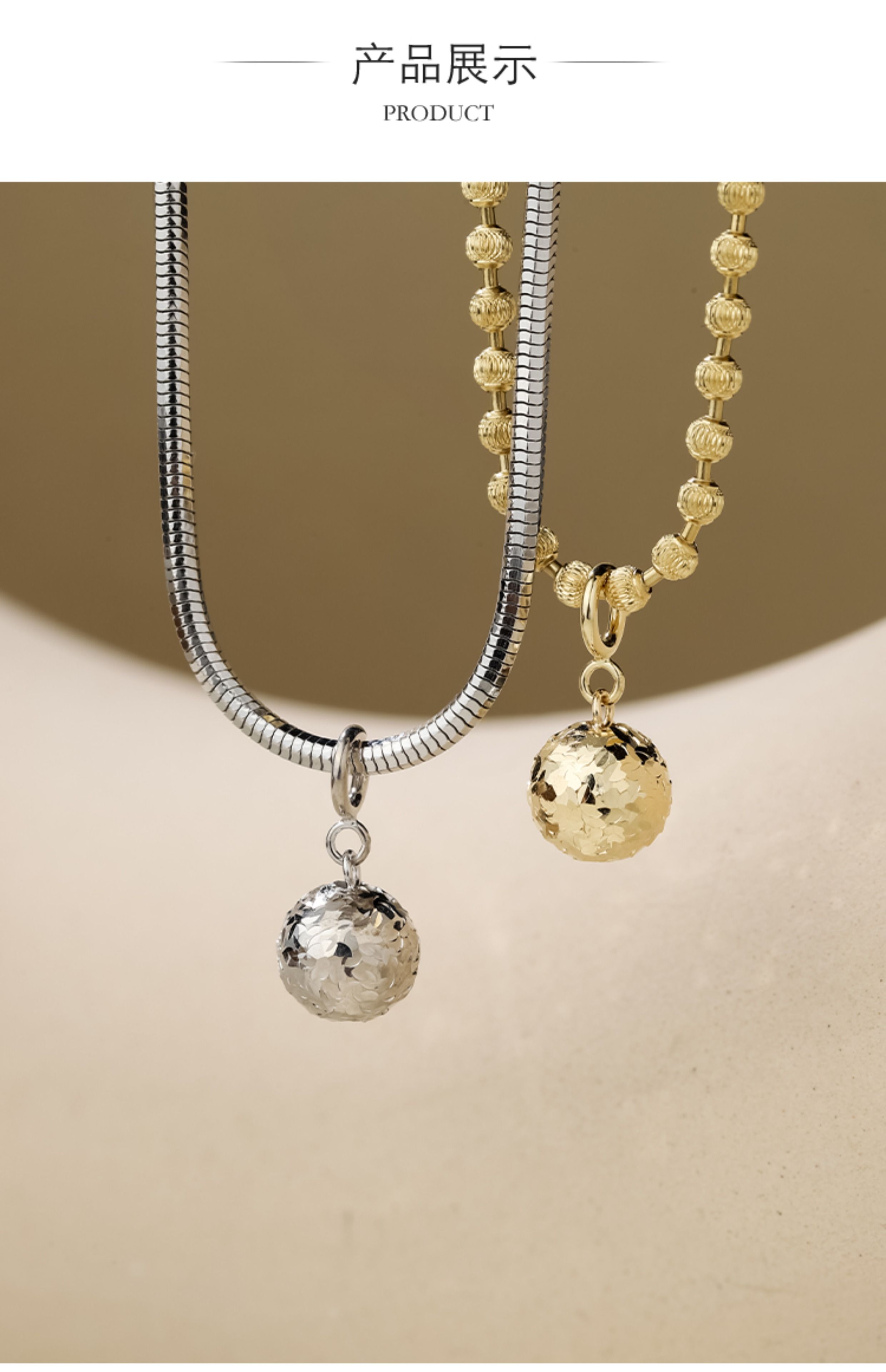 Changju 18K gold crushed ice fish scales engraved flashing gold ball drop pendant casual versatile necklace earrings light gold in stock
