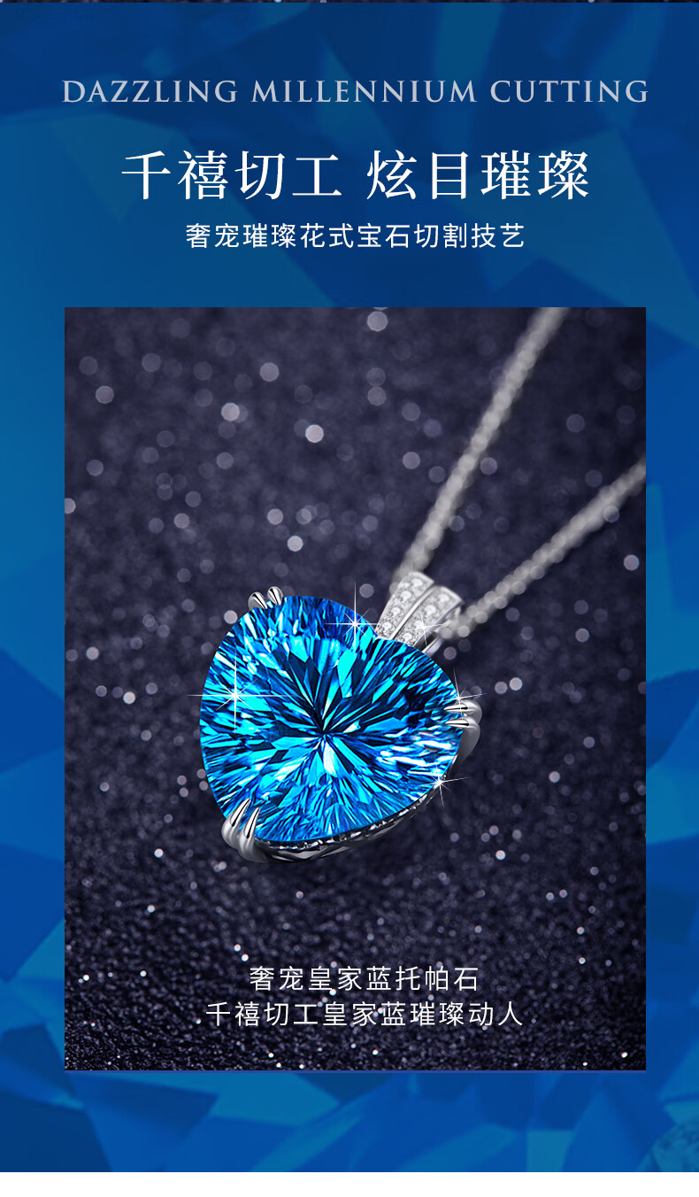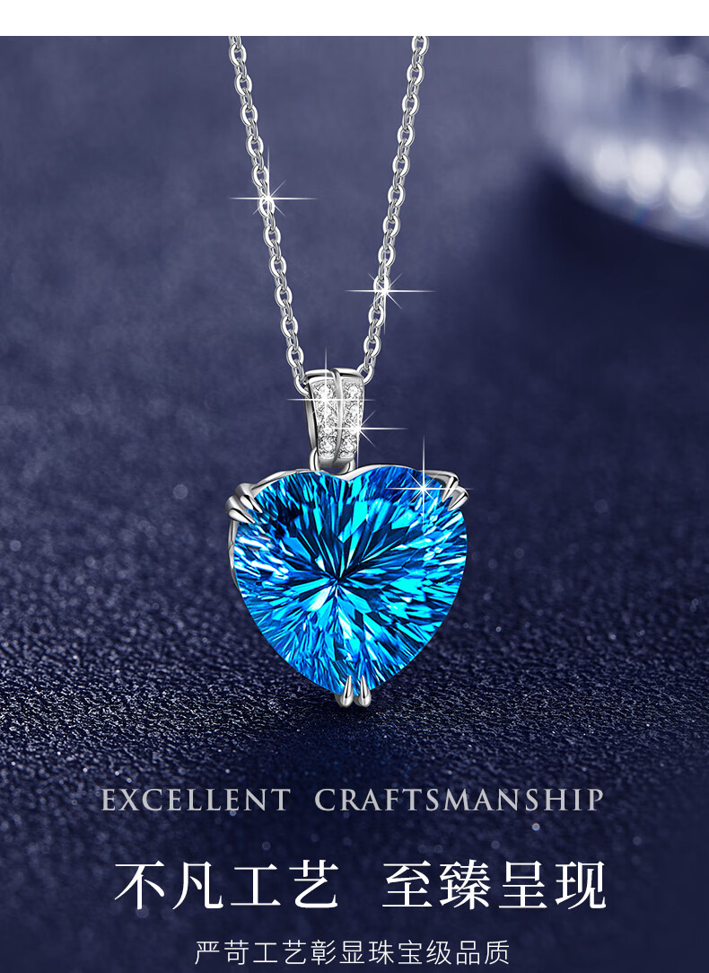 HEEKAIYI Heart of the Ocean Necklace Topaz Luxury Jewelry for Women Chinese Valentine's Day Birthday Gift for Wife and Girlfriend 13ct Topaz Heart of the Ocean Necklace