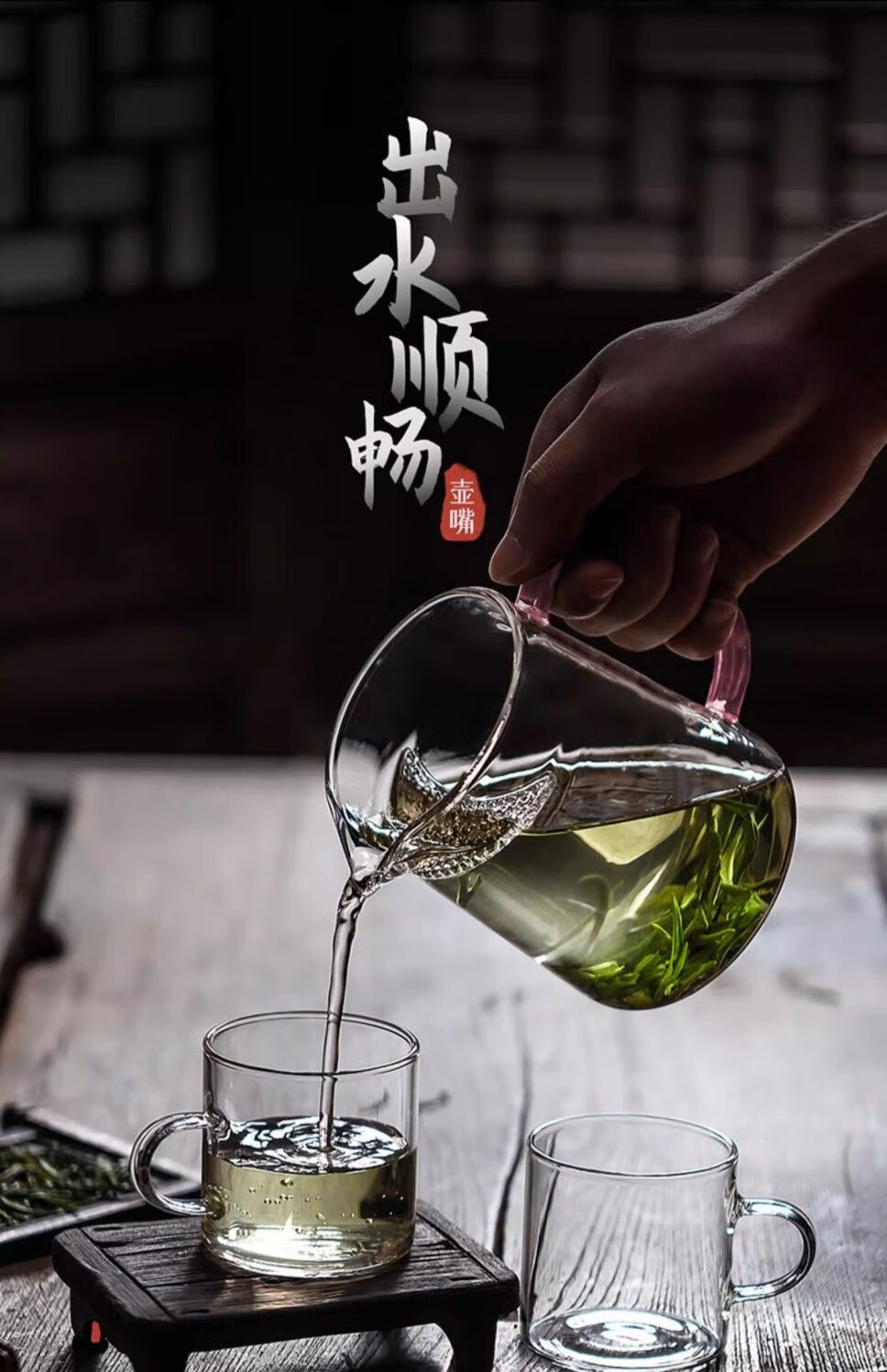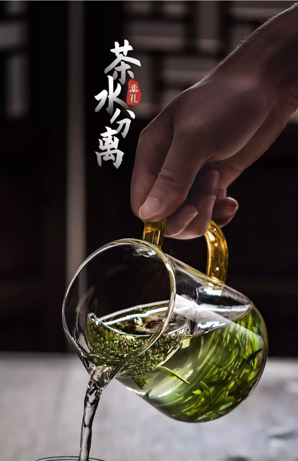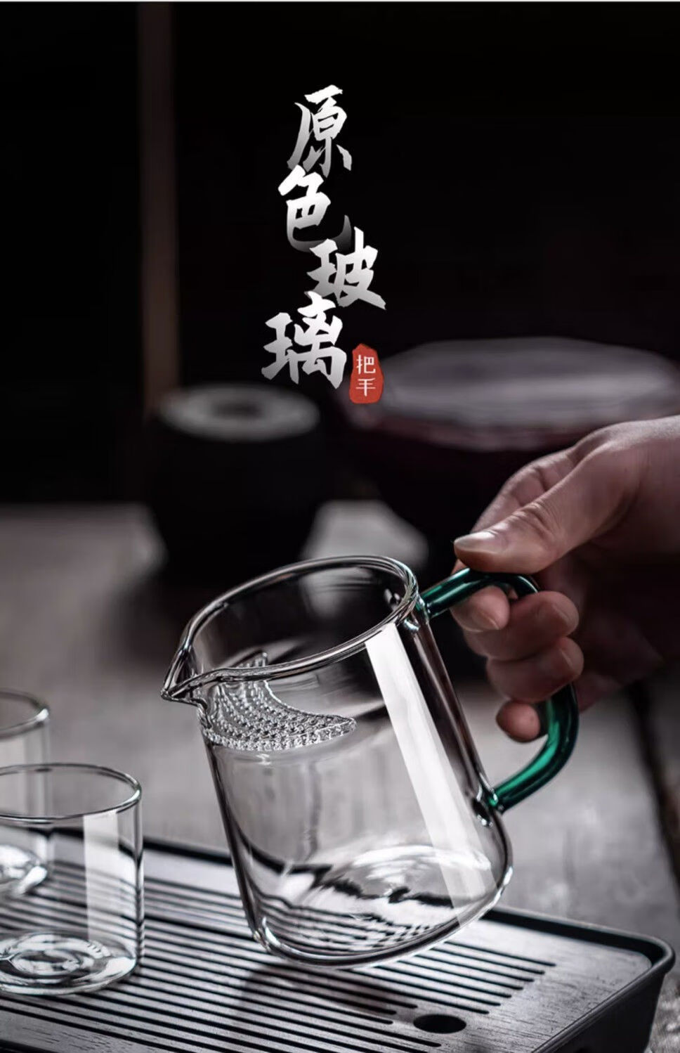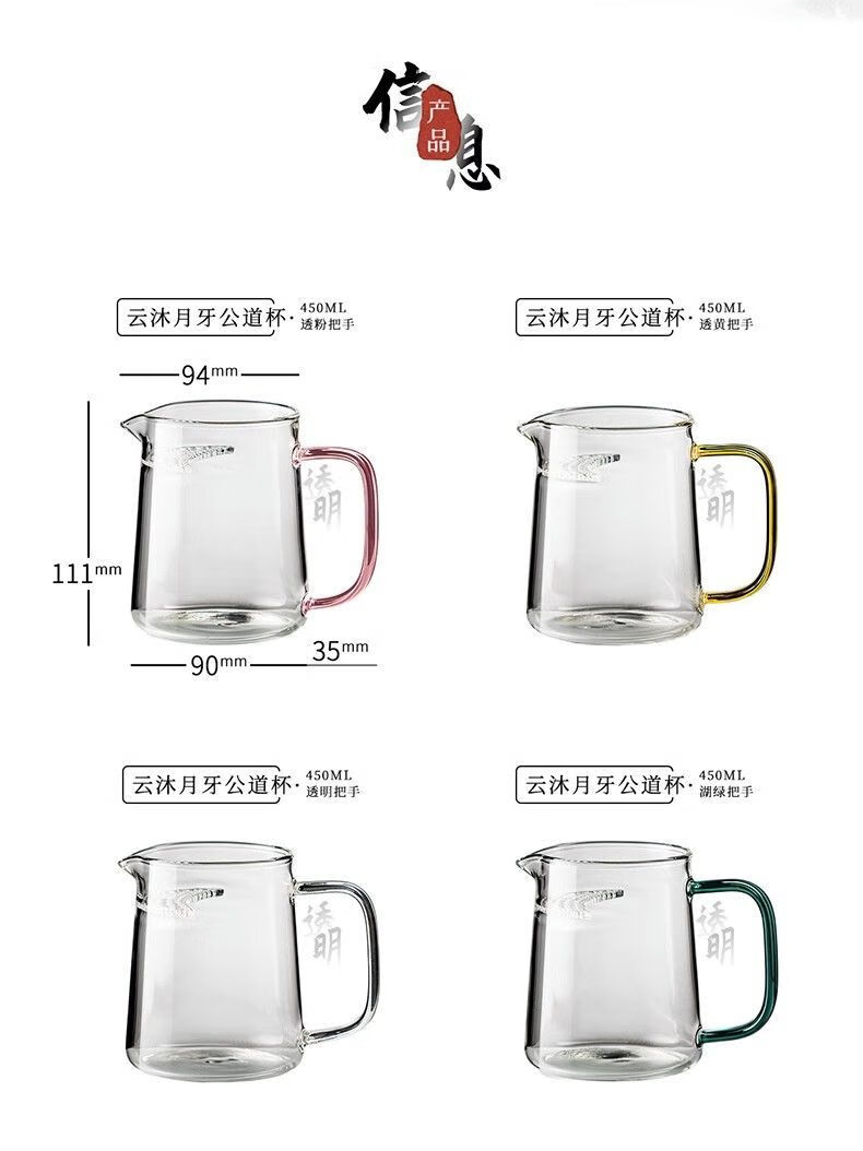 High temperature resistant fair cup, simple tea cup, large capacity male tea cup, household filterable tea sea tea water separator, green handle, straight crescent moon, 450ml 1 piece