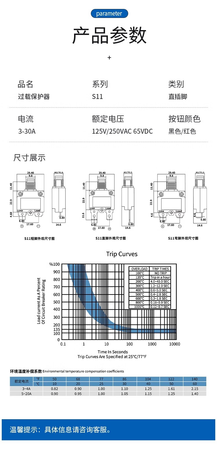 S11 Overload Overcurrent Protector Switchgear Circuit Breaker (KUOYUH88Serie 25A