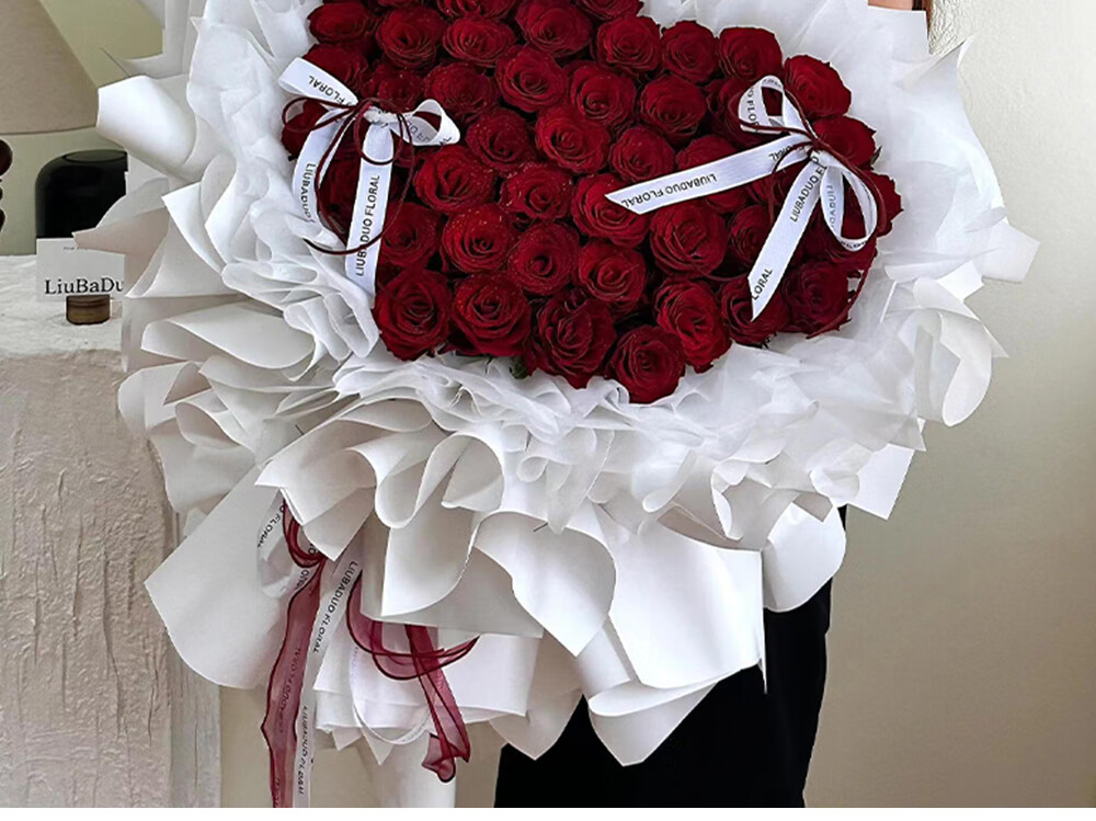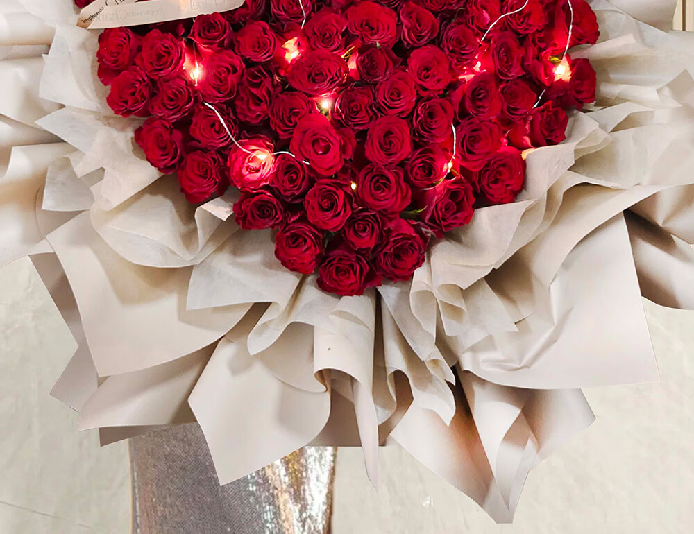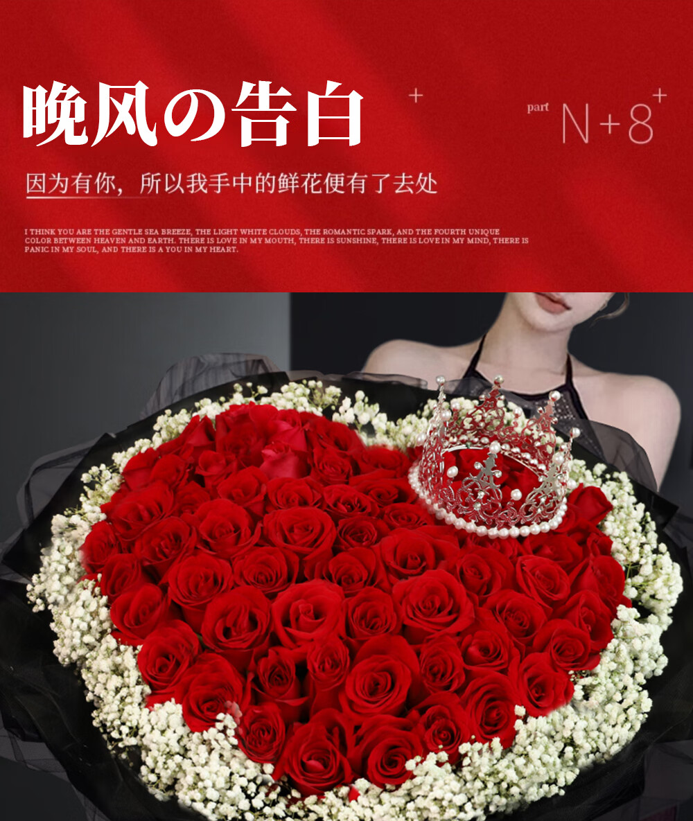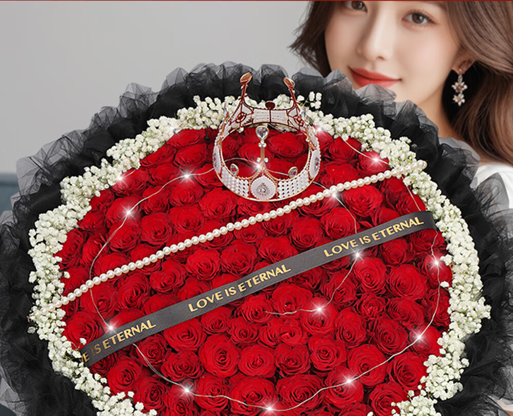 Wells Valentine's Day gift, hourly delivery of flowers in the same city, red rose bouquet for wife, birthday, real flowers for engaged girlfriend, 52 red rose bouquet, night breeze confession