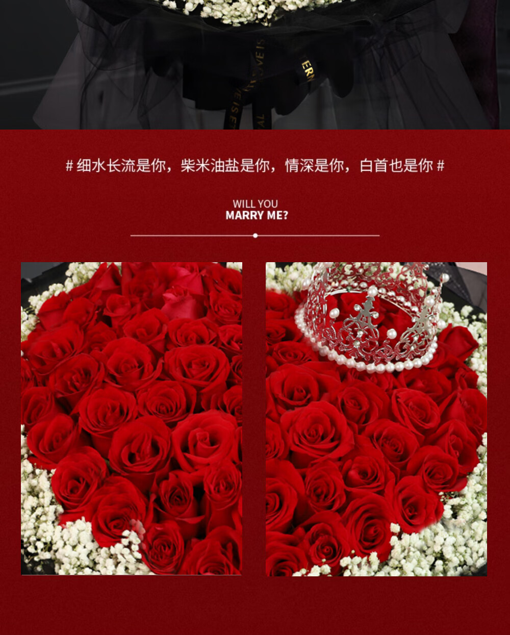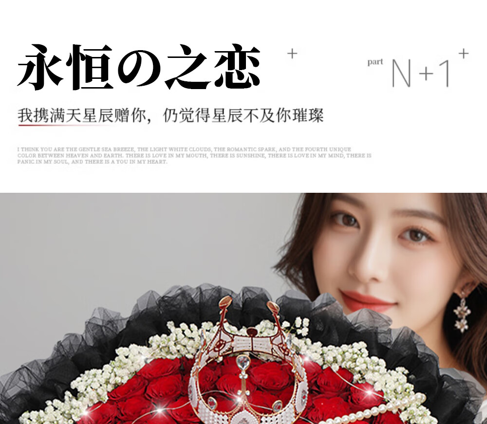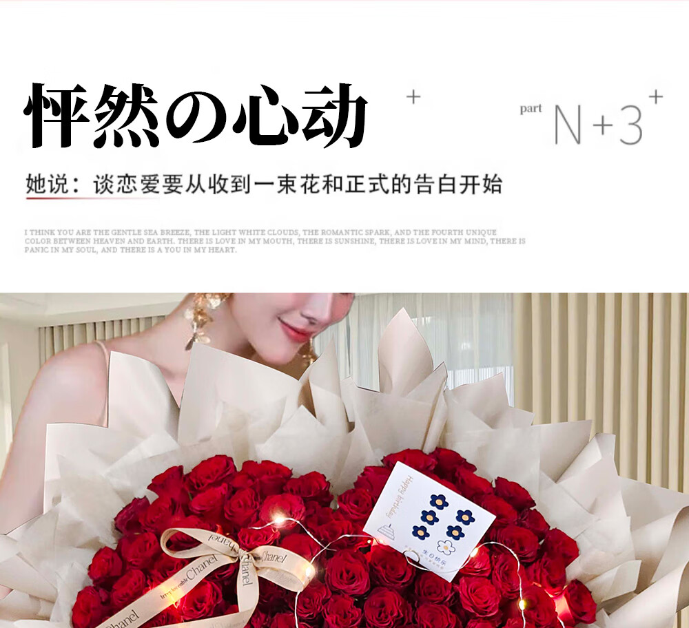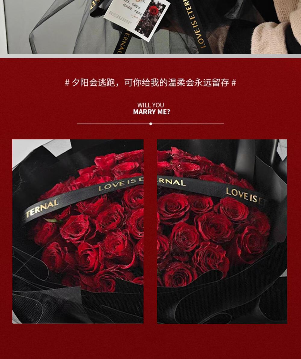 Wells Valentine's Day gift, hourly delivery of flowers in the same city, red rose bouquet for wife, birthday, real flowers for engaged girlfriend, 52 red rose bouquet, night breeze confession