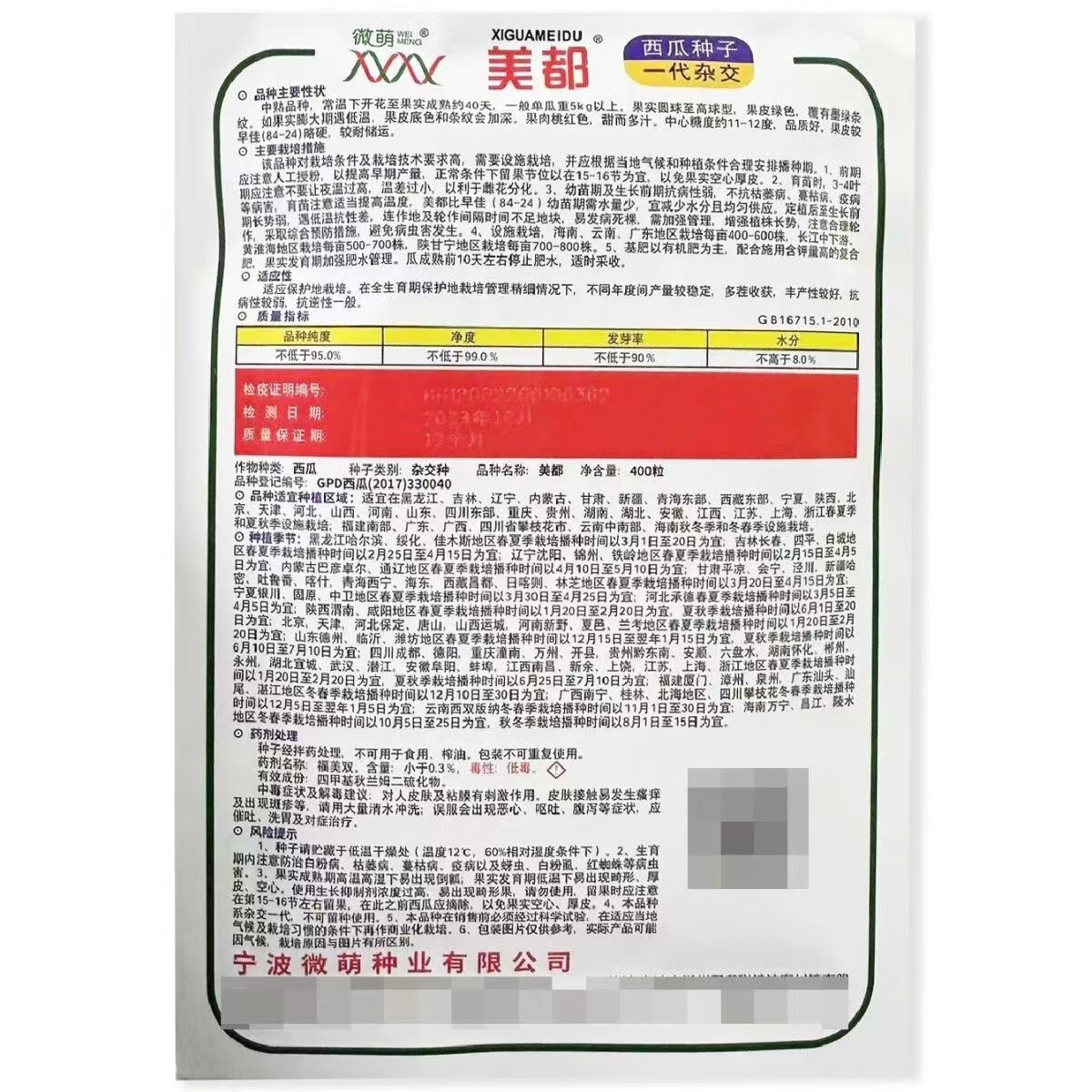 Chunzhiyun Meidu Watermelon Seeds with Thin Skin, Resistant to Cracks, Less Seeds, Super Sweet and Crisp 8424 Round Watermelon Meidu Watermelon Seeds Red Letter Meidu 400 capsules