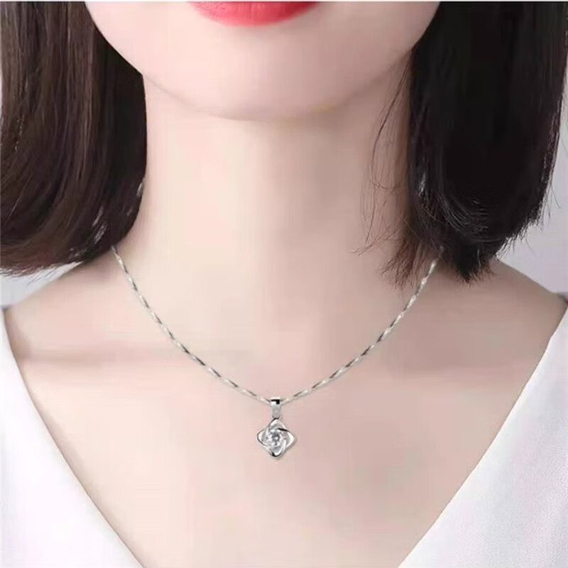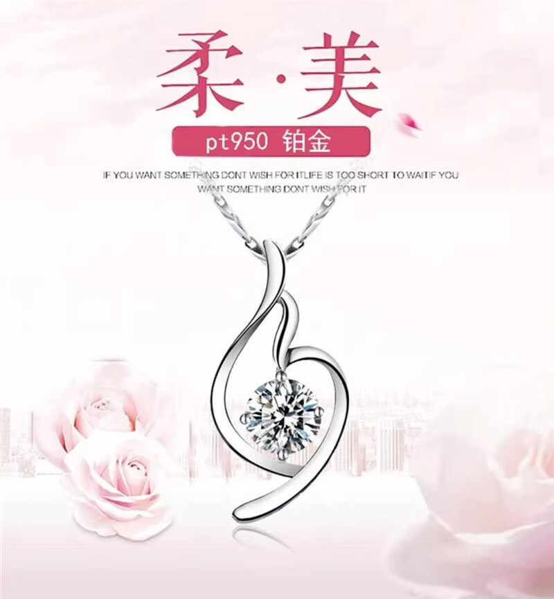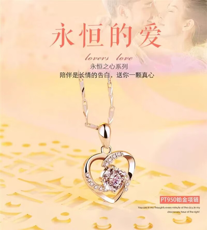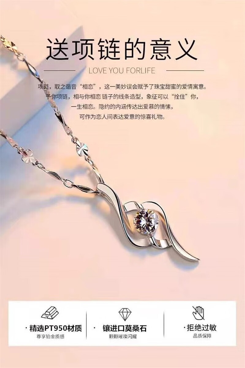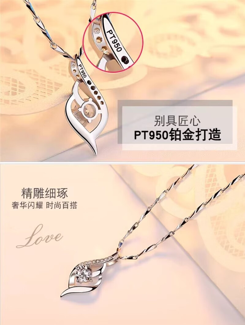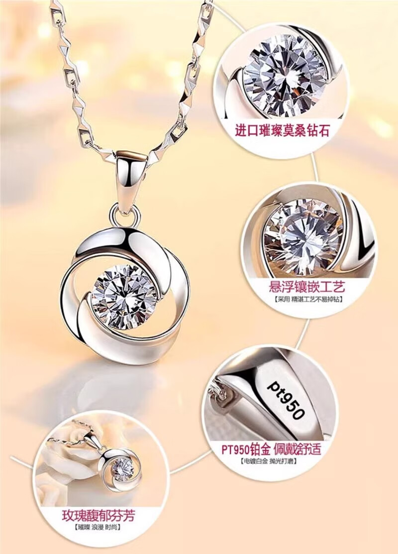 DRSJpt950 Platinum Necklace for Women Moissanite 18 Clavicle Chain Platinum Pendant for Women K Gold Birthday Gift for Girlfriend Best Friend Eternal Love + Flower Chain + Exquisite Packaging Light Luxury Style