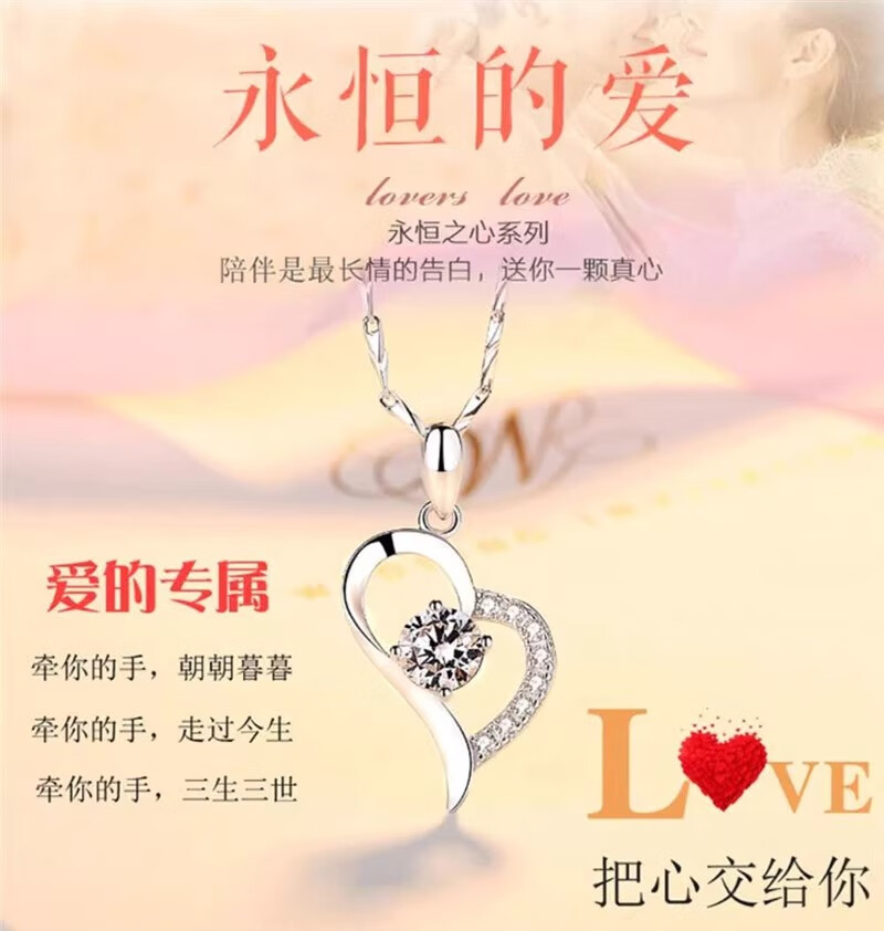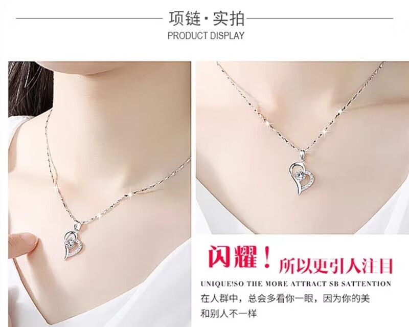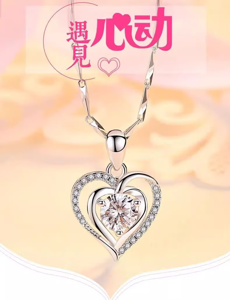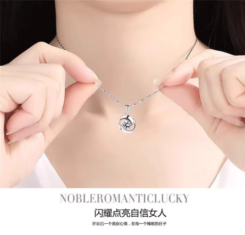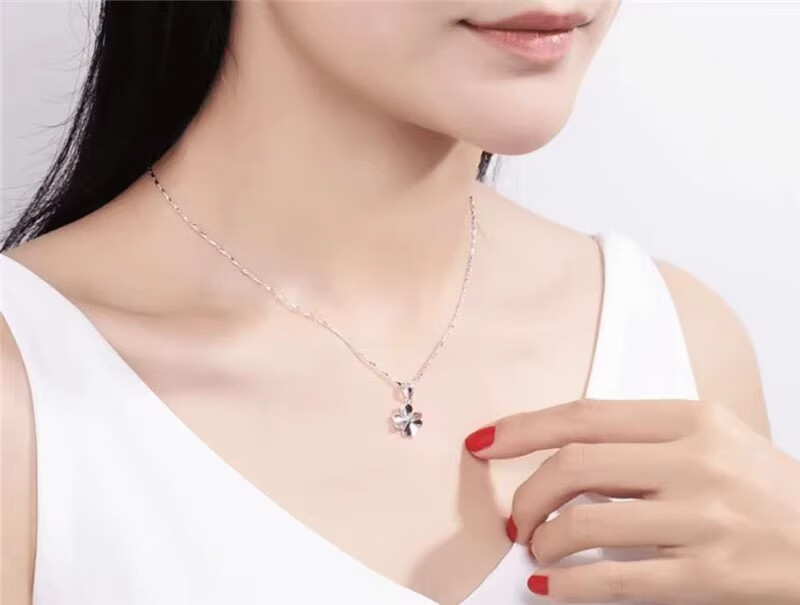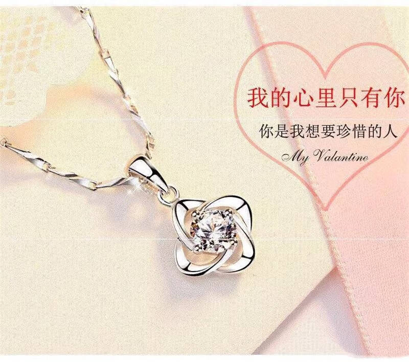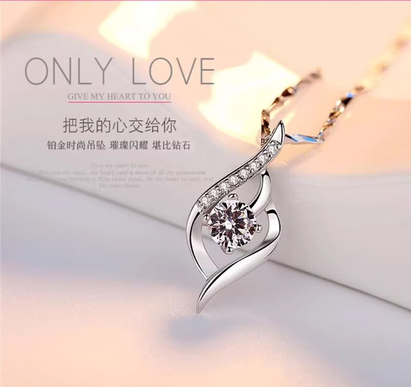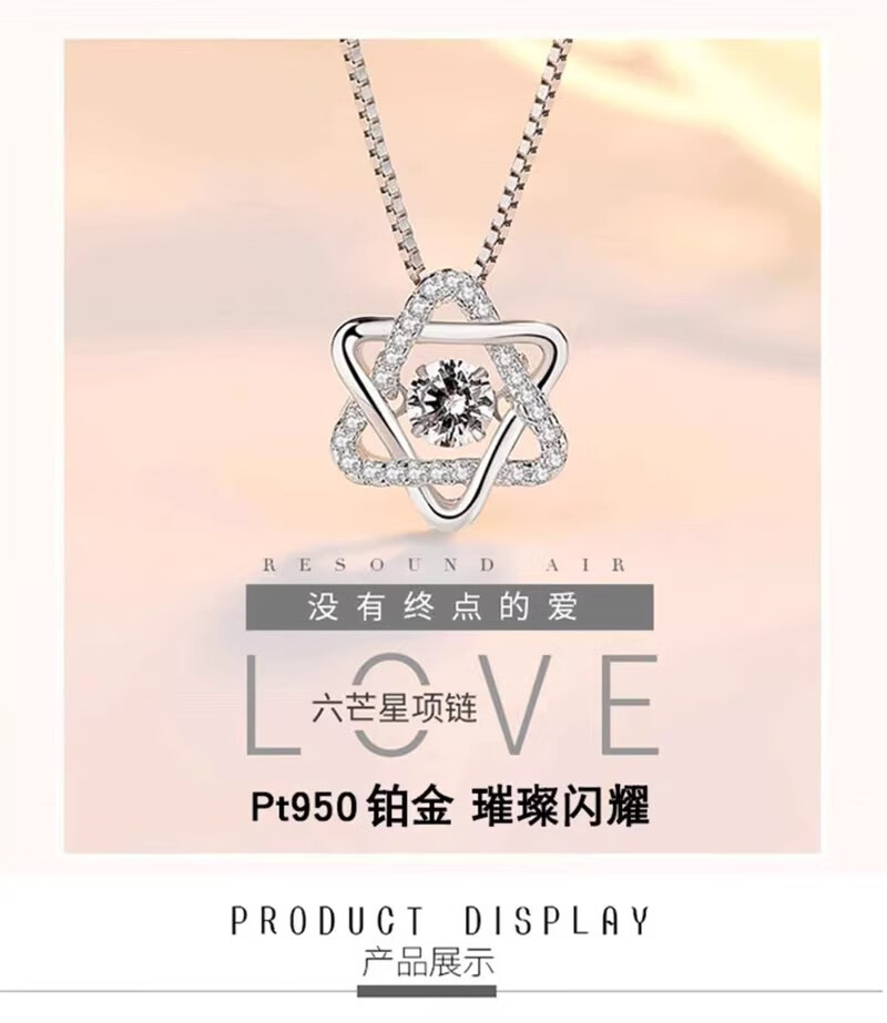 DRSJpt950 Platinum Necklace for Women Moissanite 18 Clavicle Chain Platinum Pendant for Women K Gold Birthday Gift for Girlfriend Best Friend Eternal Love + Flower Chain + Exquisite Packaging Light Luxury Style