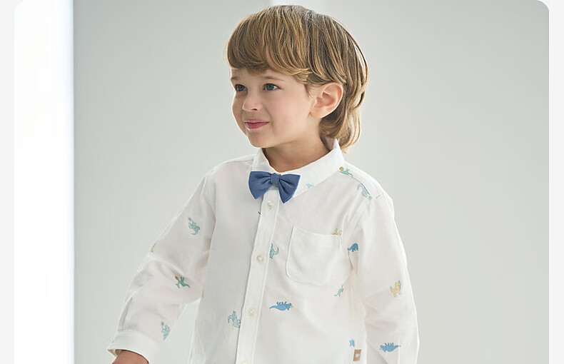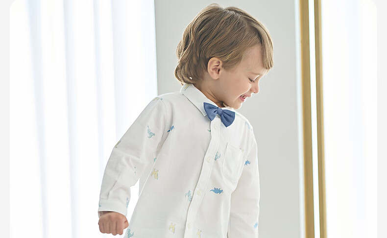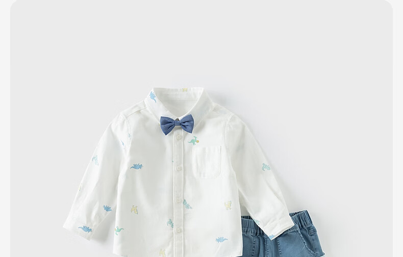 DAVE&BELLA Spring New Gentleman Children's Shirts Fashionable Boys' Children's Clothes Tops Children's Shirts Casual Boys' Clothes Dinosaur Print Ready Stock 100 cm (recommended height 90-100cm)