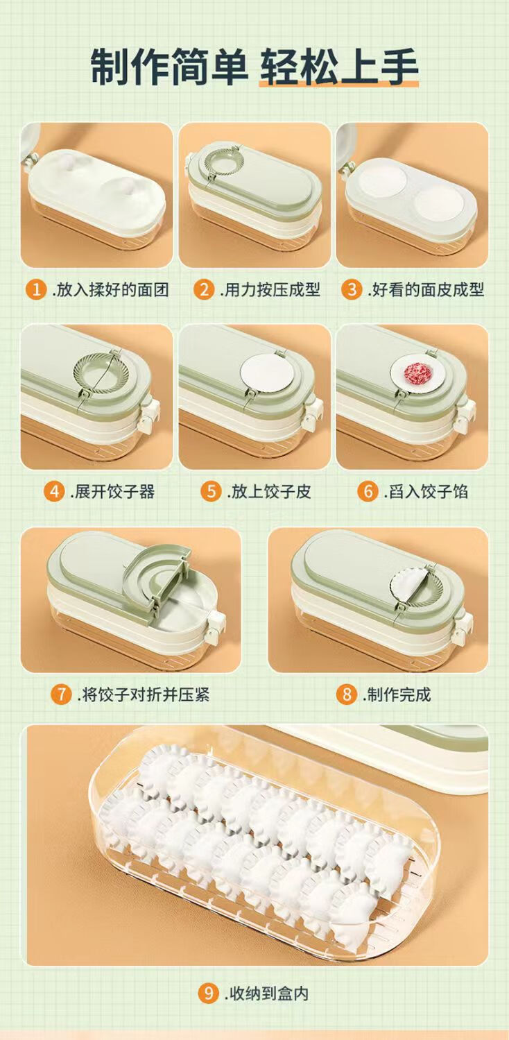 New dumpling-making and rolling-out artifact mold for household use for making dumpling wrappers, ultra-small special tool with box, khaki color