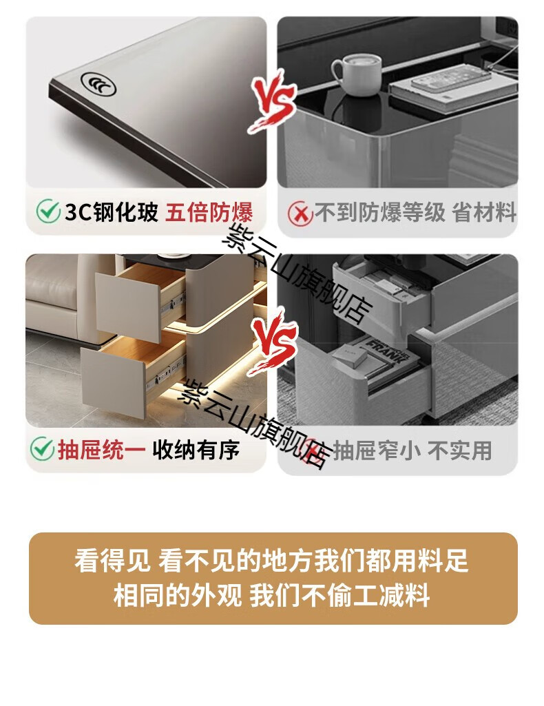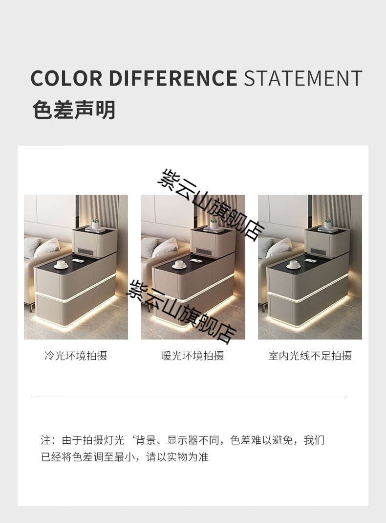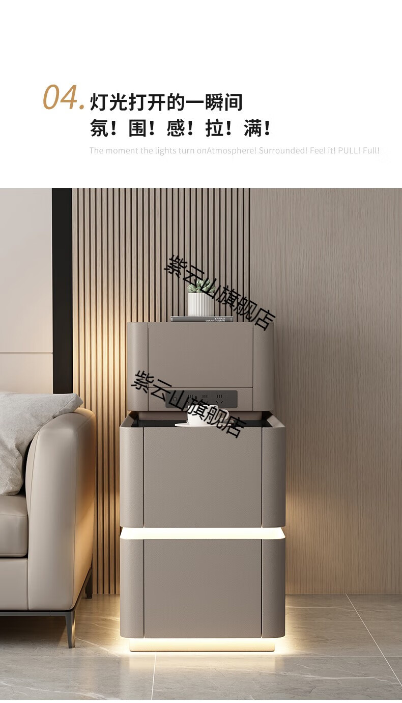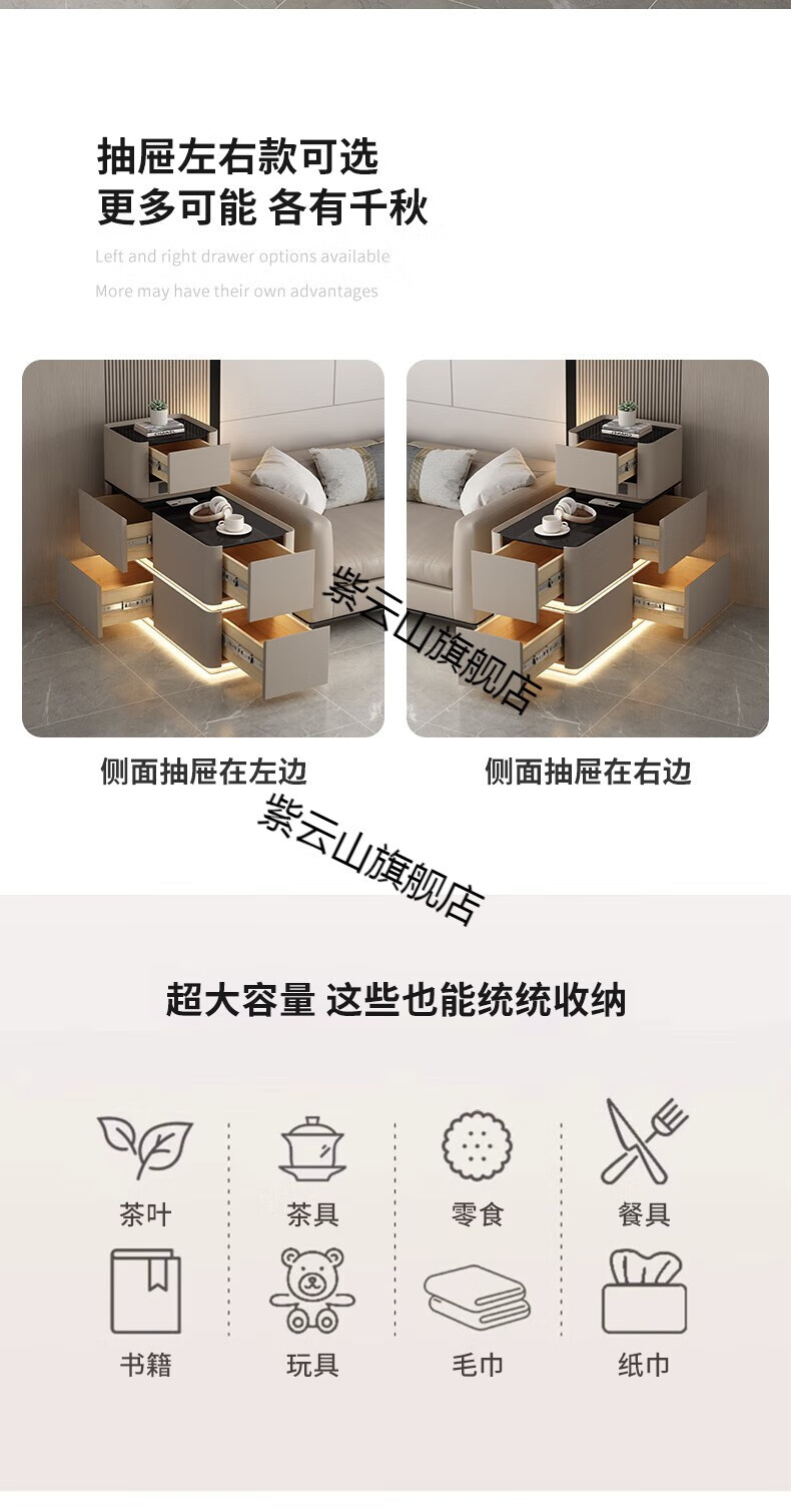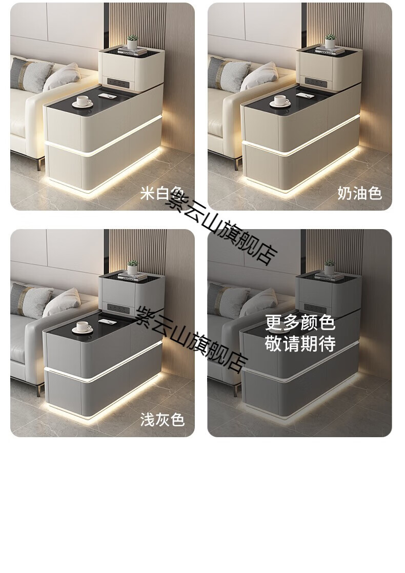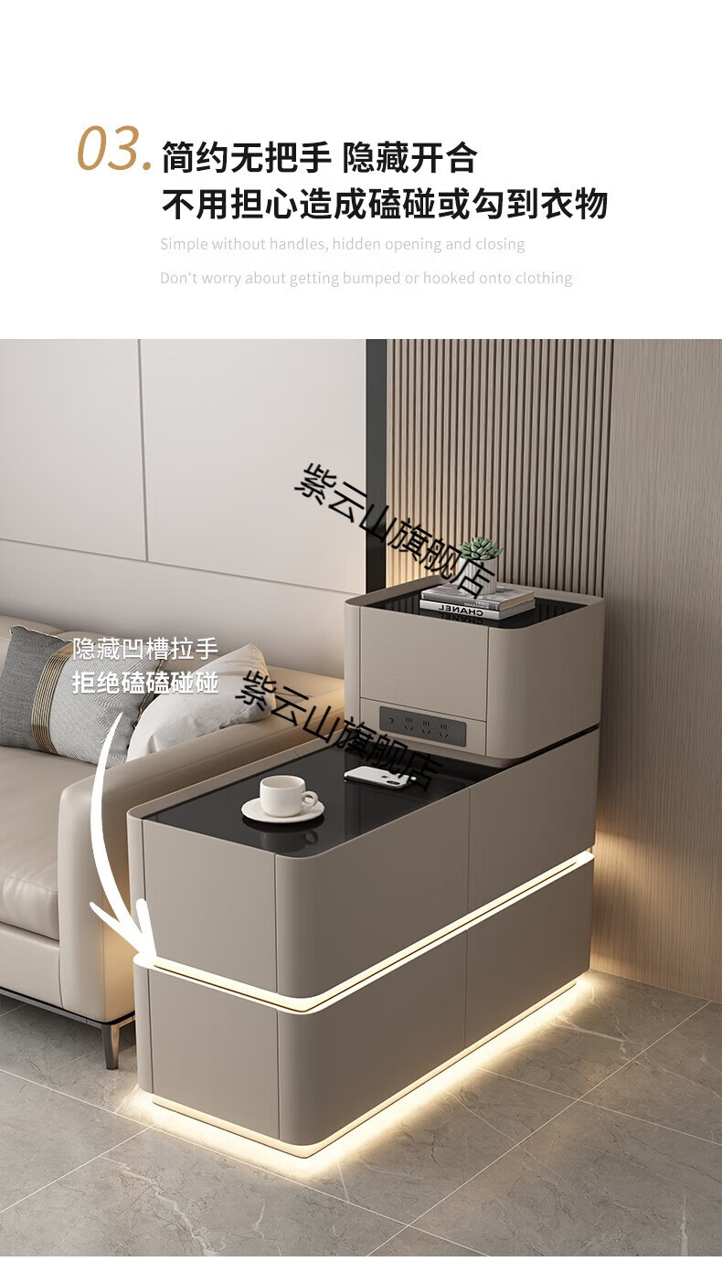Ziyunshan sofa side table armrest cabinet with light and socket light luxury and high-end small apartment living room multi-functional side cabinet storage cabinet Khaki color (male steak plug+light strip+wireless charging) black glass width 40*height (55+30)*length 90