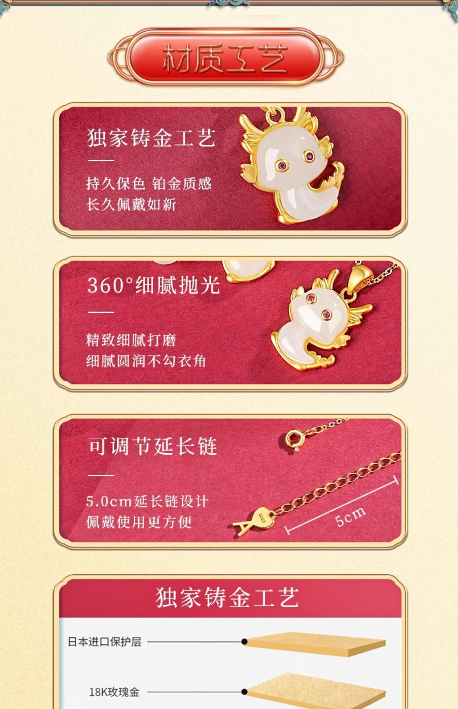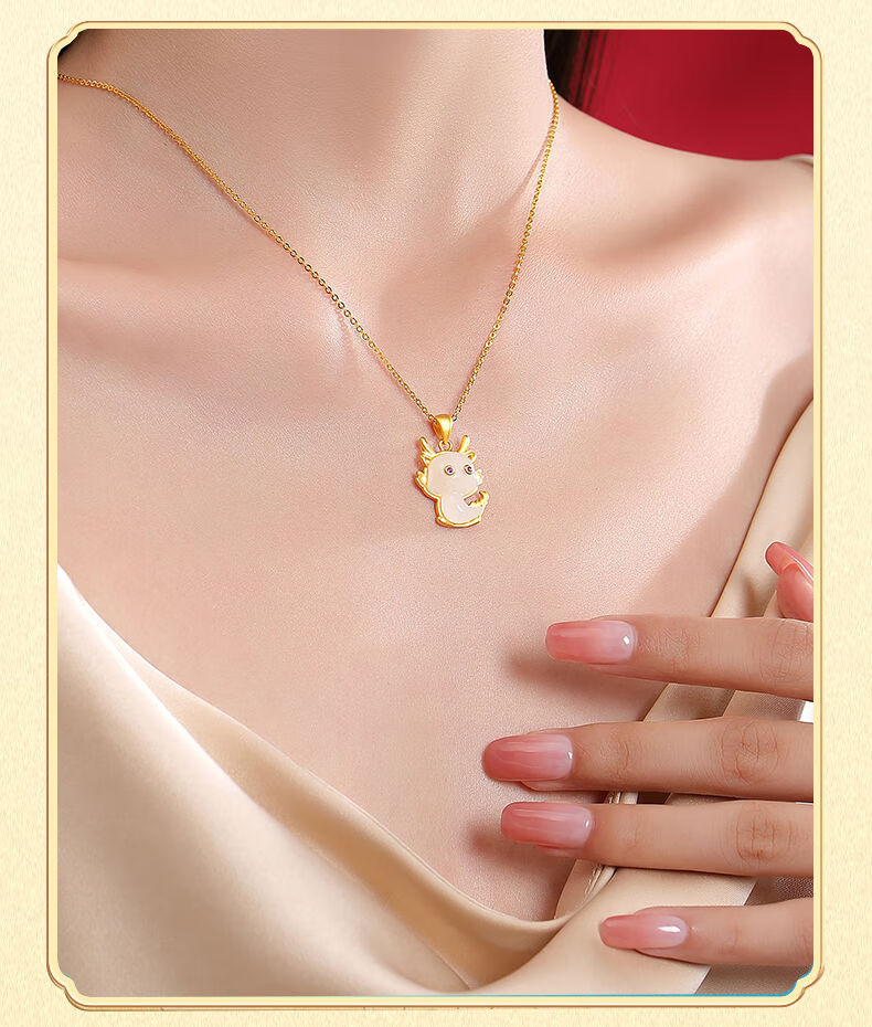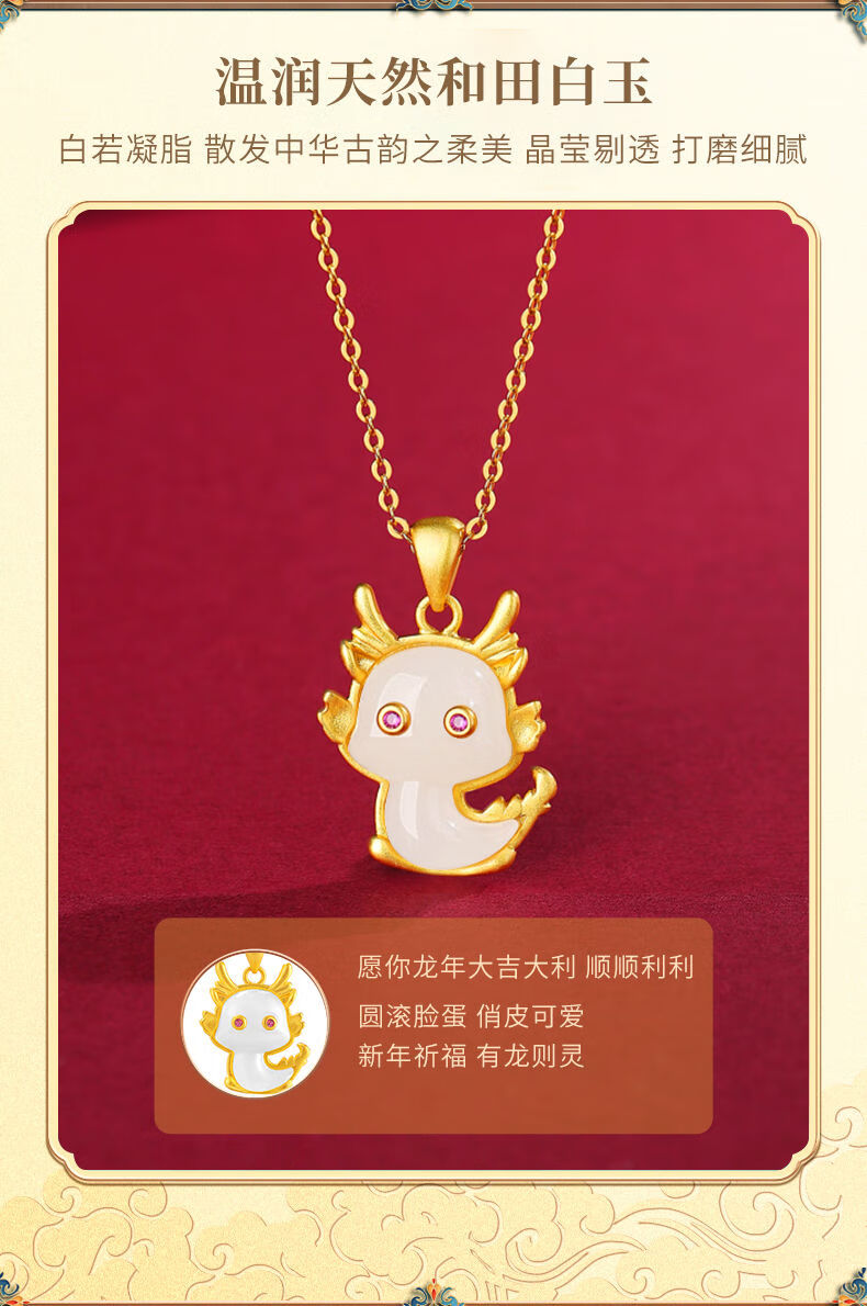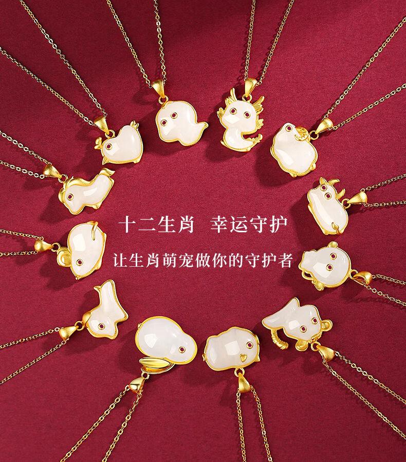 Chi Pan Hotan White Jade Zodiac Necklace for Women 2024 Jewelry Gold Inlaid Jade Pendant Girl Birthday Christmas Gift for Girlfriend Hotan White Jade Little Golden Tiger Necklace + Identification Certificate
