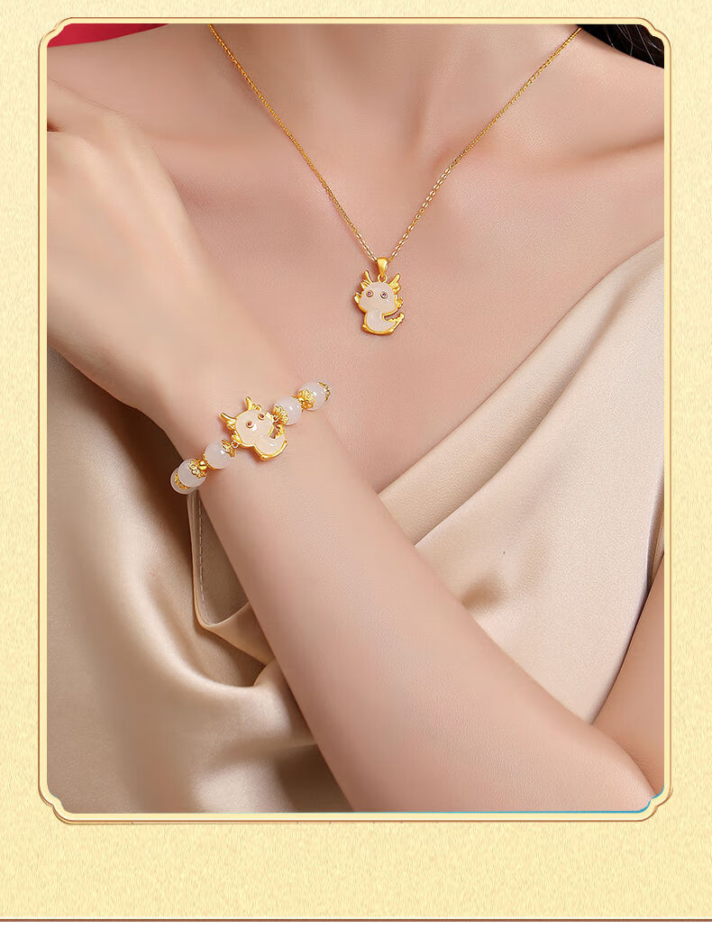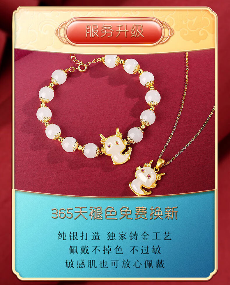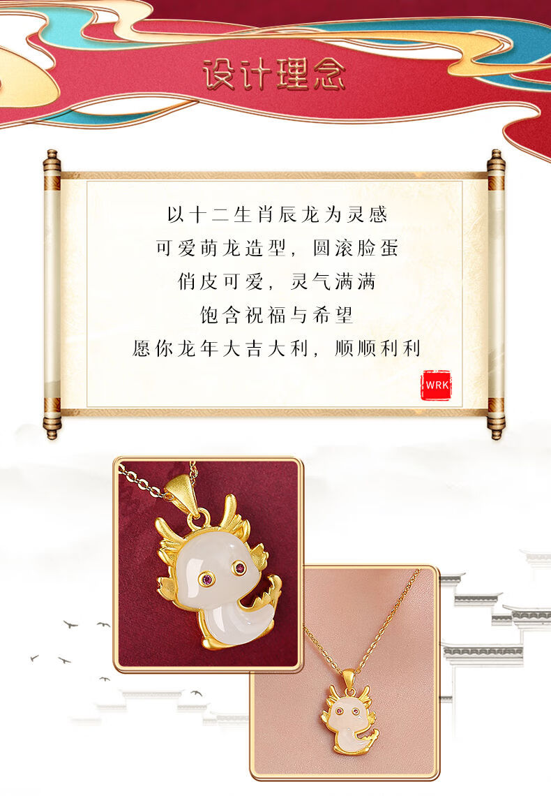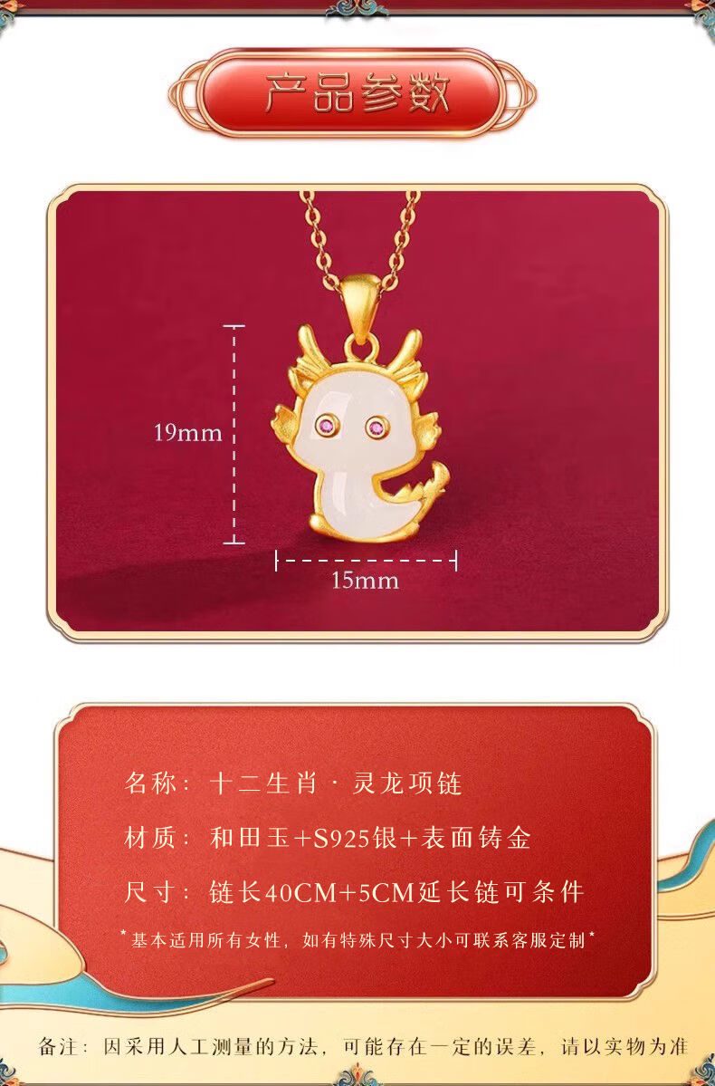 Chi Pan Hotan White Jade Zodiac Necklace for Women 2024 Jewelry Gold Inlaid Jade Pendant Girl Birthday Christmas Gift for Girlfriend Hotan White Jade Little Golden Tiger Necklace + Identification Certificate