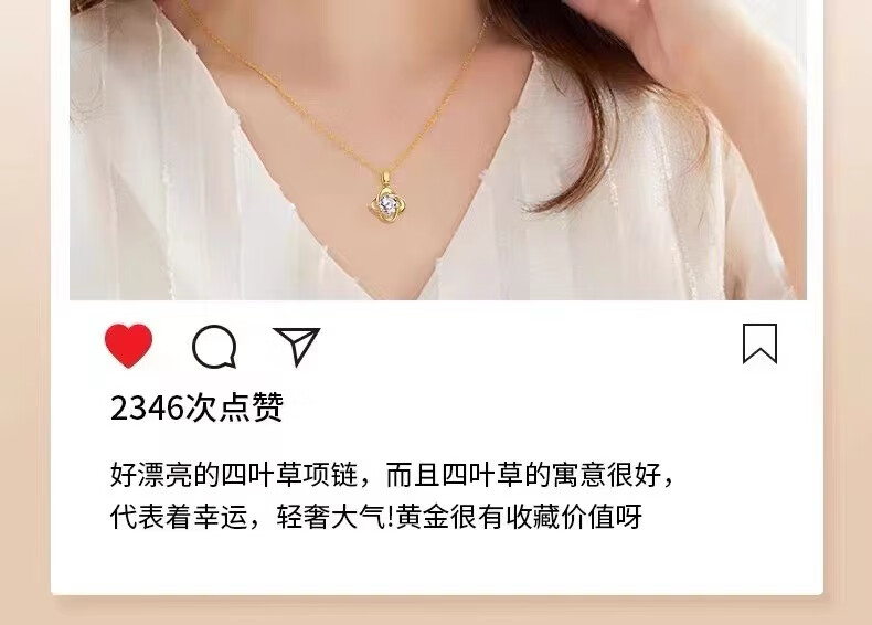 Chi Panxiang gold four-leaf clover necklace for women imitation pure gold pendant 18K pure gold for Valentine's Day for girlfriend Four-leaf clover