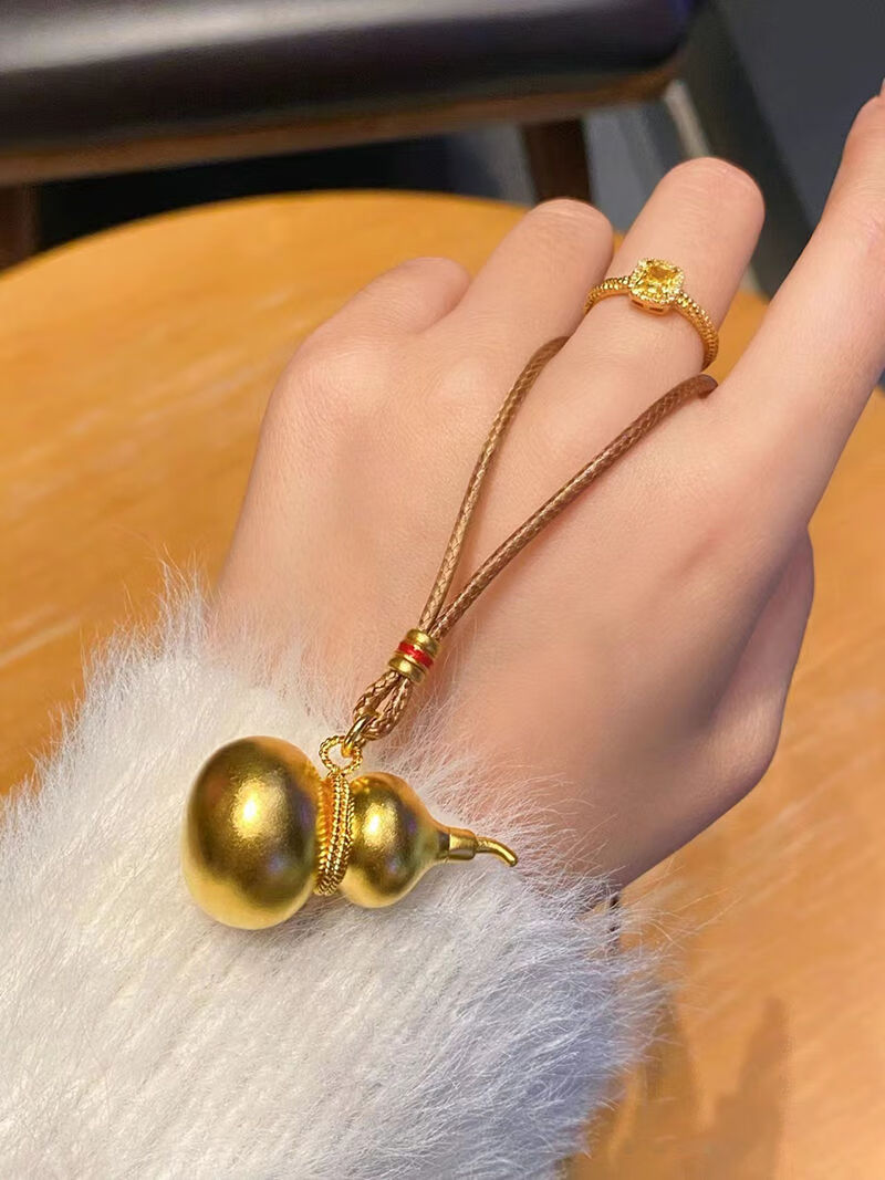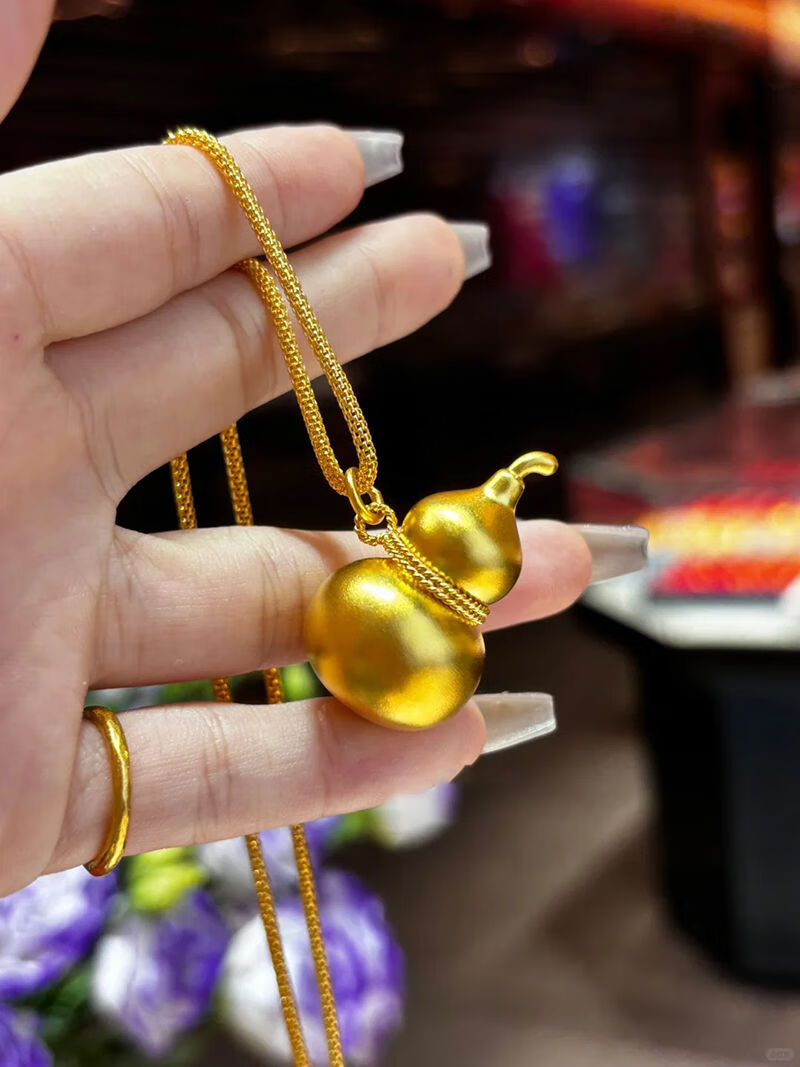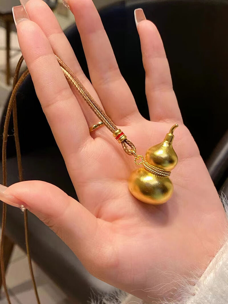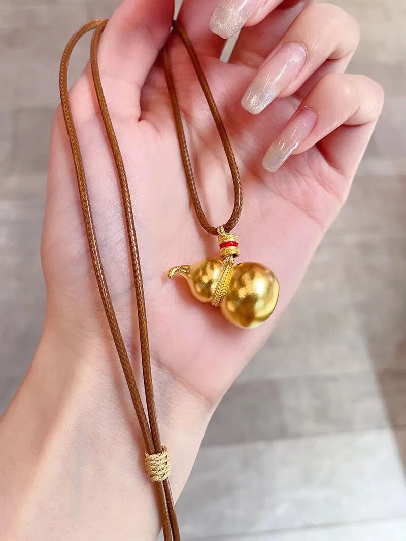 Chipan 18K new gold necklace women's fashionable Valentine's Day gift stretchable lanyard Fulu solid gourd pendant 2024 gourd pendant + leather rope (free exquisite bag