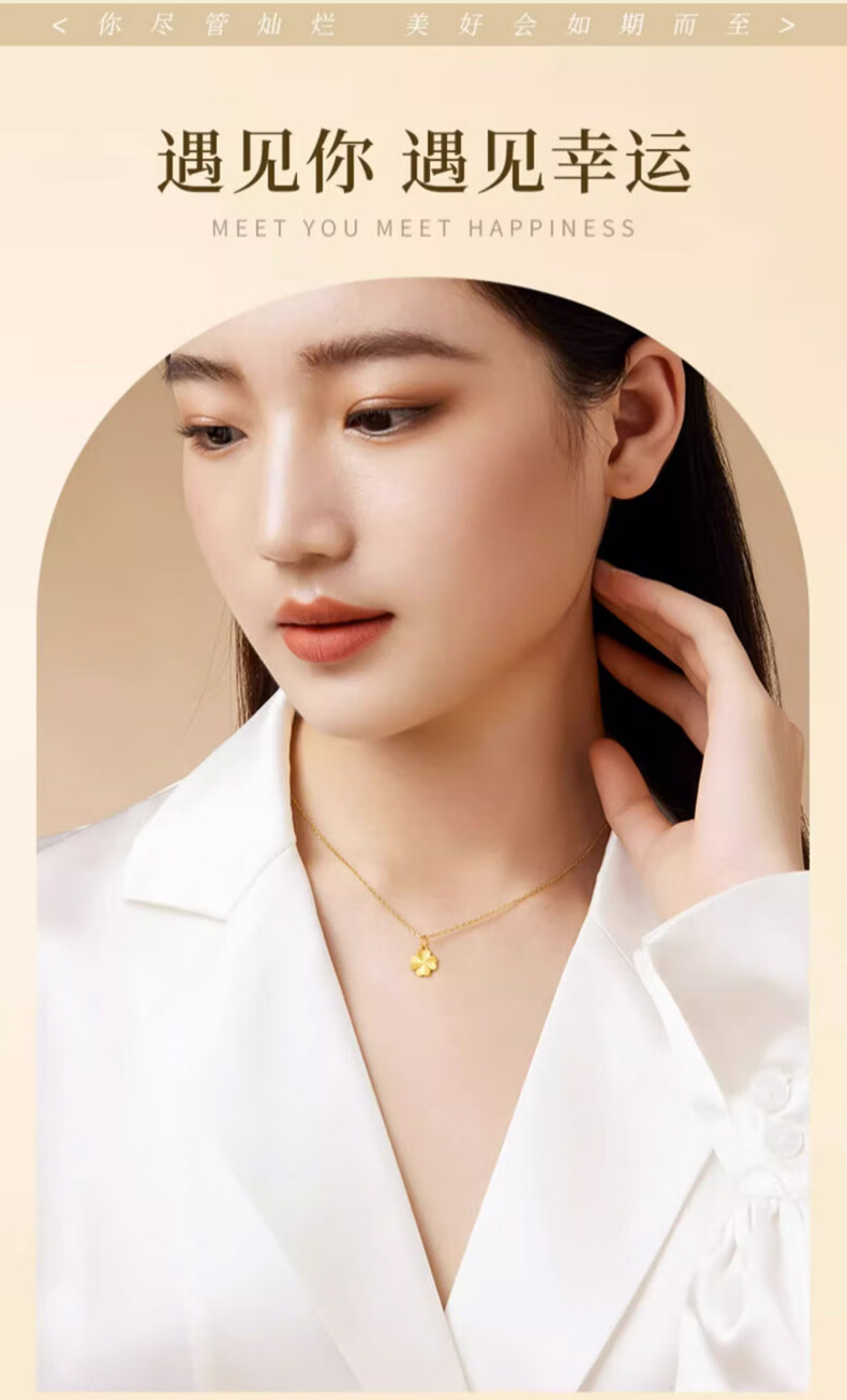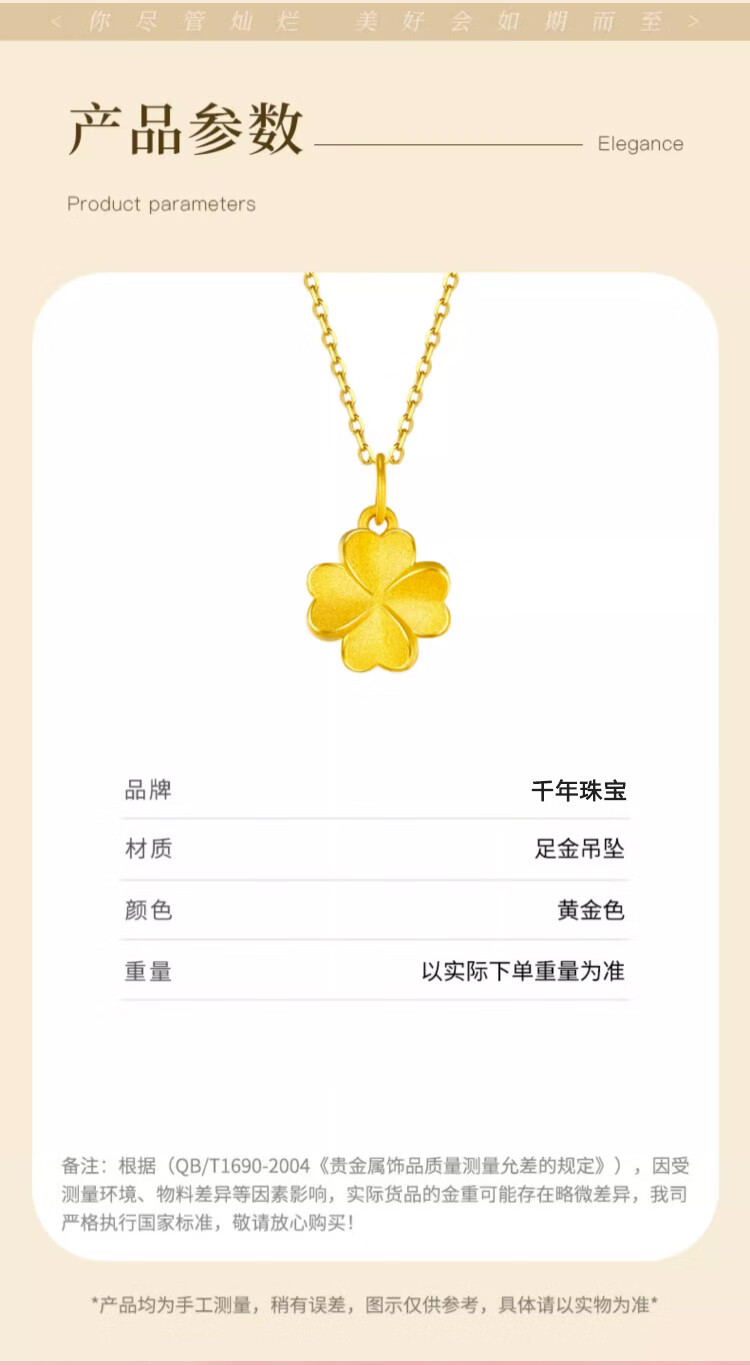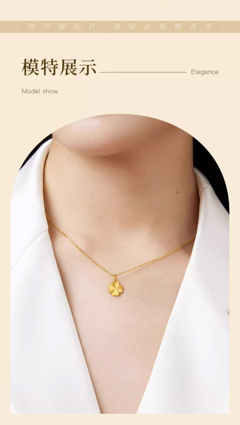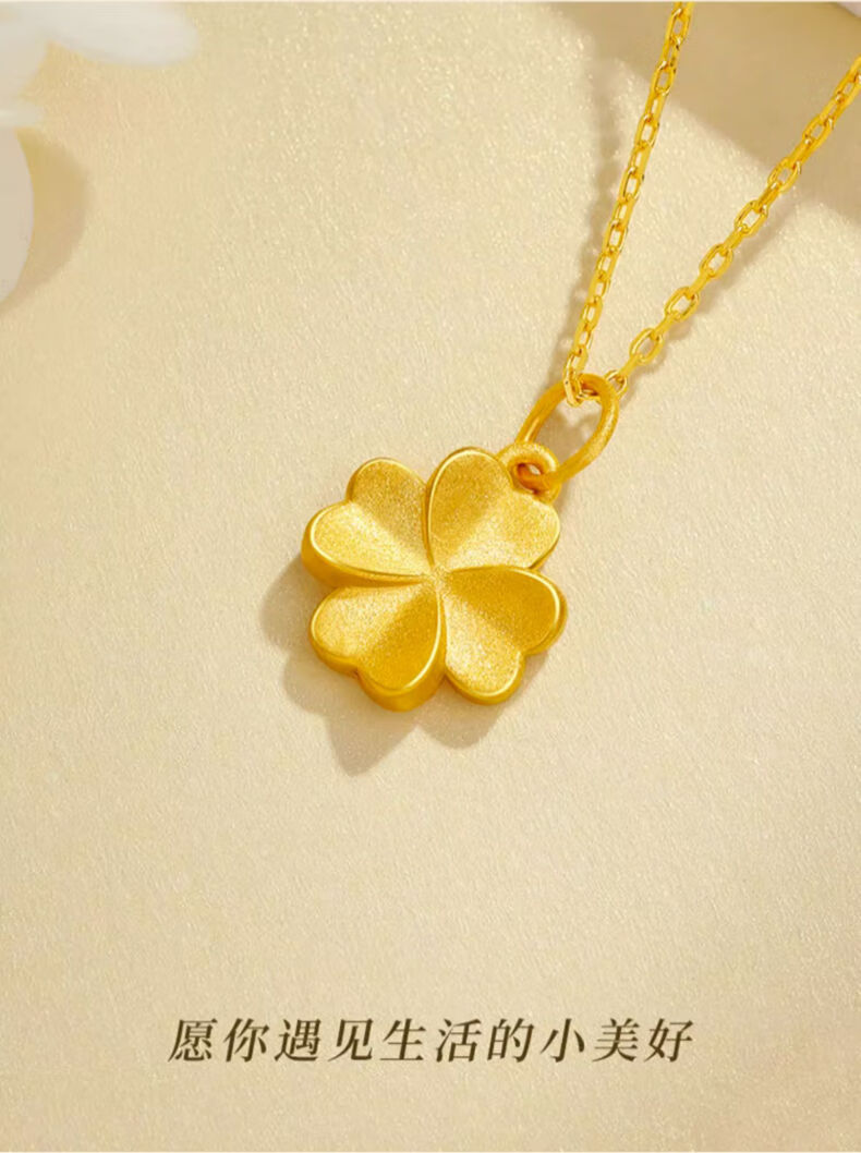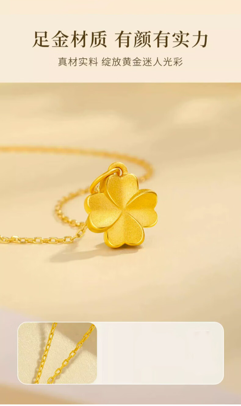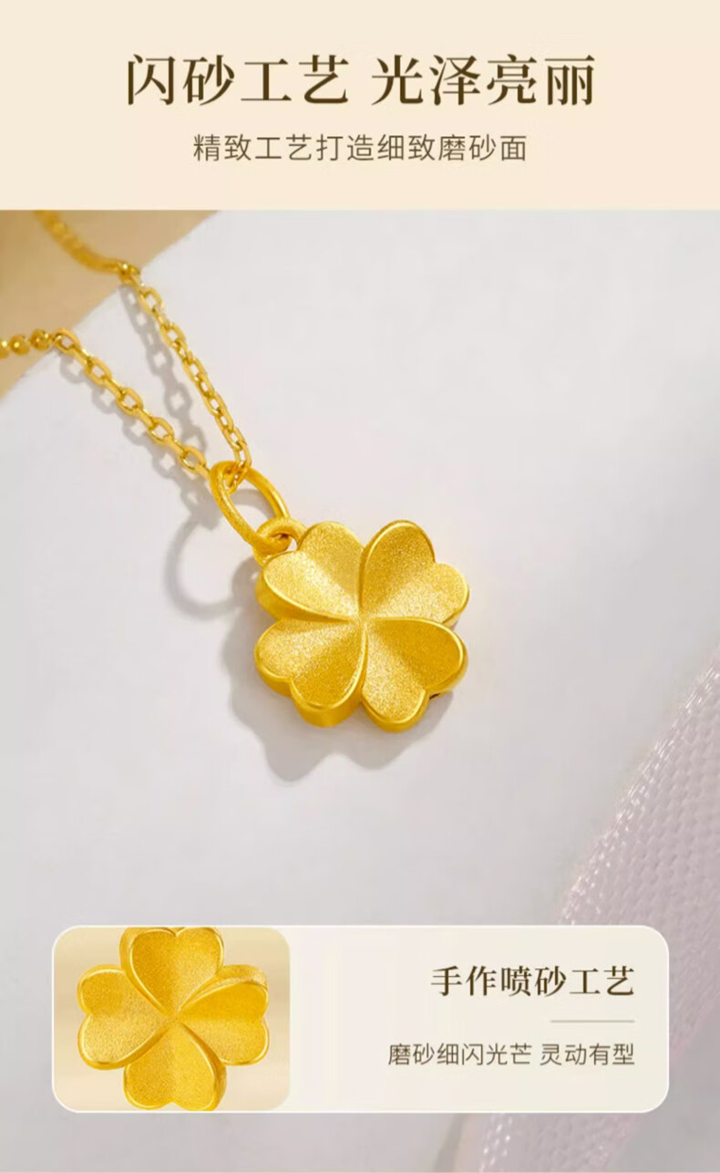 Chipan Jewelry Gold Pendant Women's Four-leaf Clover 999 Pure Gold Necklace 3D Hard Gold Pendant Set Chain New Style Gift Gold Four-leaf Clover Pendant About 0.7g Free Silver
