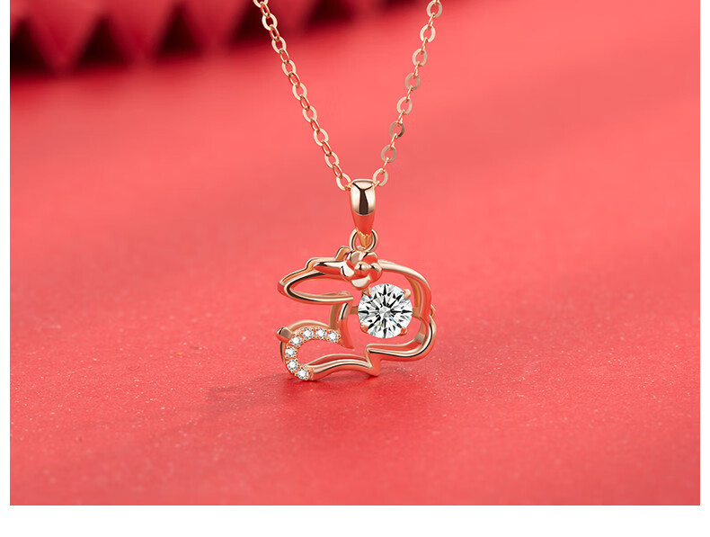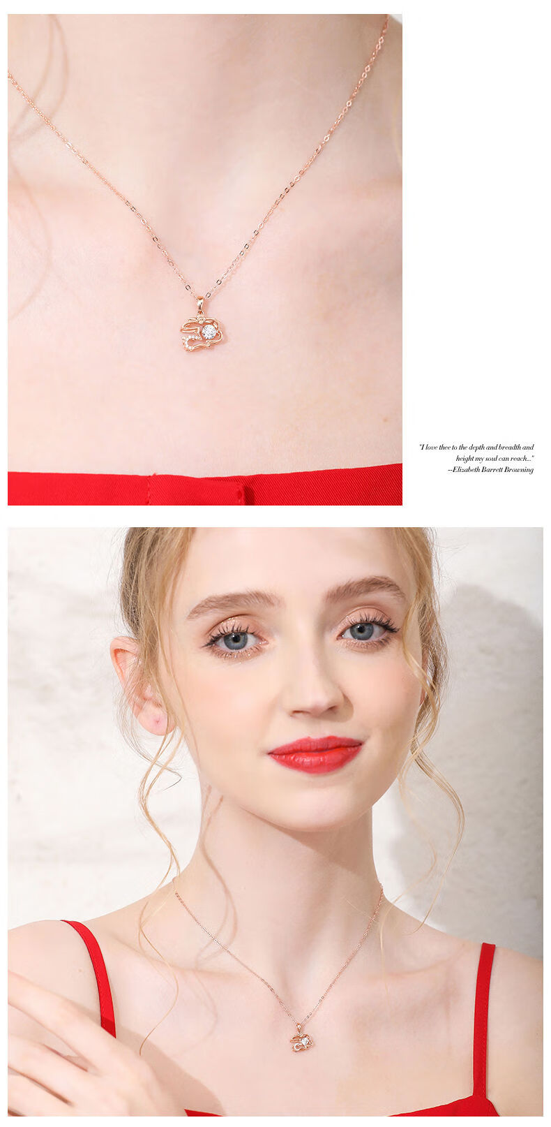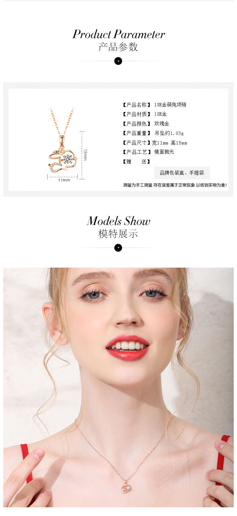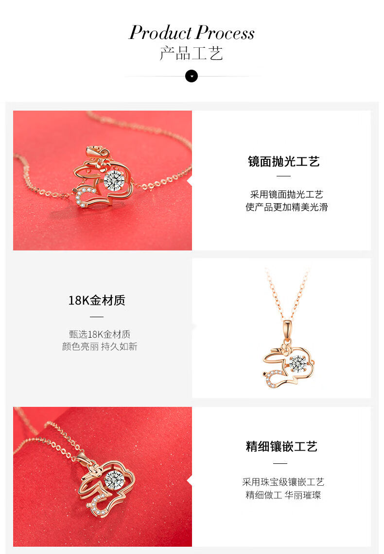 Time Bird 18K Gold Moissanite Zodiac Rabbit Necklace Female Zodiac Year Pendant New Year's Birthday Gift for Girlfriend Moissanite 18K Gold Zodiac Rabbit Single Pendant +18