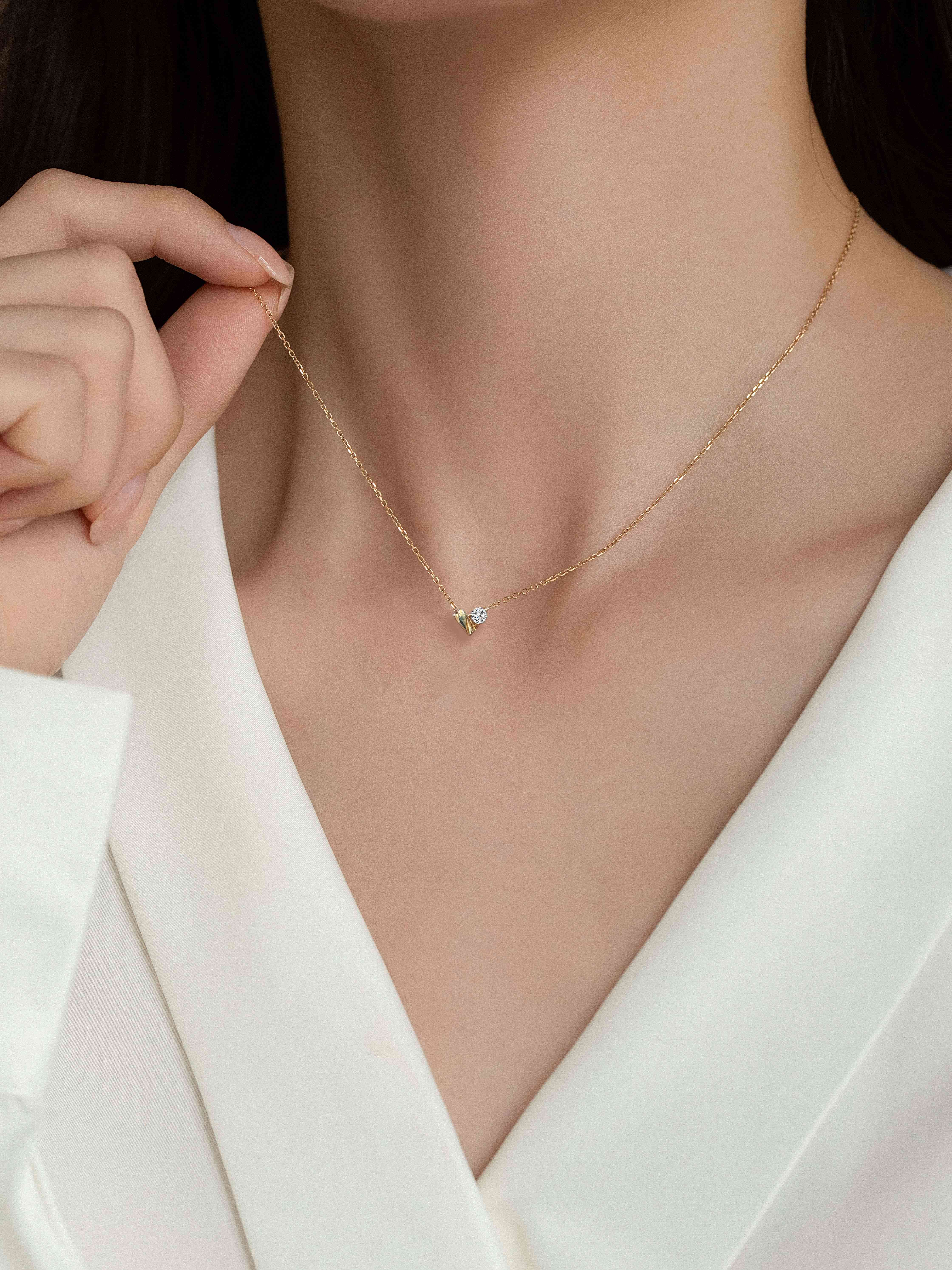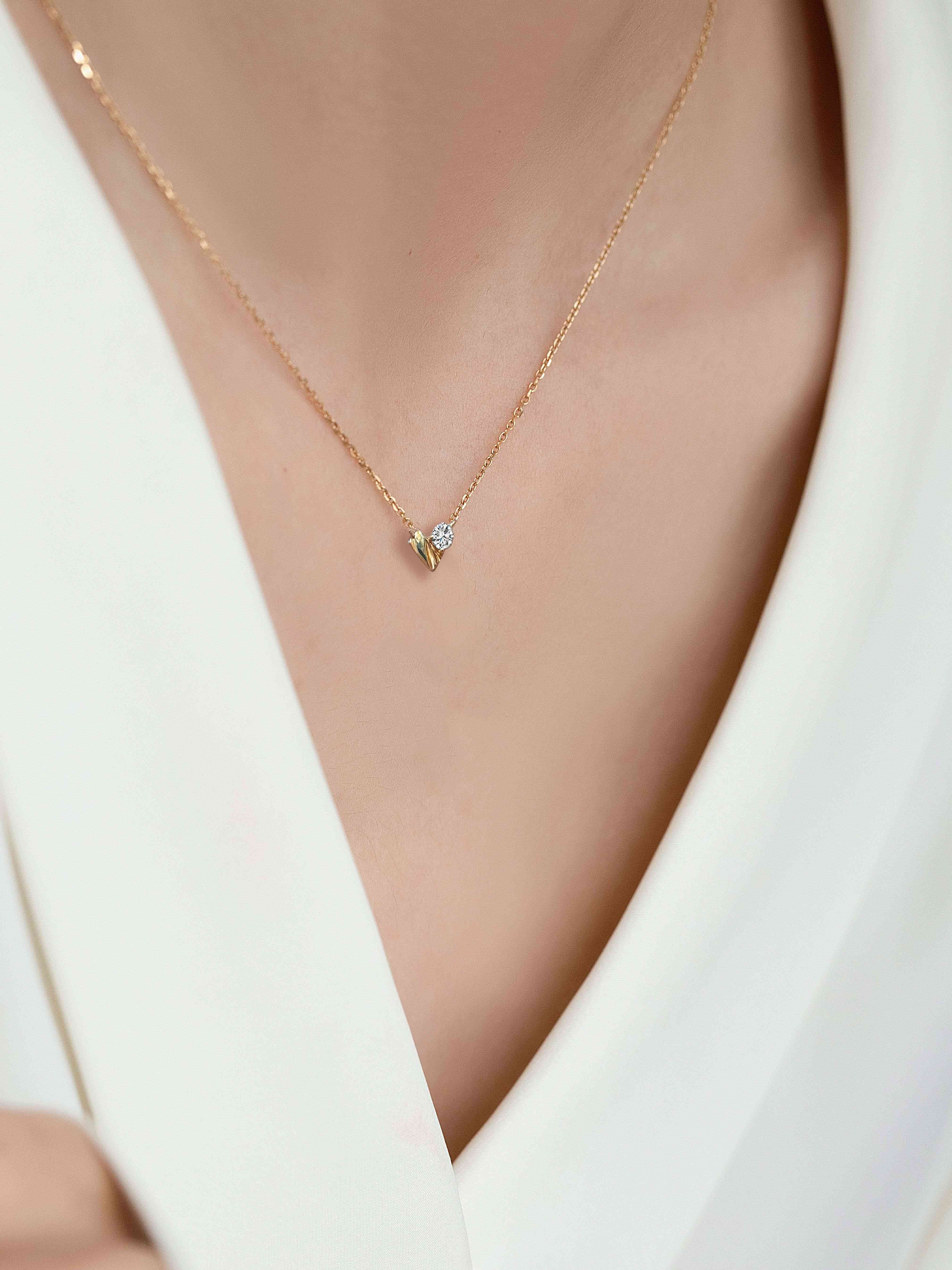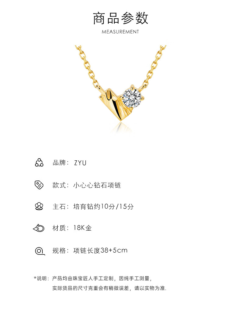 Kechu 18K gold love diamond necklace gold necklace jewelry light luxury laboratory real diamond gemstone for women 18K gold love color cultured diamond necklace-38+5cm