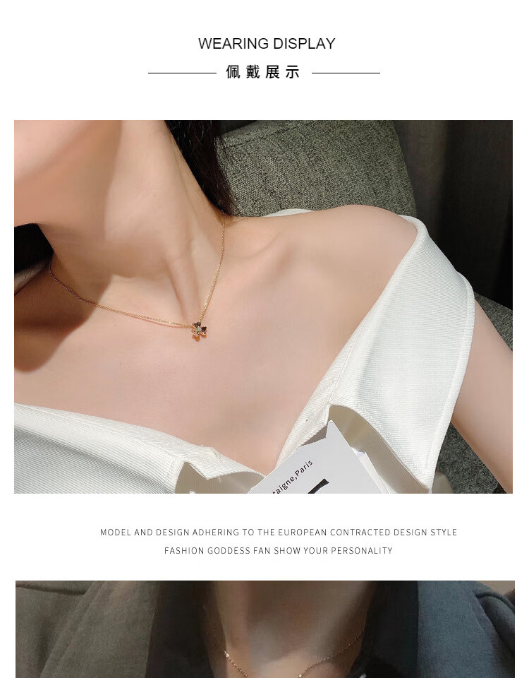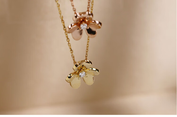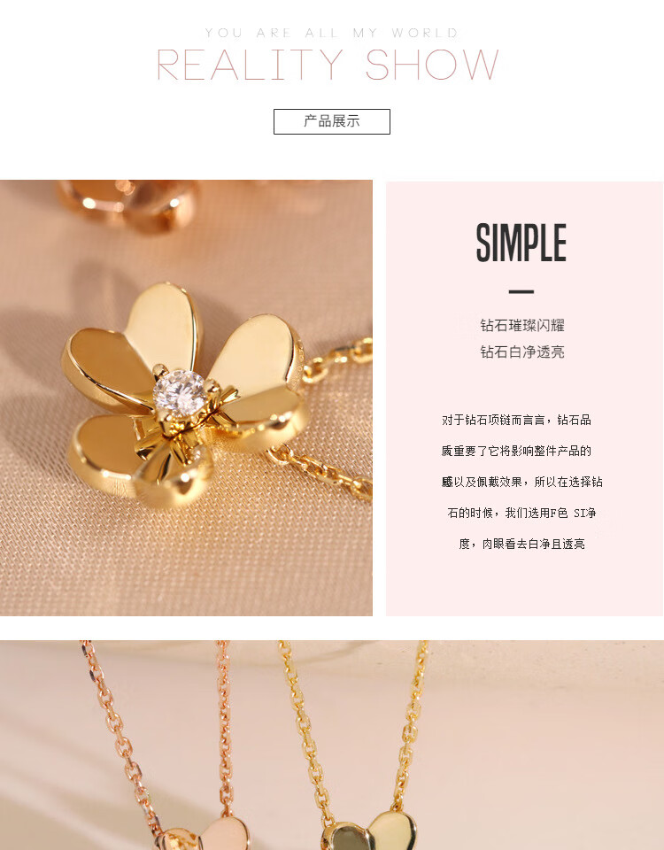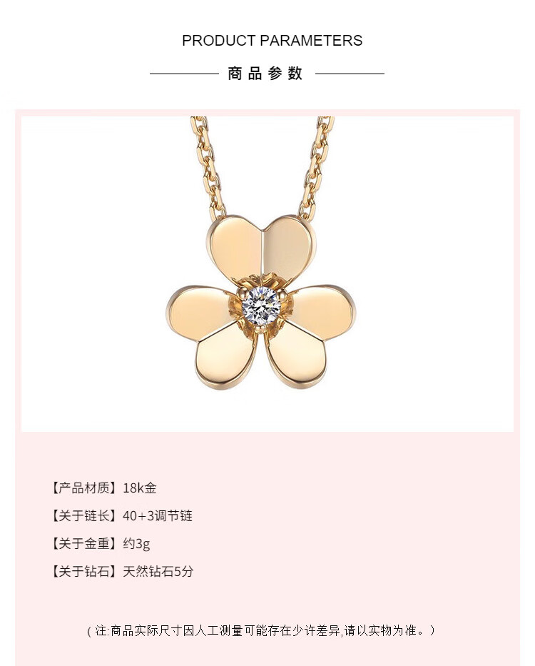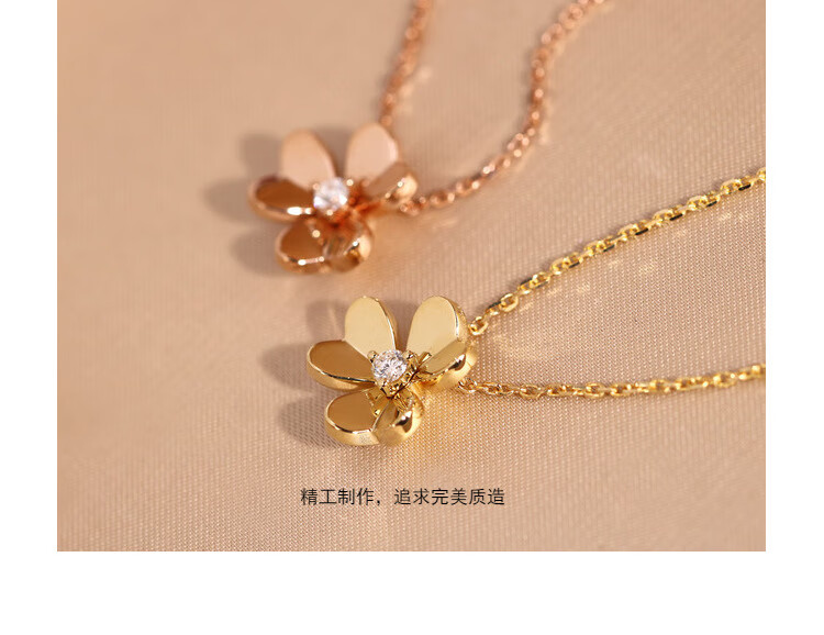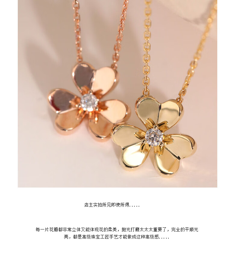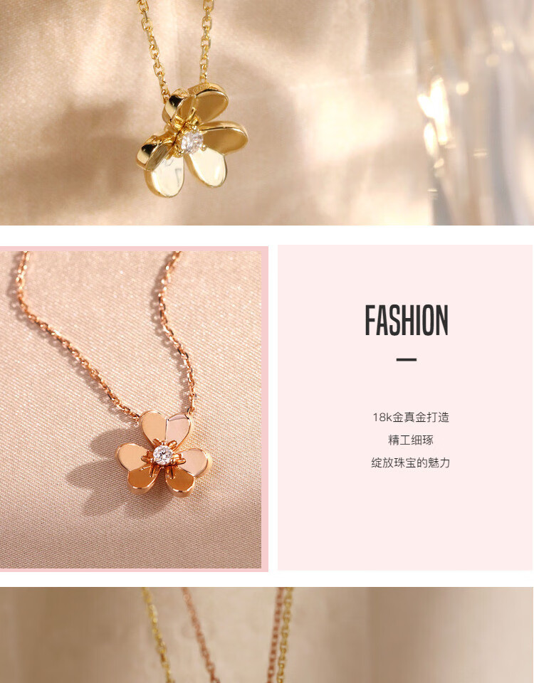 Shiniao 18K gold clover small gold flower rose gold necklace women's diamond color gold four-leaf clover AU750 light luxury clavicle chain 18k gold