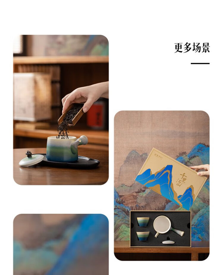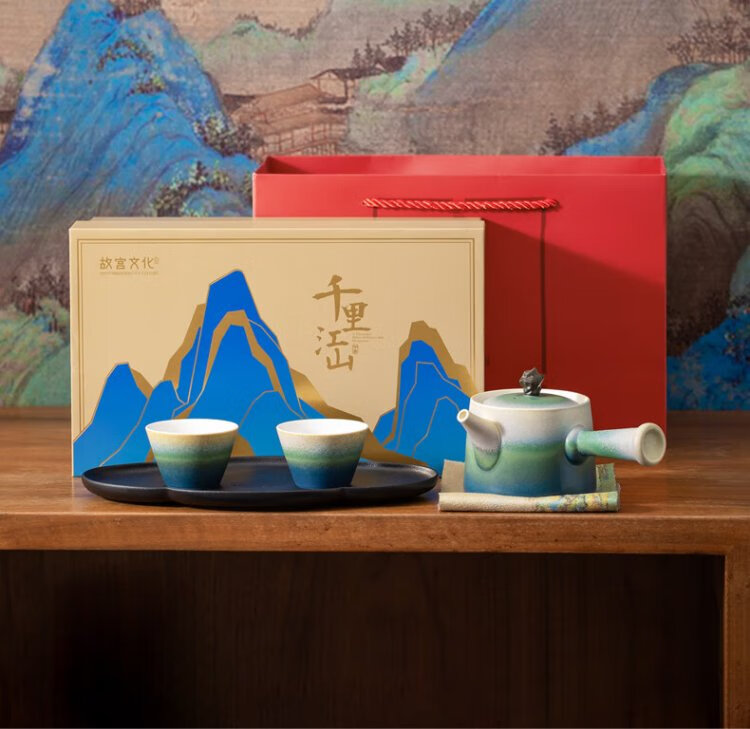 Forbidden City Culture Impression Qianli Jiangshan Tea Set Complete Tea Set Palace Museum Cultural and Creative Gift Birthday Gift Gift Box Set of 5