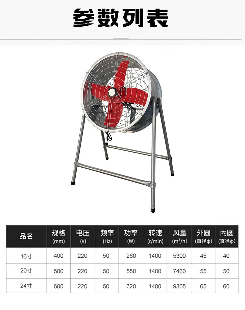 Industrial exhaust fan, post-type mobile fan, axial flow cylinder, high-power ventilation fan, powerful exhaust fan, 24-inch mobile fan