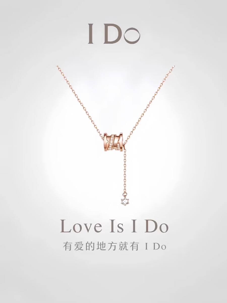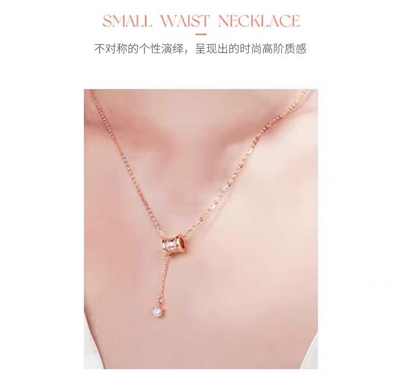 Yage IDo 18K gold diamond necklace small waist rose gold clavicle chain light luxury jewelry pendant Valentine's Day gift 18k gold necklace (2.8g)