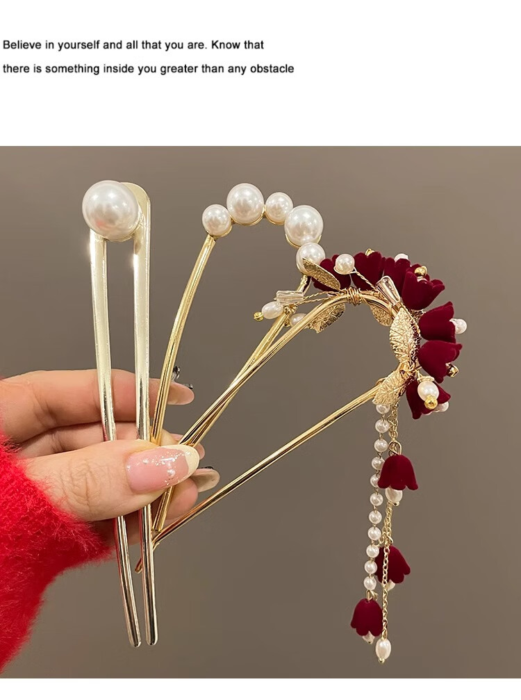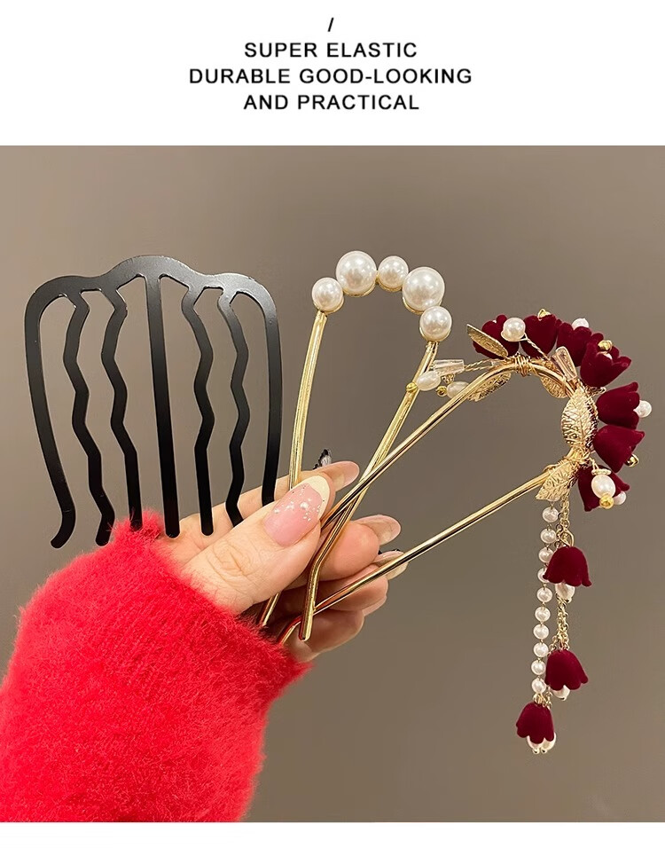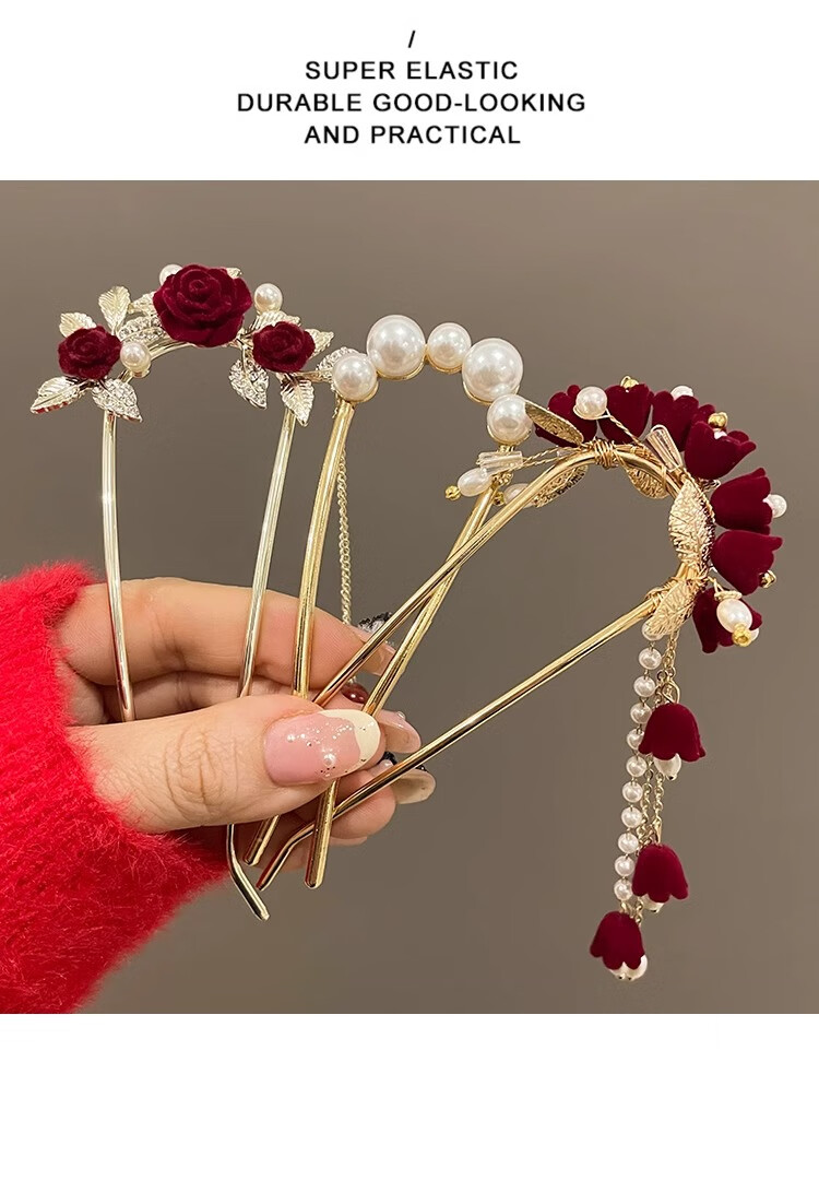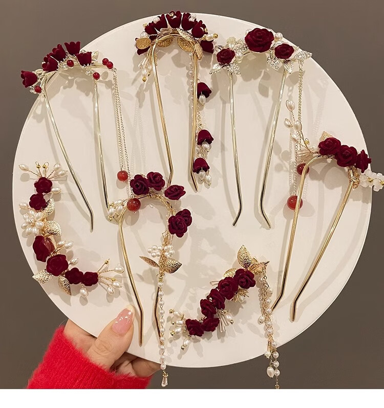 CLCEY Bridal Horse Face Skirt Headwear New Chinese Style Red Cheongsam Engagement Wedding Xiuhe Clothing Hairpin Women Hanfu Ancient Style Hairpin Mainly Recommended 7-piece Set (Hot Selling Complete Set)