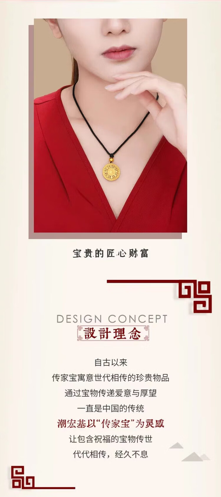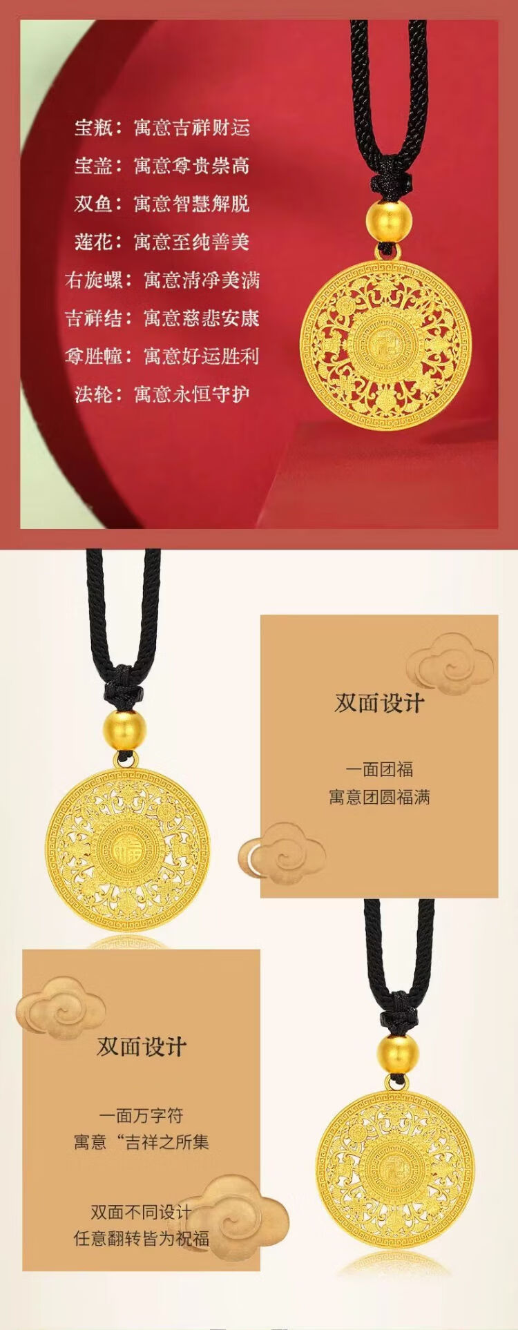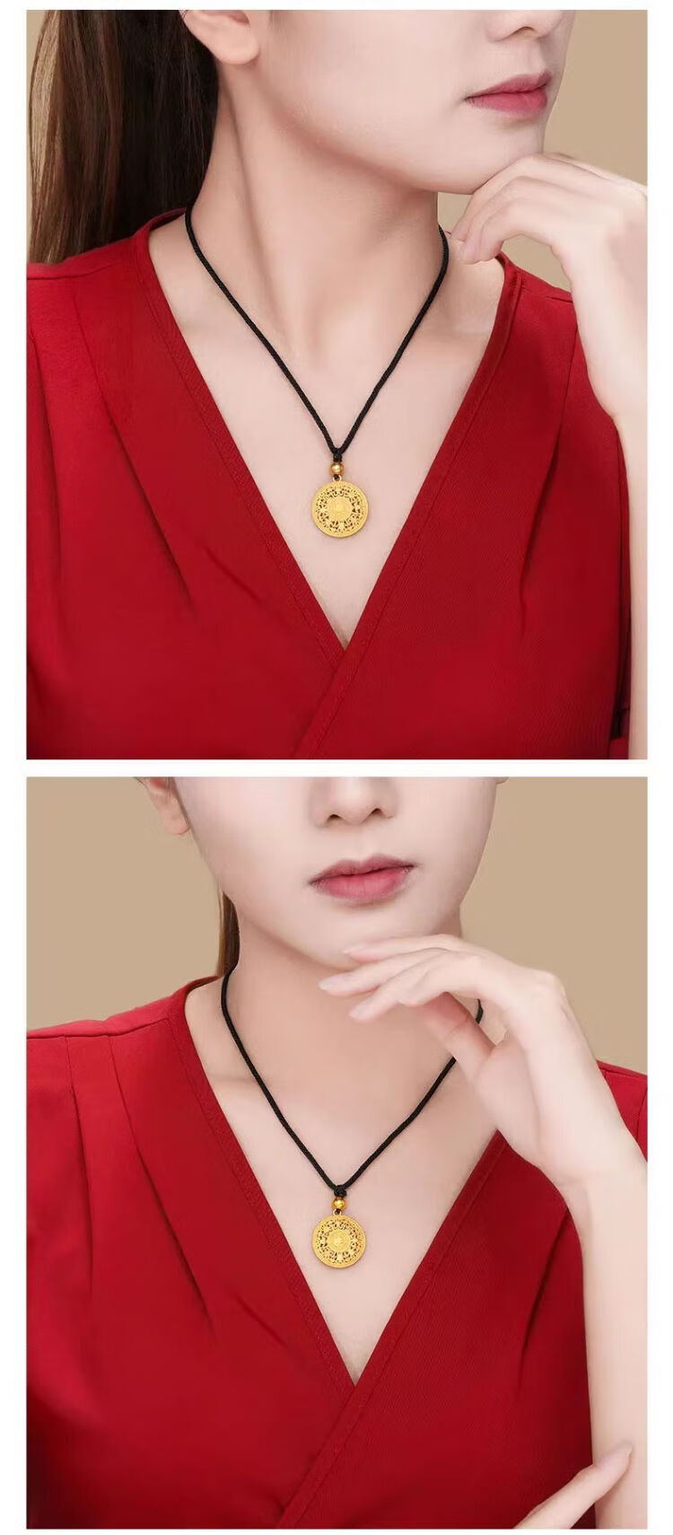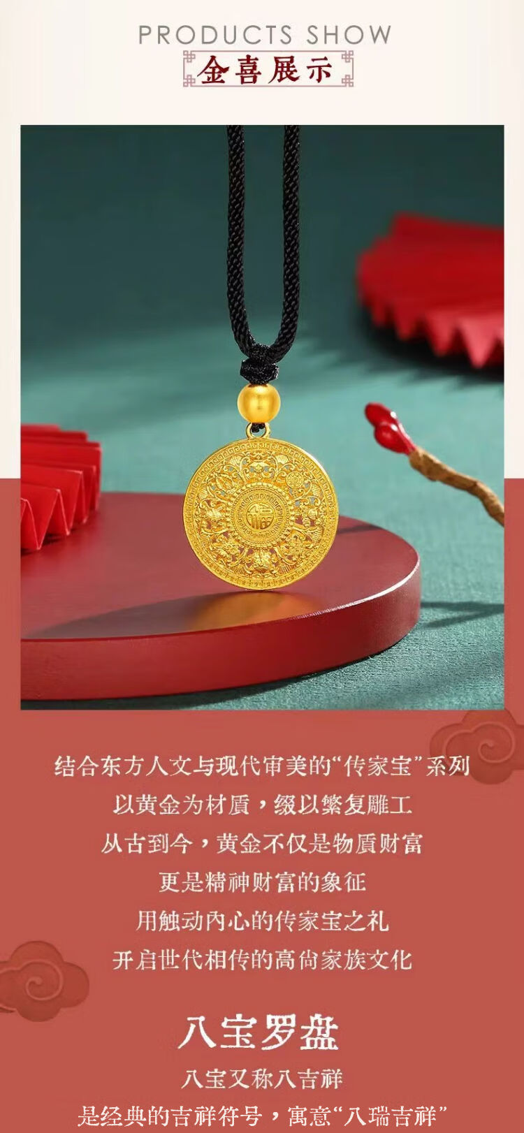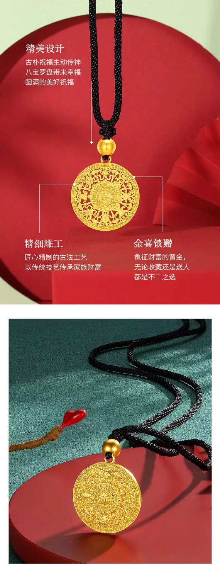Ya Ge Hong Kong Gold Store Eight Treasures Compass Gold Pendant Gold Pack Silver Fortune Lock Shenzhen Shuibei Necklace Men and Women Couple Model Heirloom Eight Lucky Pendant (Black Rope) Gold 1.