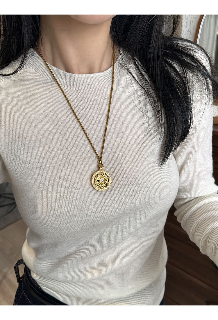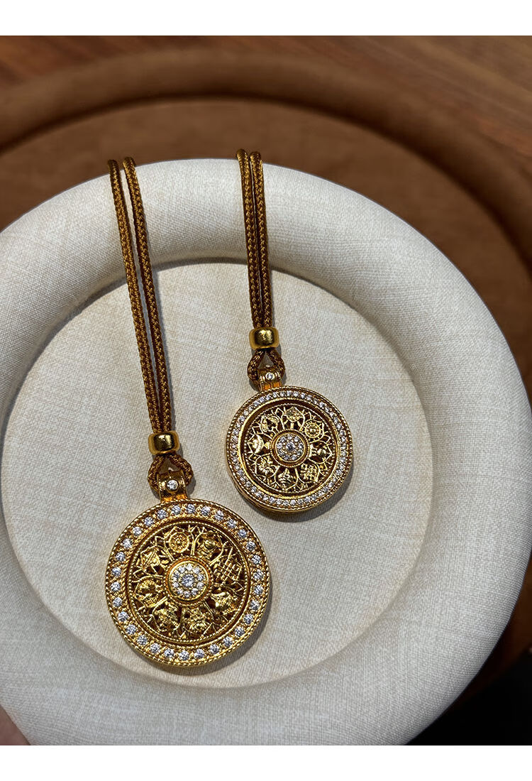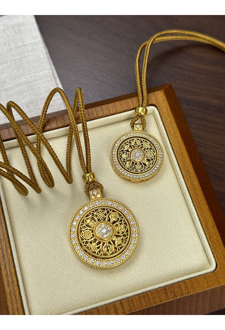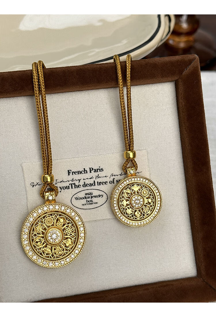 Ya Ge Wei Xue's same ancient method dotted diamond rotating eight-treasure compass pendant sand gold necklace braided rope sweater chain women's small compass