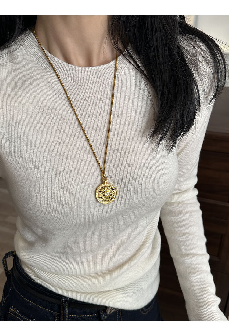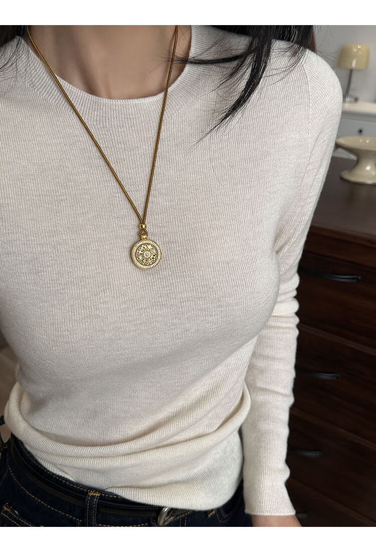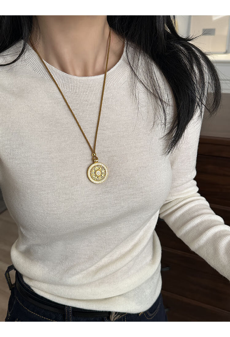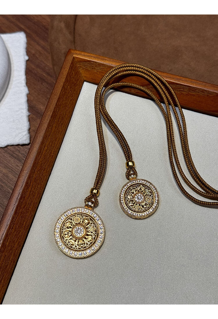 Ya Ge Wei Xue's same ancient method dotted diamond rotating eight-treasure compass pendant sand gold necklace braided rope sweater chain women's small compass