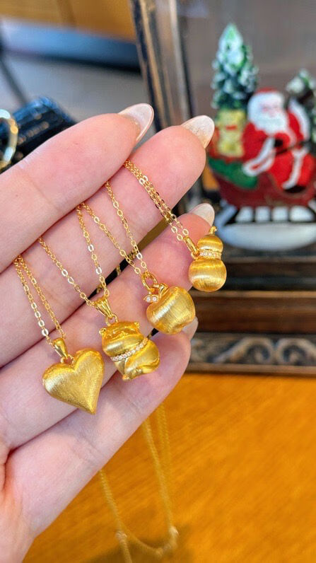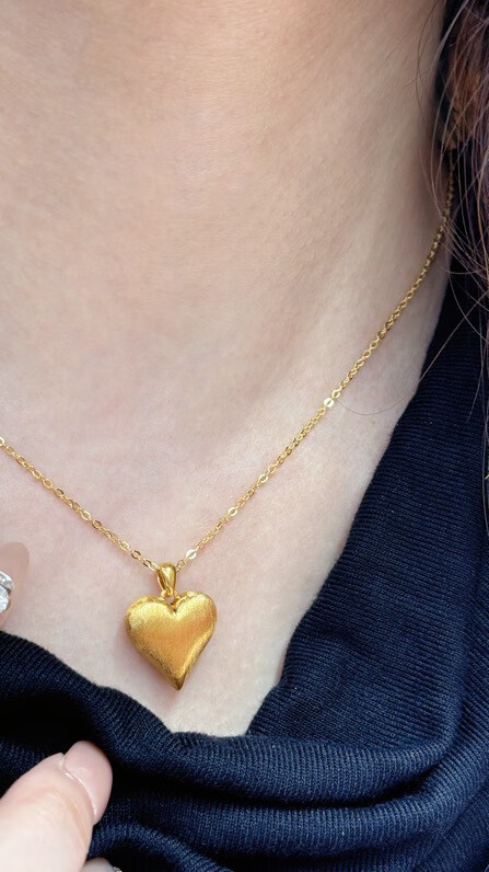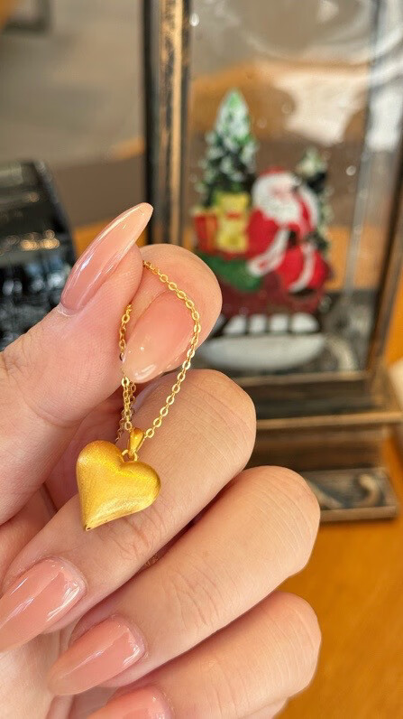 Yage Christmas gift 18K gold brushed craft love pendant au750 inlaid with moissanite and free silver necklace 18k gold pendant (free silver chain)